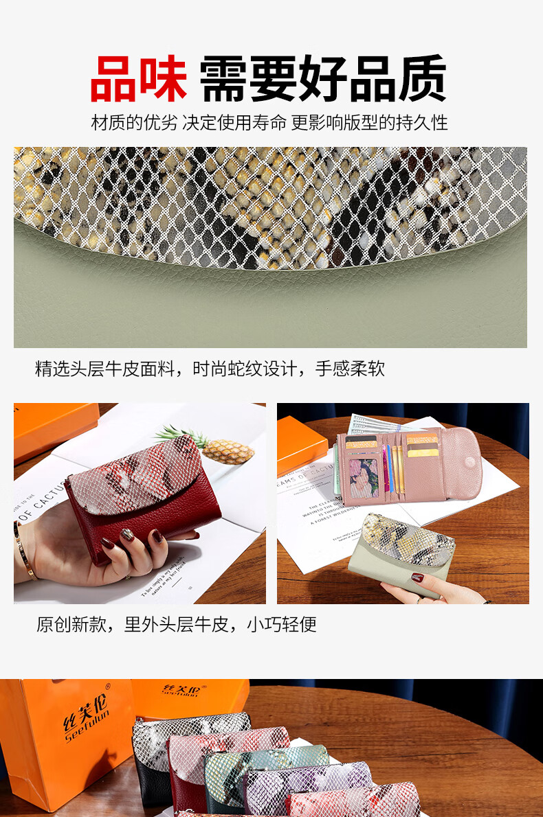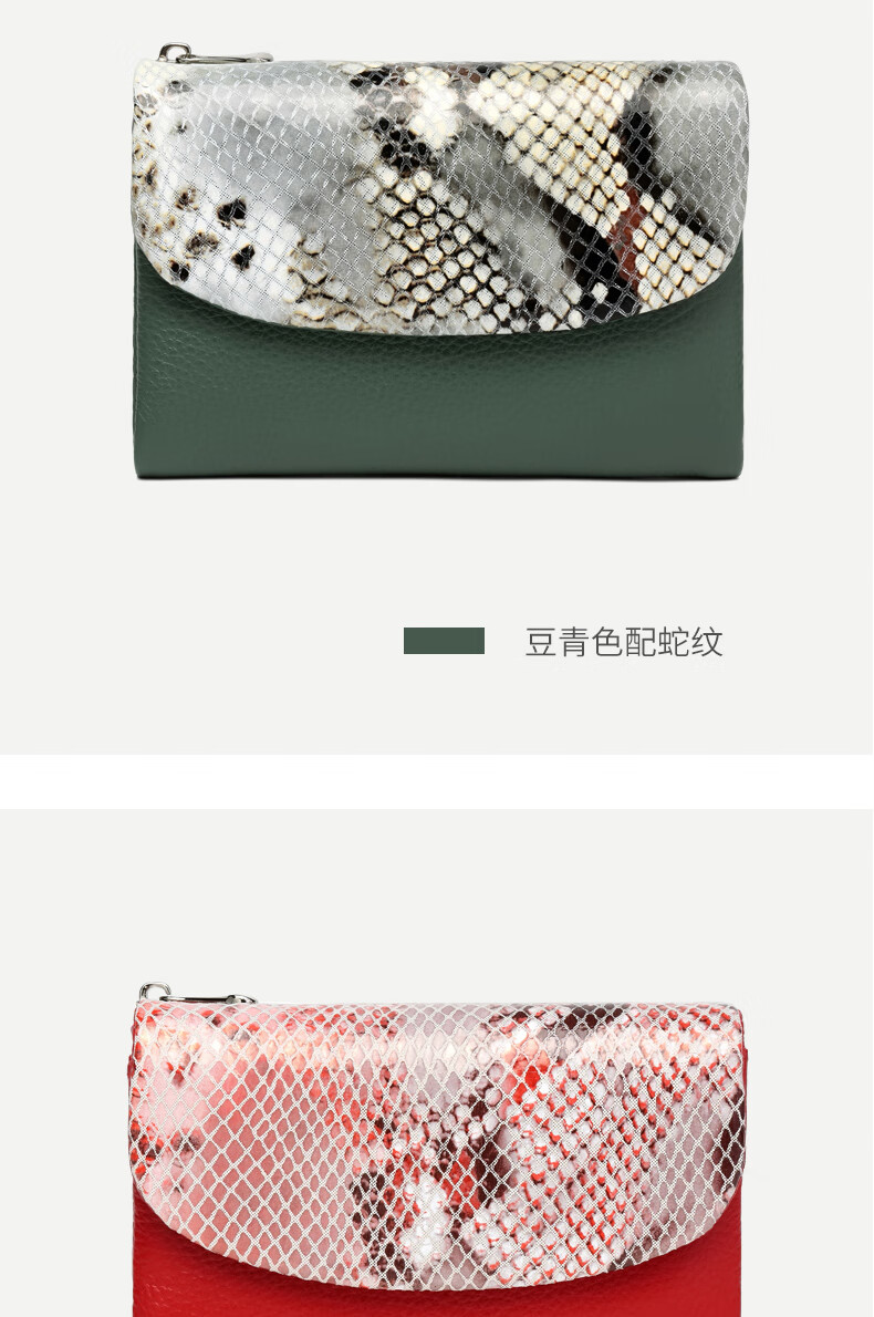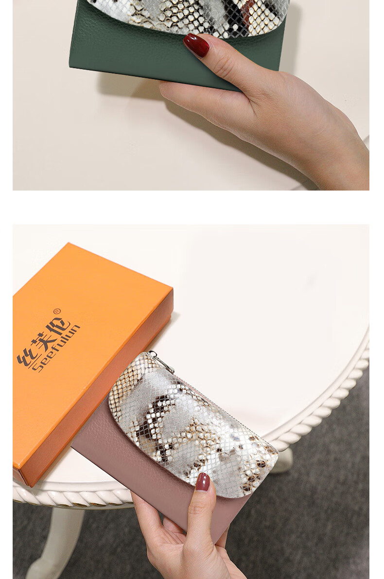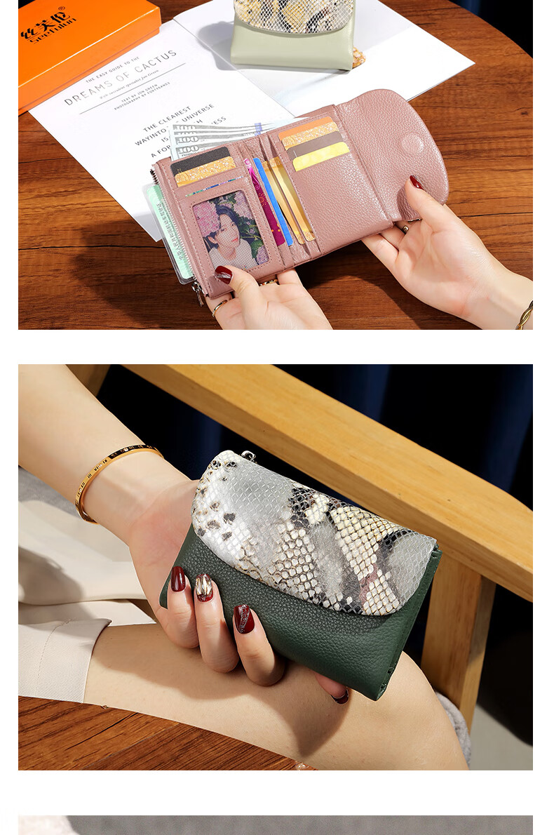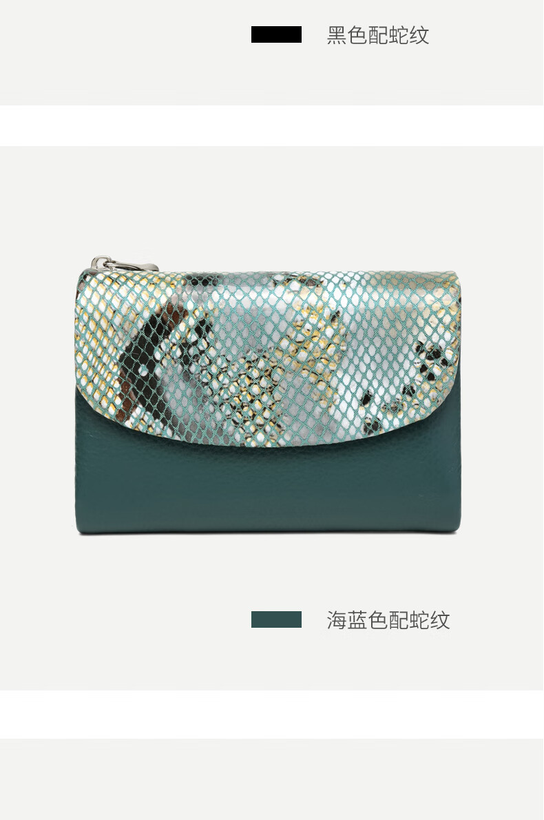 Sephoron Fashionable Snake Print Contrast Color Cowhide Folding Short Wallet Feminine 2026 New Soft Cowhide Leather Wallet Large Banknote Clip Black with Snake Print - Cowhide Inside and Out Gift Box Packaging
