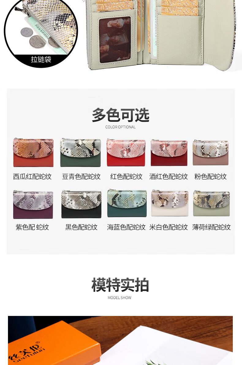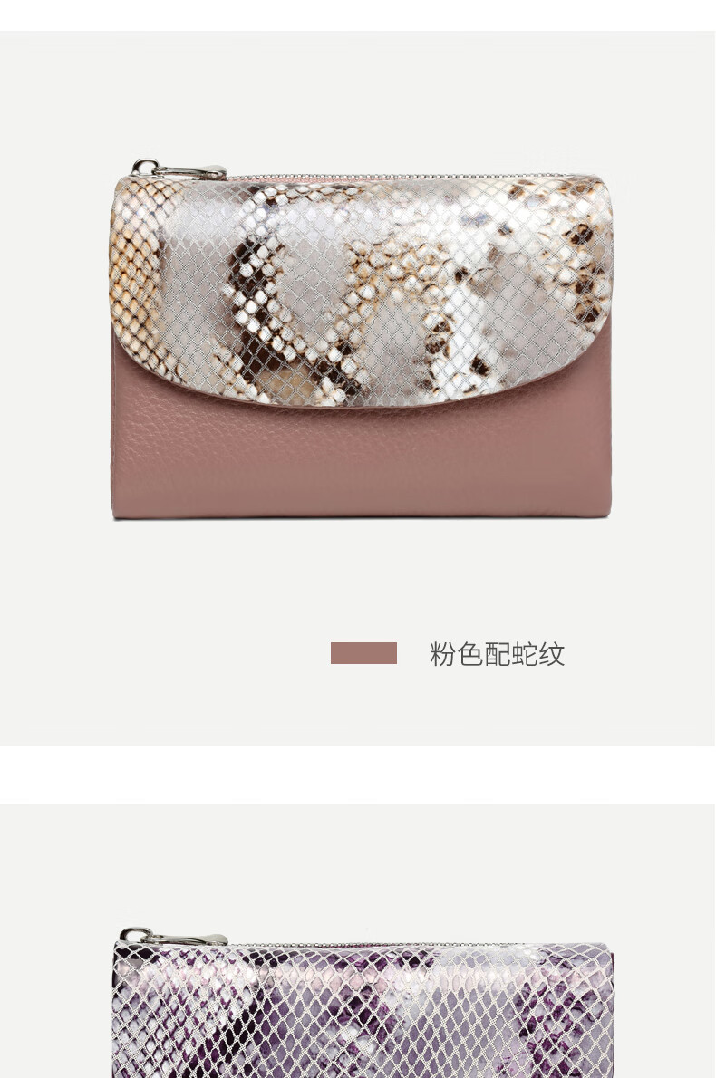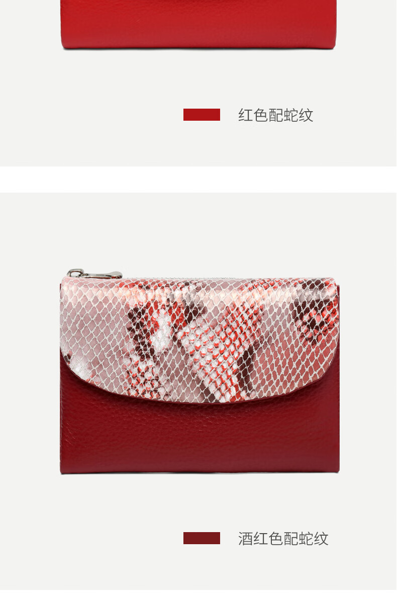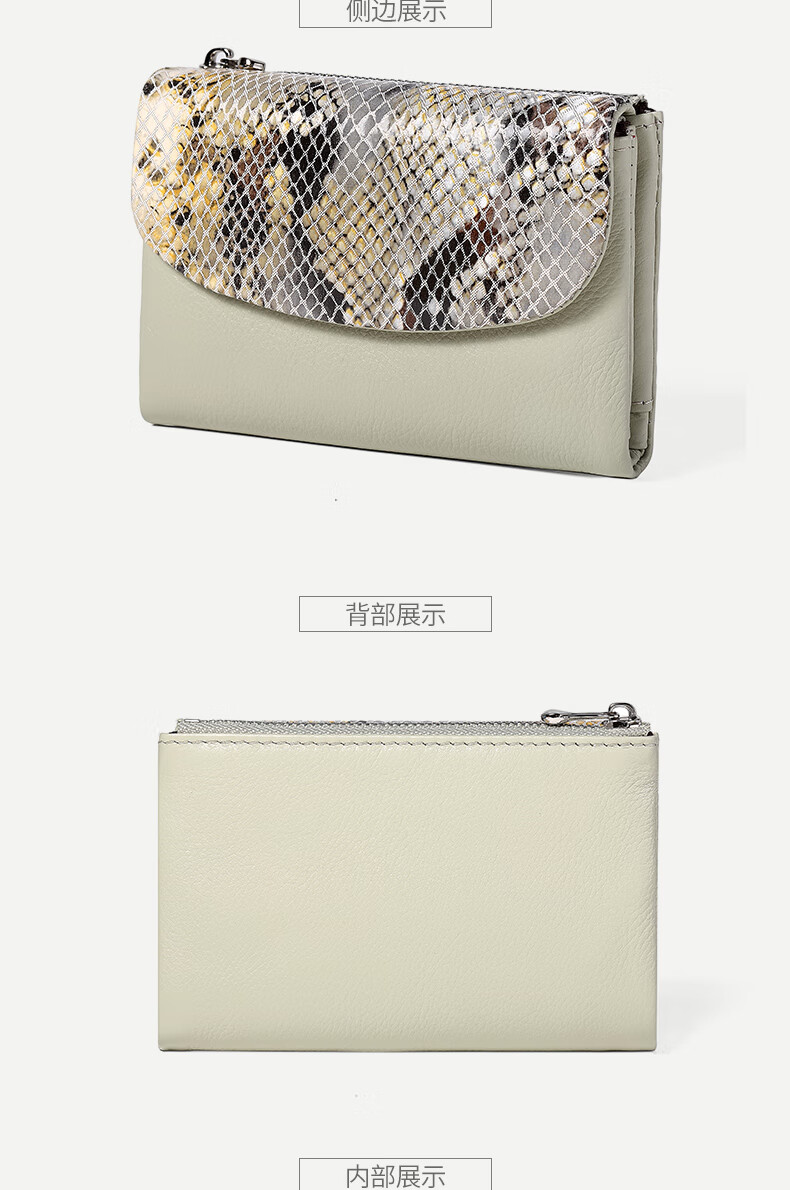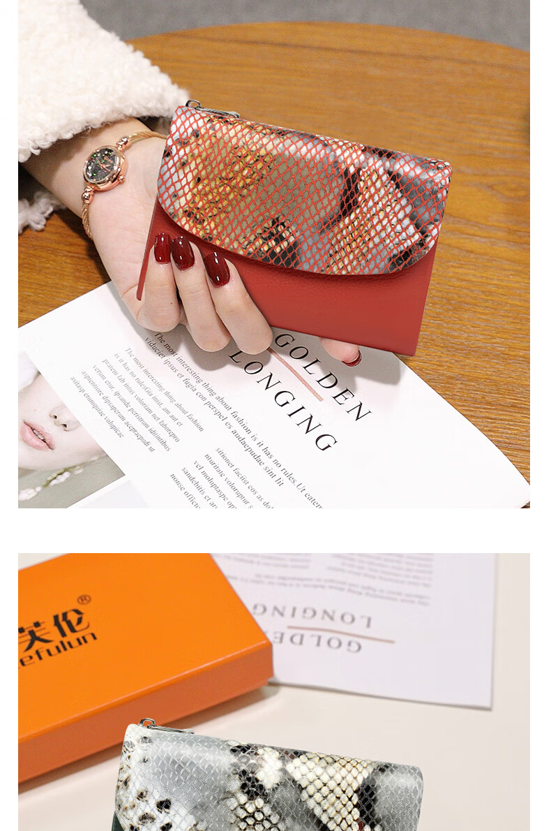 Sephoron Fashionable Snake Print Contrast Color Cowhide Folding Short Wallet Feminine 2026 New Soft Cowhide Leather Wallet Large Banknote Clip Black with Snake Print - Cowhide Inside and Out Gift Box Packaging