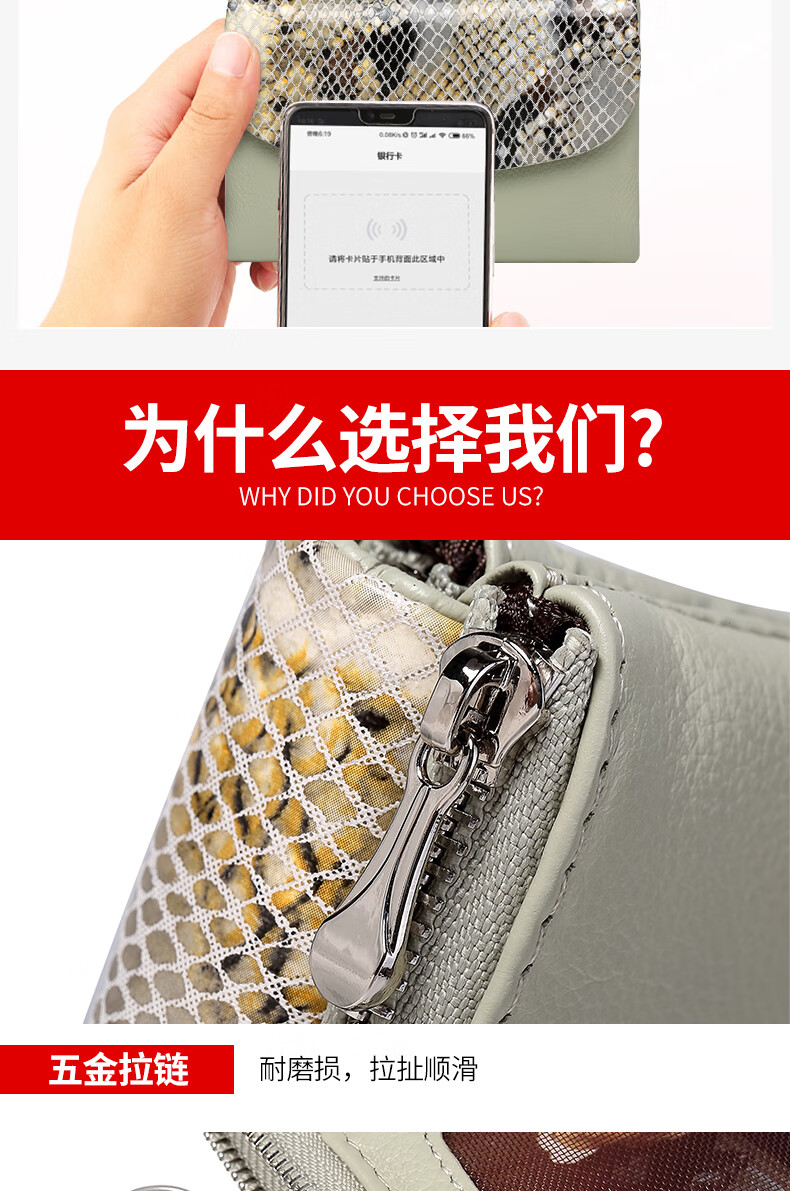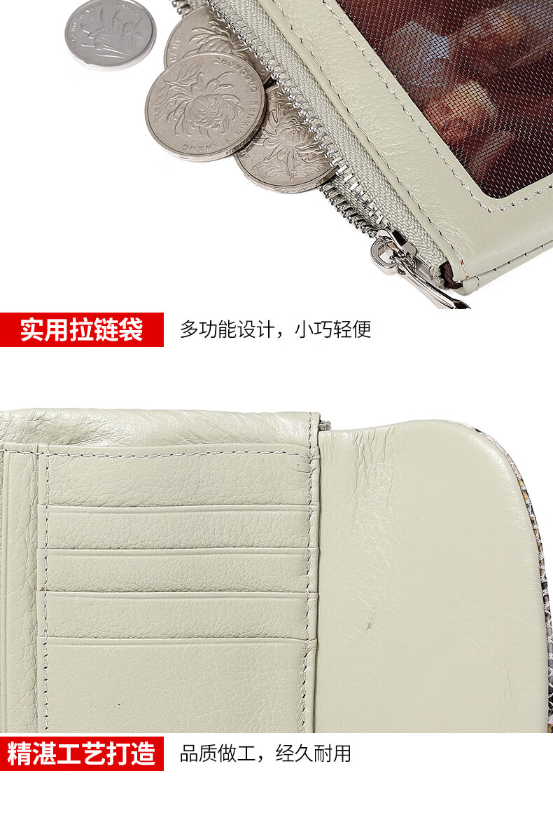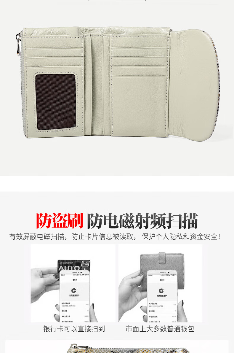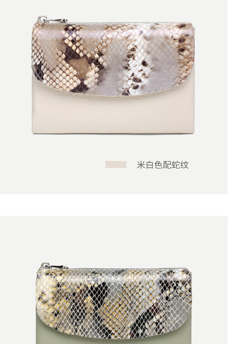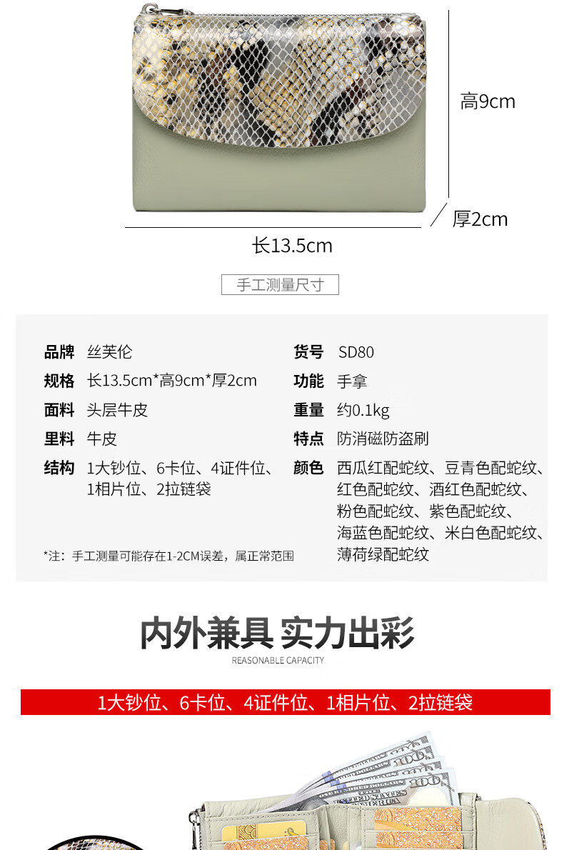 Sephoron Fashionable Snake Print Contrast Color Cowhide Folding Short Wallet Feminine 2026 New Soft Cowhide Leather Wallet Large Banknote Clip Black with Snake Print - Cowhide Inside and Out Gift Box Packaging