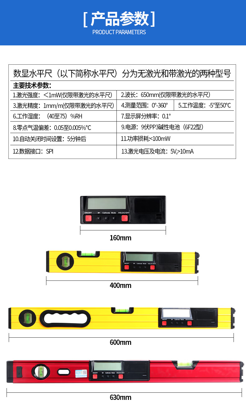 Qiao Bo Lai electronic level ruler magnetic laser decoration balance ruler level ruler digital display household flat water ruler 160mm
