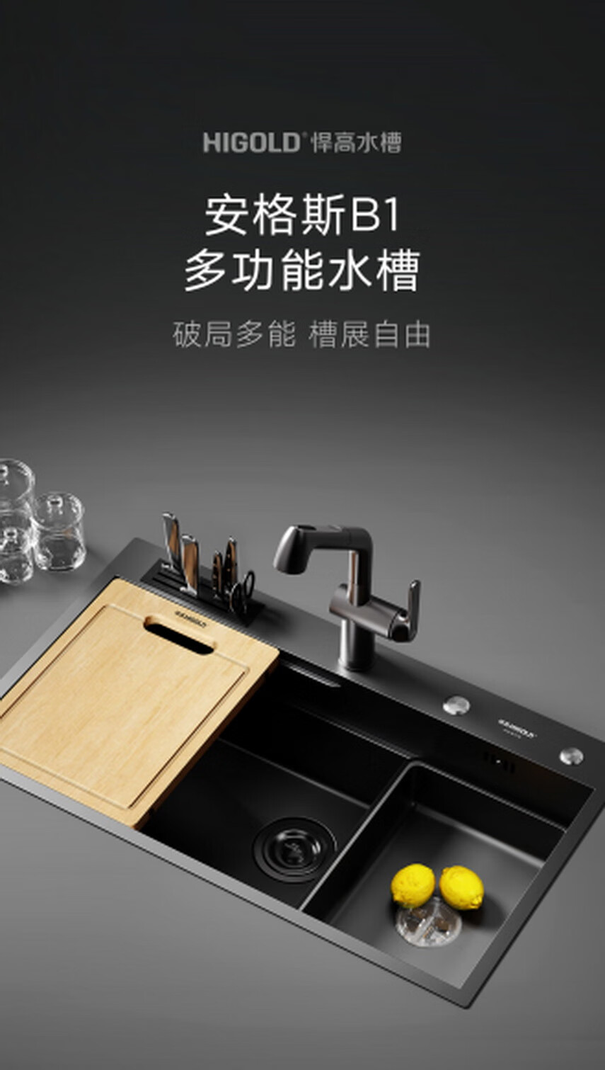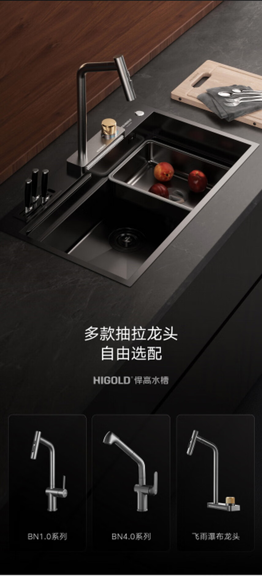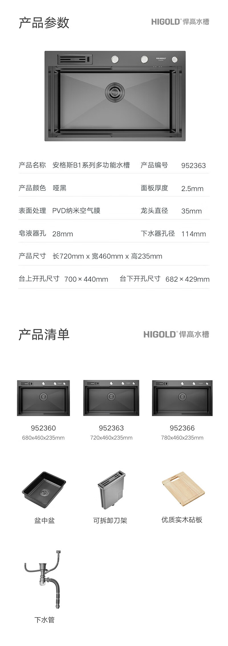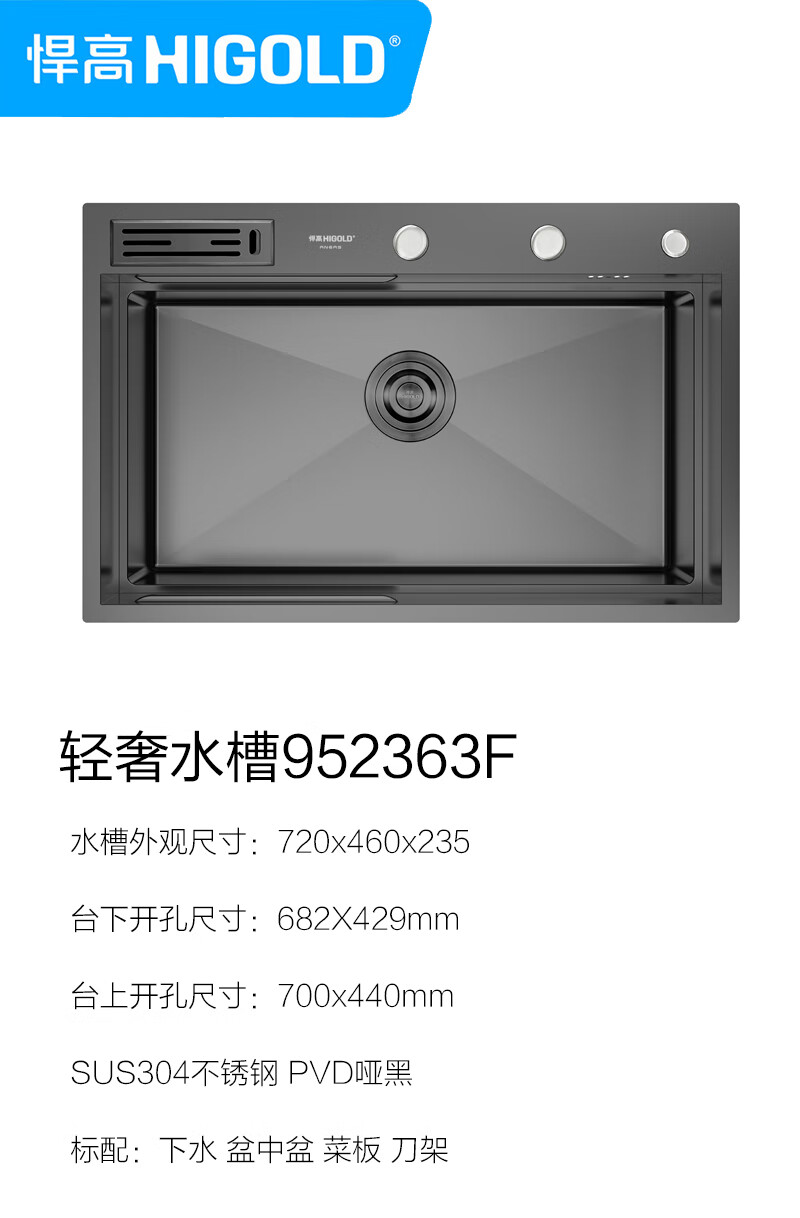 HIGOLD handmade sink 952363 Angus B1 multi-function 304 nanometer sink under counter Taichung 720*460*235 sink 952363+faucet 980177