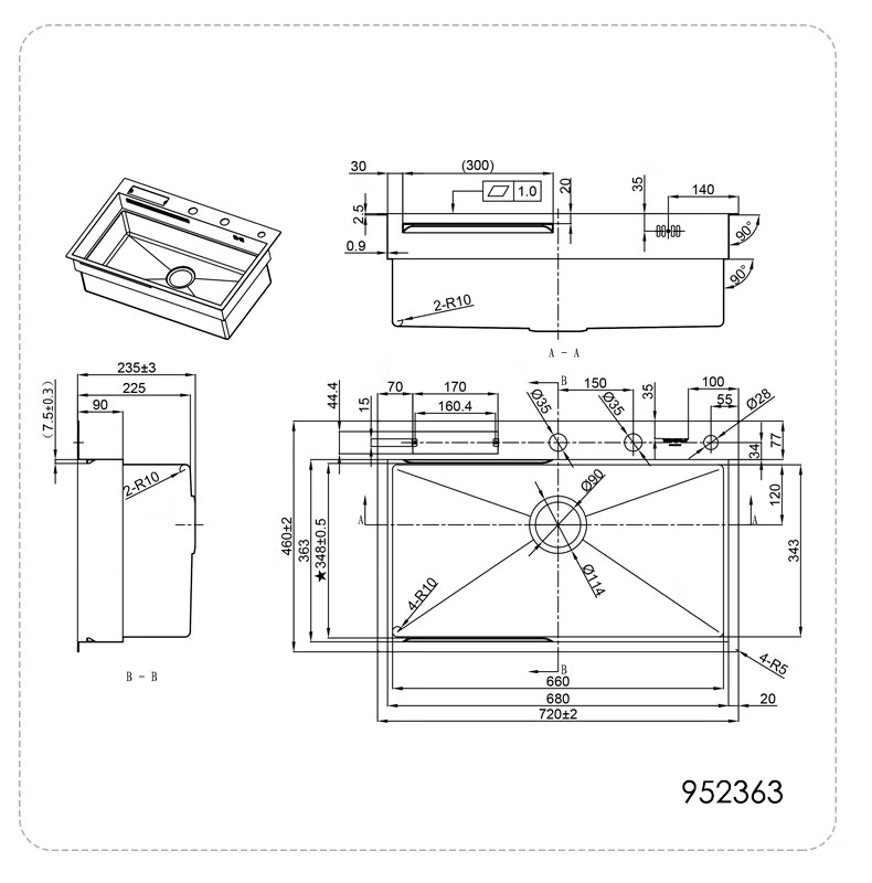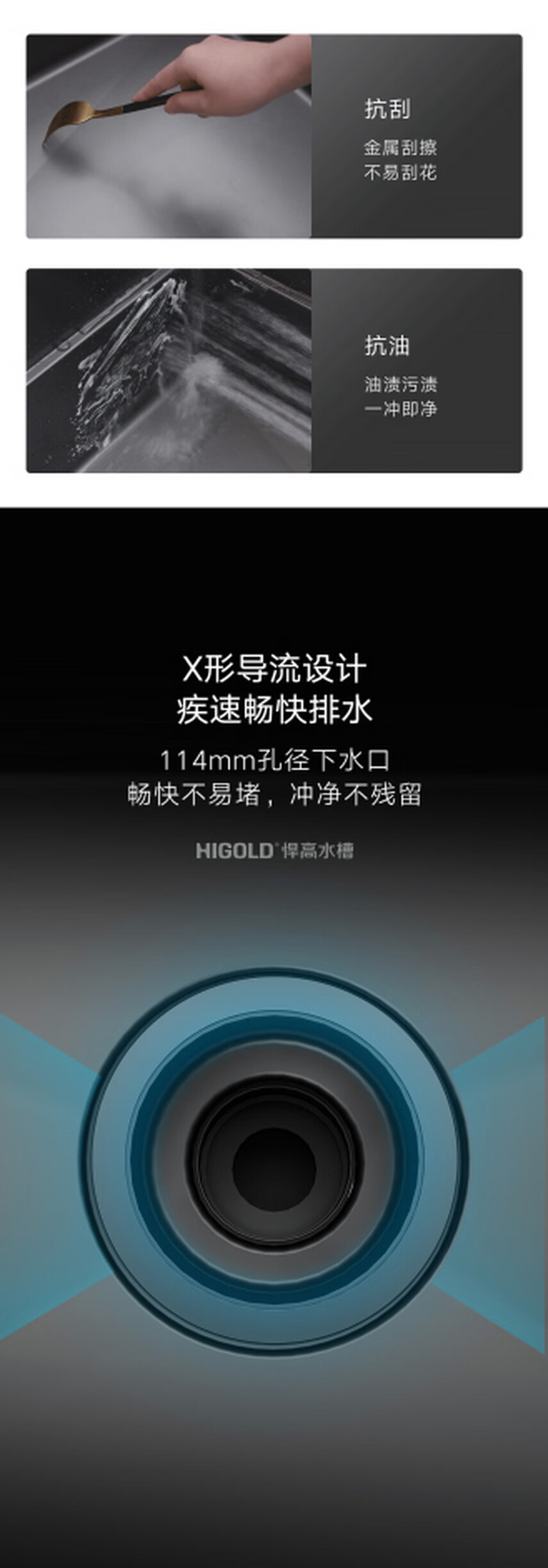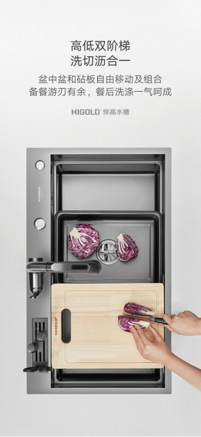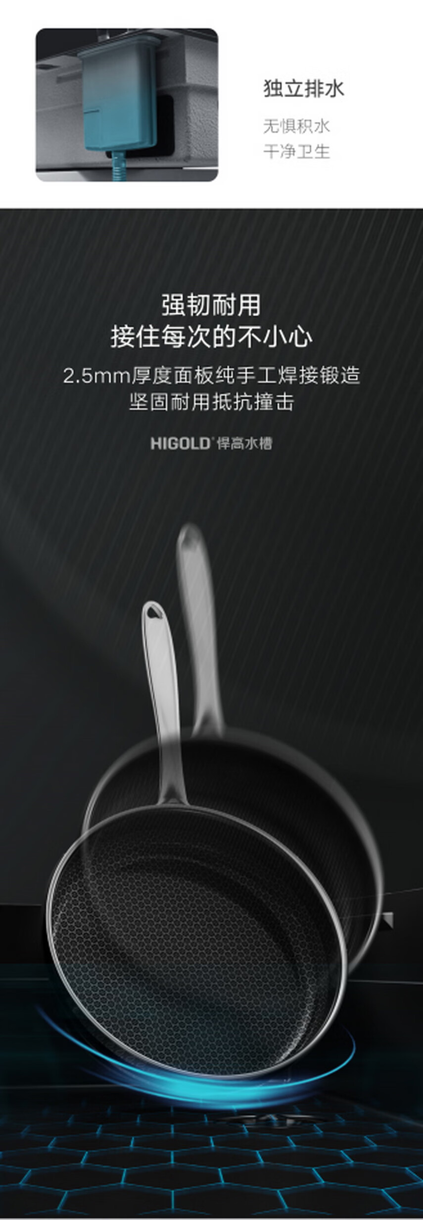 HIGOLD handmade sink 952363 Angus B1 multi-function 304 nanometer sink under counter Taichung 720*460*235 sink 952363+faucet 980177