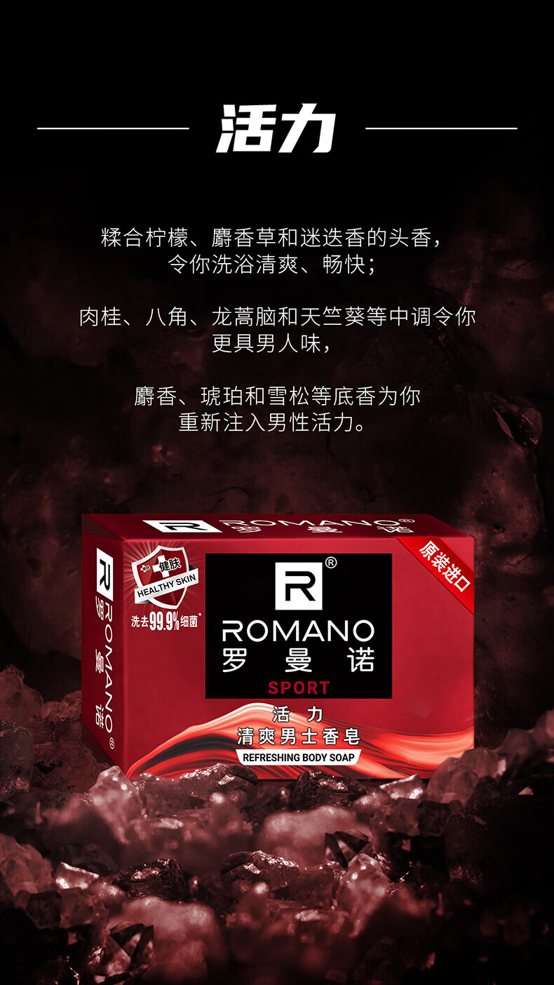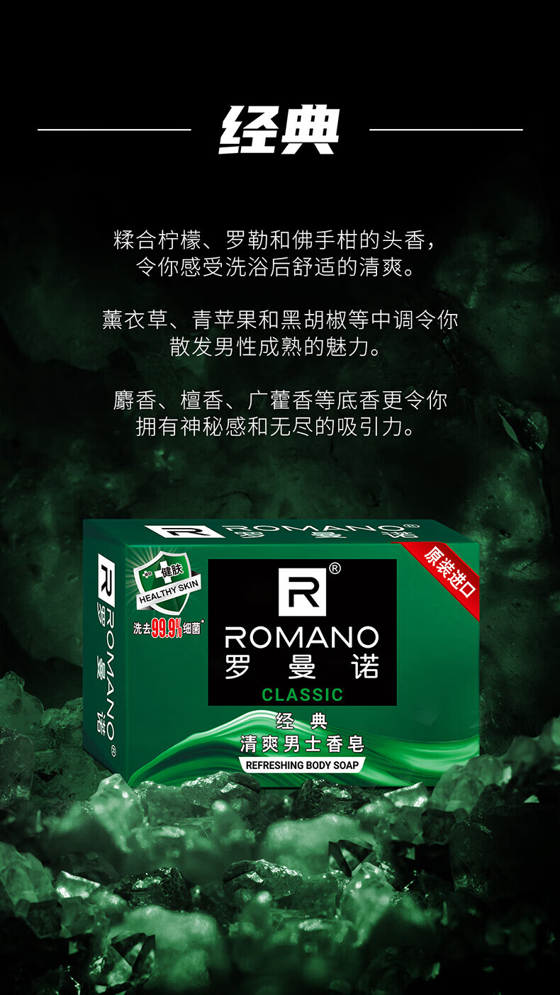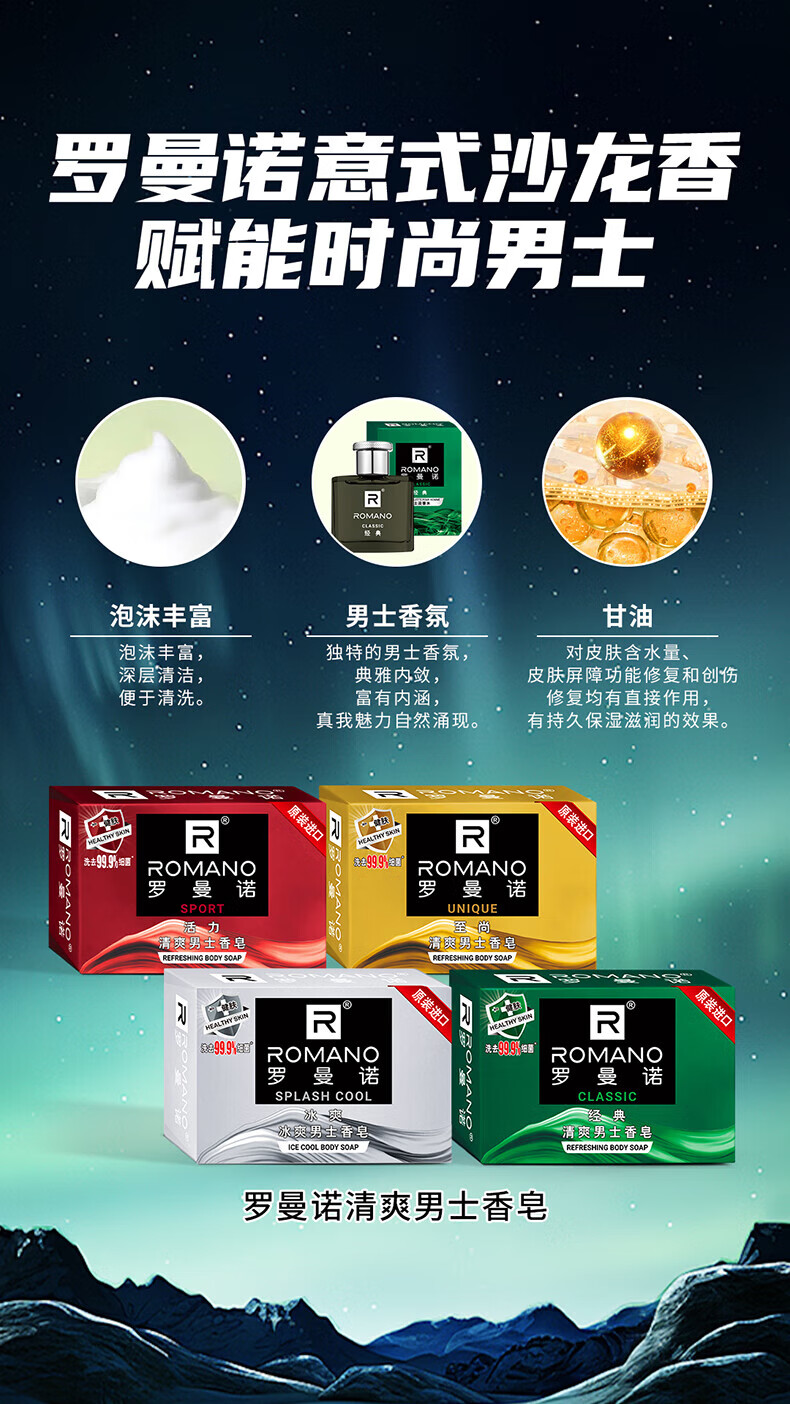 ROMANO Men's Soap Refreshing, Awakening, Deep Cleansing, Long-lasting Fragrance, Anti-Sweat Soap Family Pack, Mixed Fragrance 5 Pack