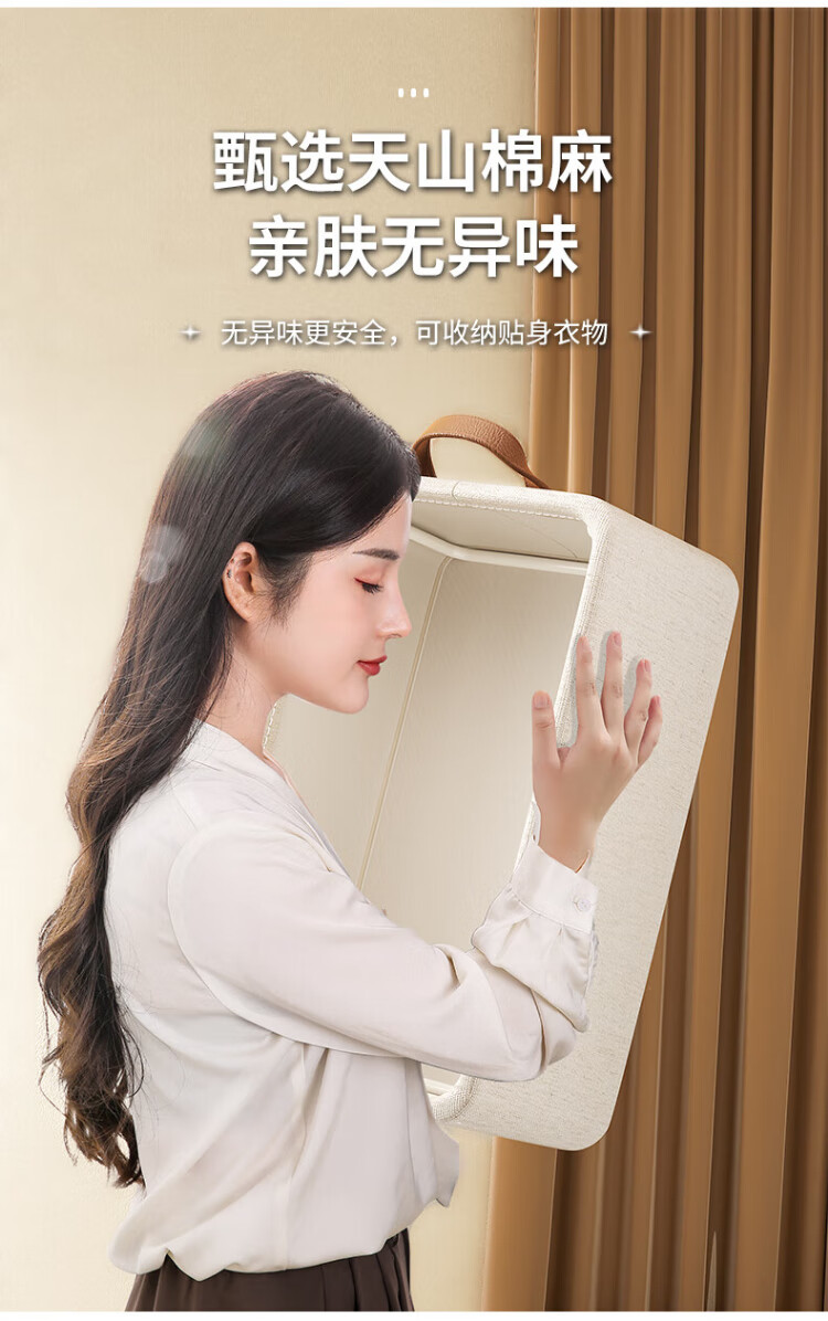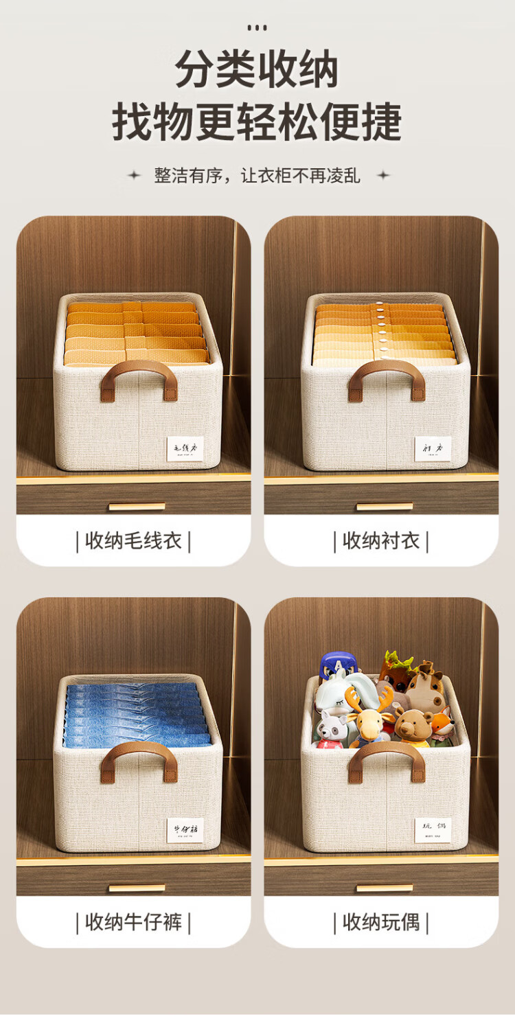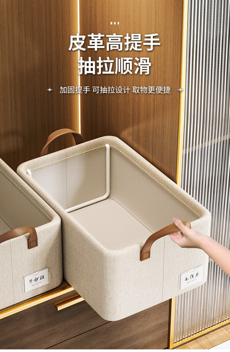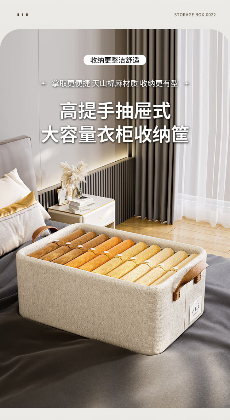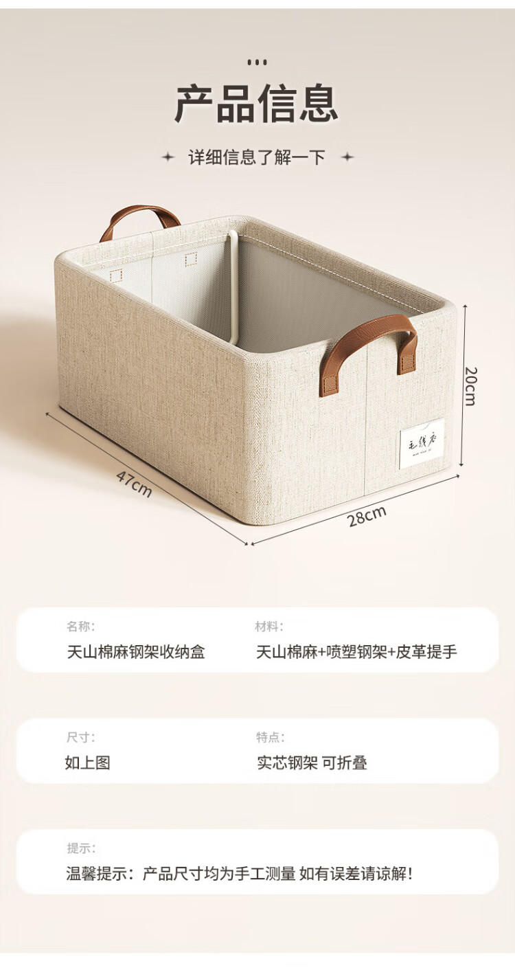 Nature House Tianshan Cotton and Linen Storage Basket Wardrobe Storage Box Sorting and Layering Artifact Clothes Storage Box Storage Box Organizing Box Thickened Tianshan Cotton and Linen Built-in Steel Frame Washable (47*28*20) Upgraded PP Bottom Plate No Odor