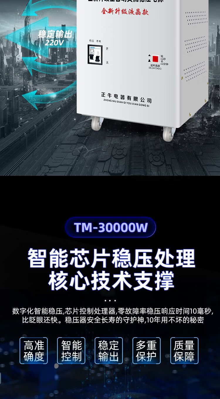 Voltage stabilizer fully automatic 220v household 30000w high power 30000W fully automatic 220V ultra-low voltage industrial voltage regulator 30KW 30k cabinet machine bold pure copper movement + free spare motherboard