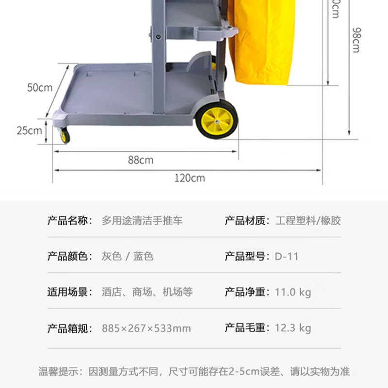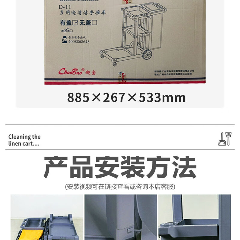 Qiao Bo Lai multifunctional trolley hotel linen cart hotel cleaning cart property cleaning special tool cart Chaobao-D-11 without cover (thick gray)
