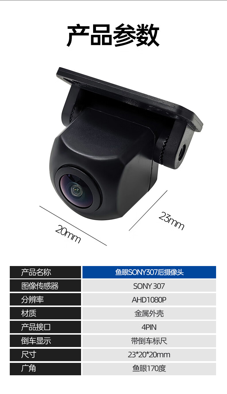 Fisheye SONY307 Night Vision Streaming Media Rear Lens 170 Degree Wide Angle Driving Recorder Pull Back Camera Fisheye SONY307 Camera Without Video Cable