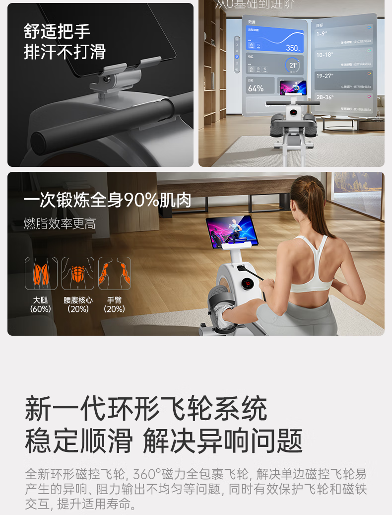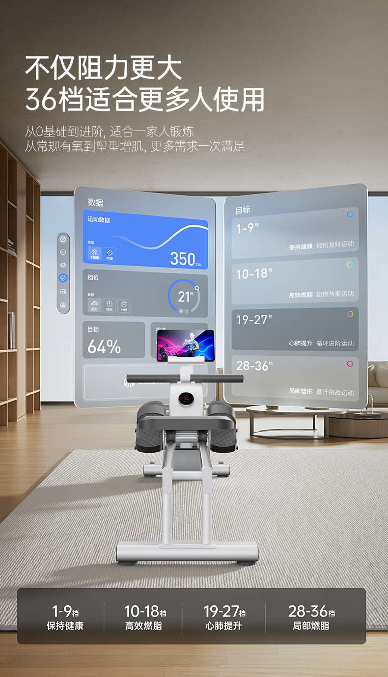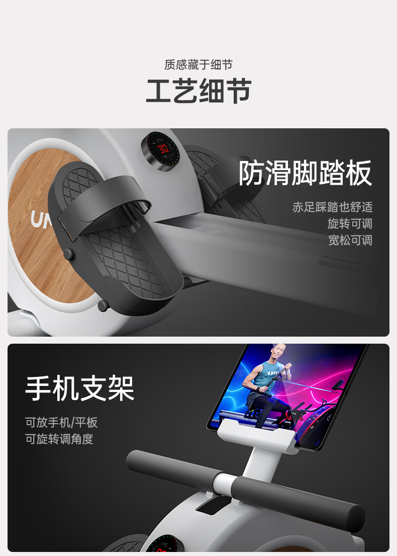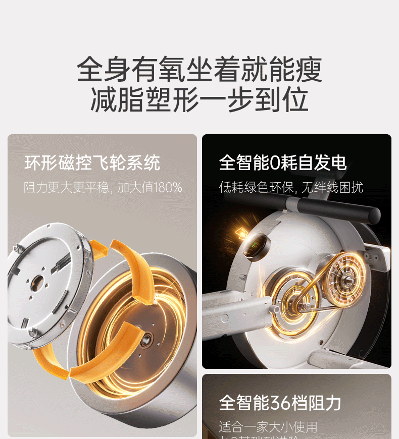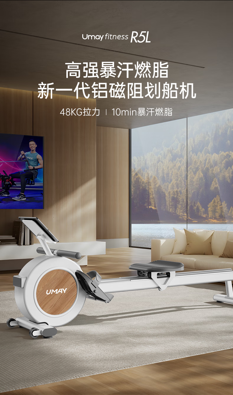 Youmei rowing machine self-generating home gym trainer magnetically controlled silent smart rowing machine aerobics R5L self-generating/36-speed shuttle resistance adjustment/dual aluminum alloy slide rail/black
