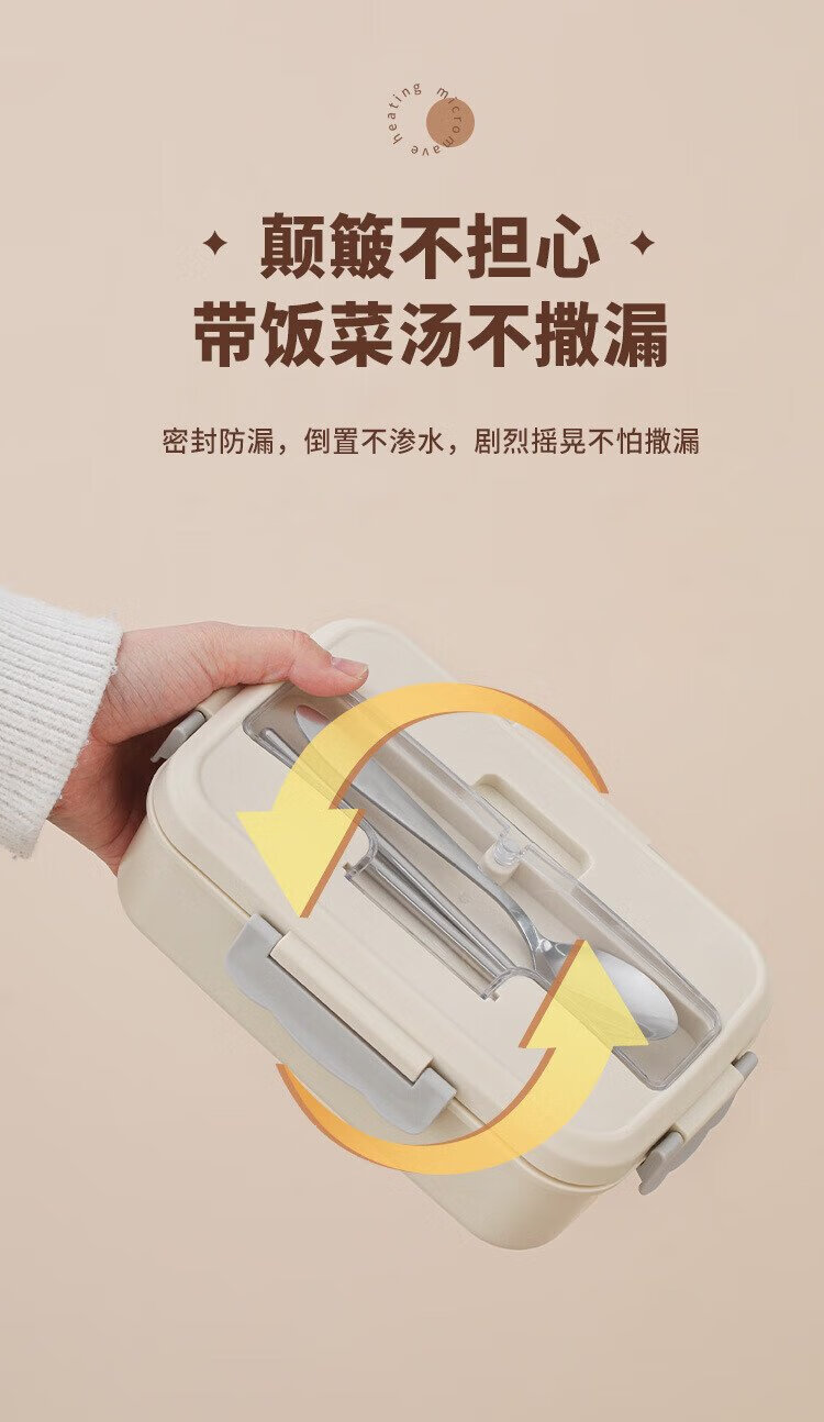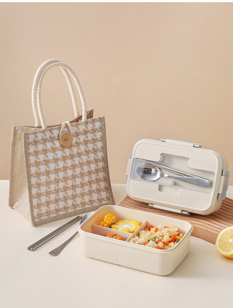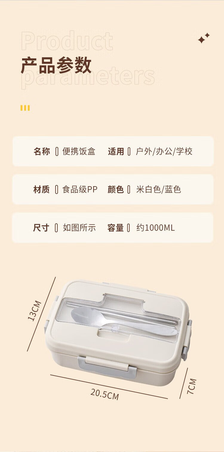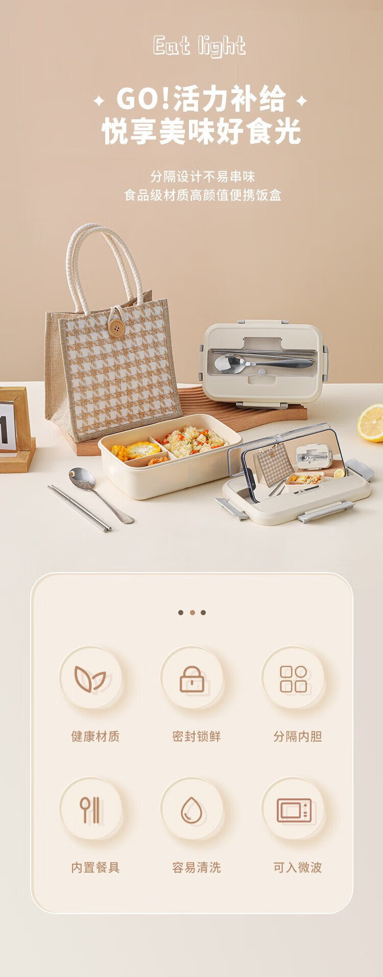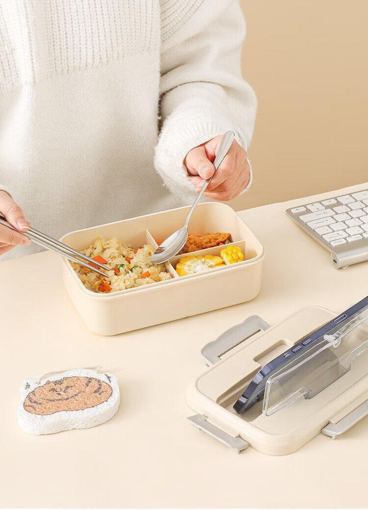 Yu Boyan lunch box office workers breakfast box Japanese lunch box primary school students divided lunch box microwave fat-reducing fitness lunch box cream white + chopsticks spoon + thermal bag 1 layer 1L