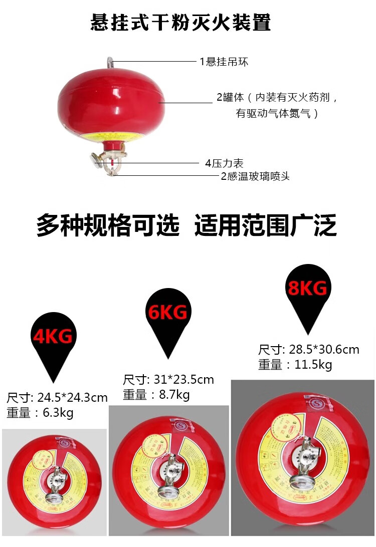 Hanging dry powder fire extinguisher 4kg device fire extinguishing bomb warehouse garage factory fire extinguisher fire equipment 4KG hanging dry powder 3C certification