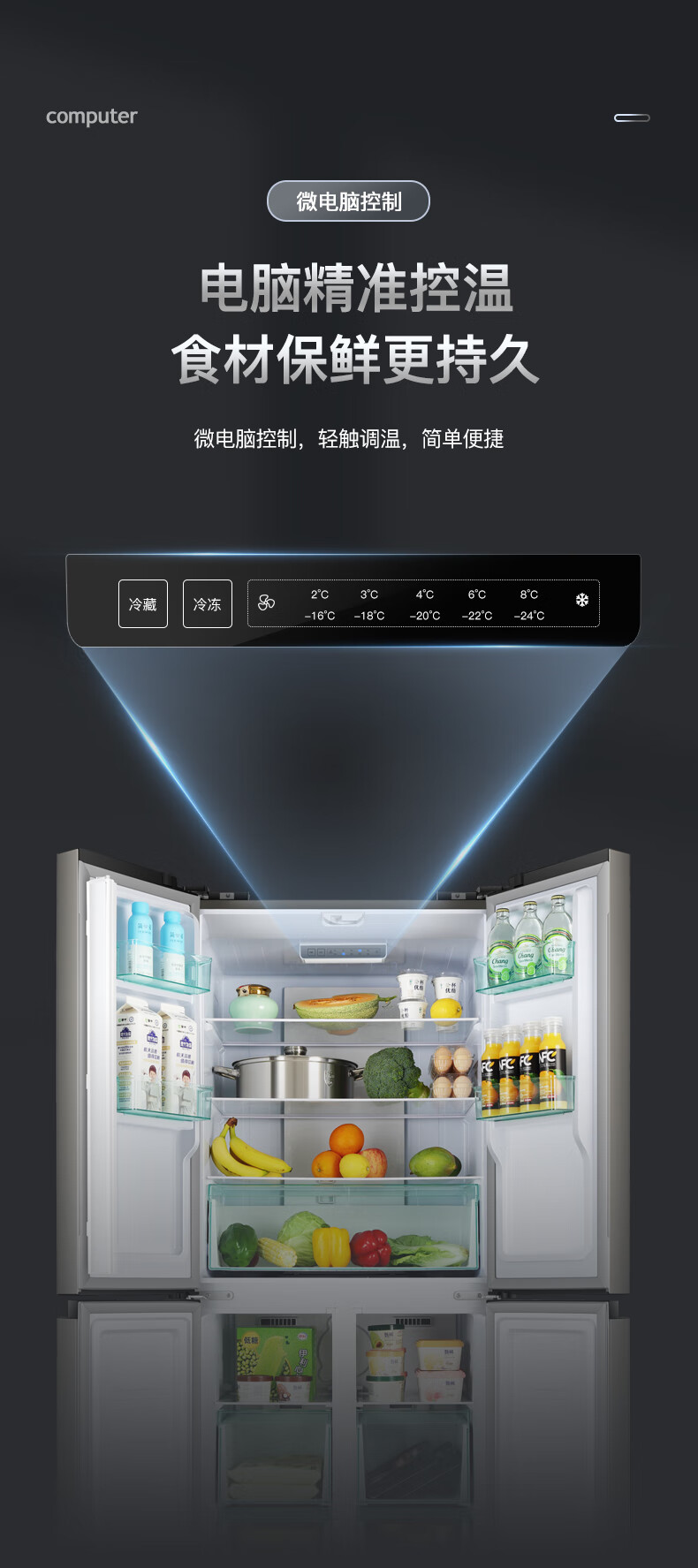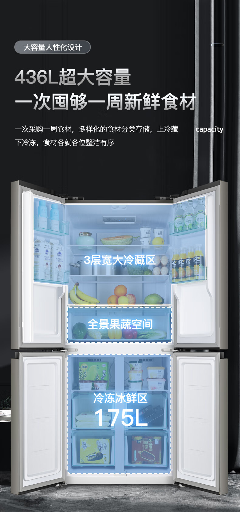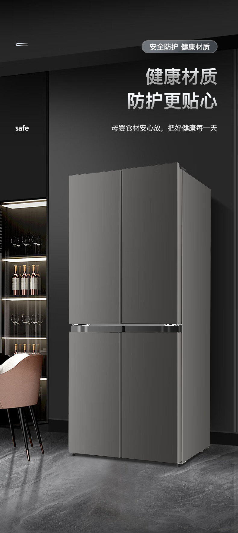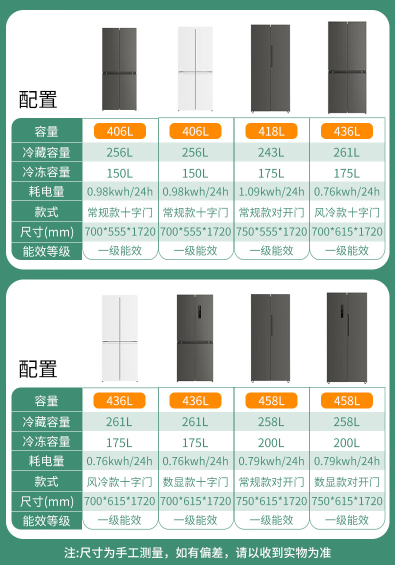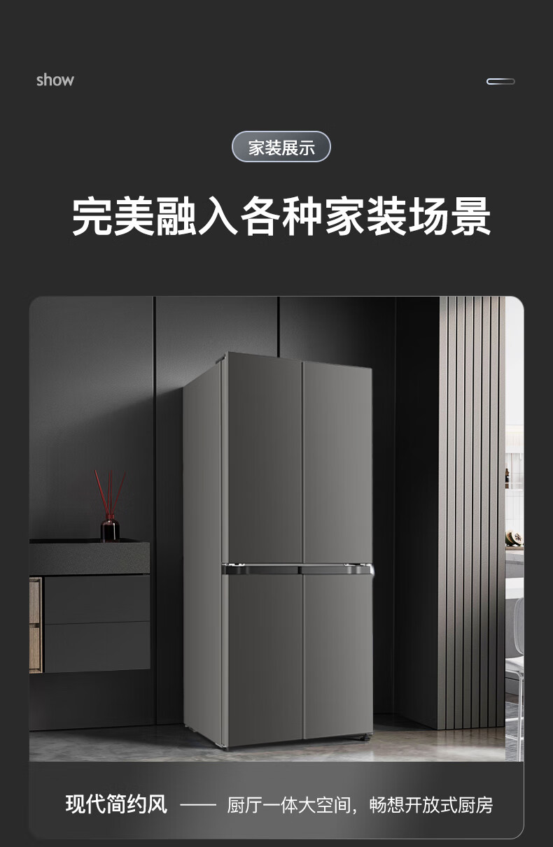 Chigo cross-door refrigerator large-capacity side-by-side four-door multi-door household ultra-thin embedded air-cooled frost-free refrigerator first-class energy efficiency direct cooling energy saving cross door 406L