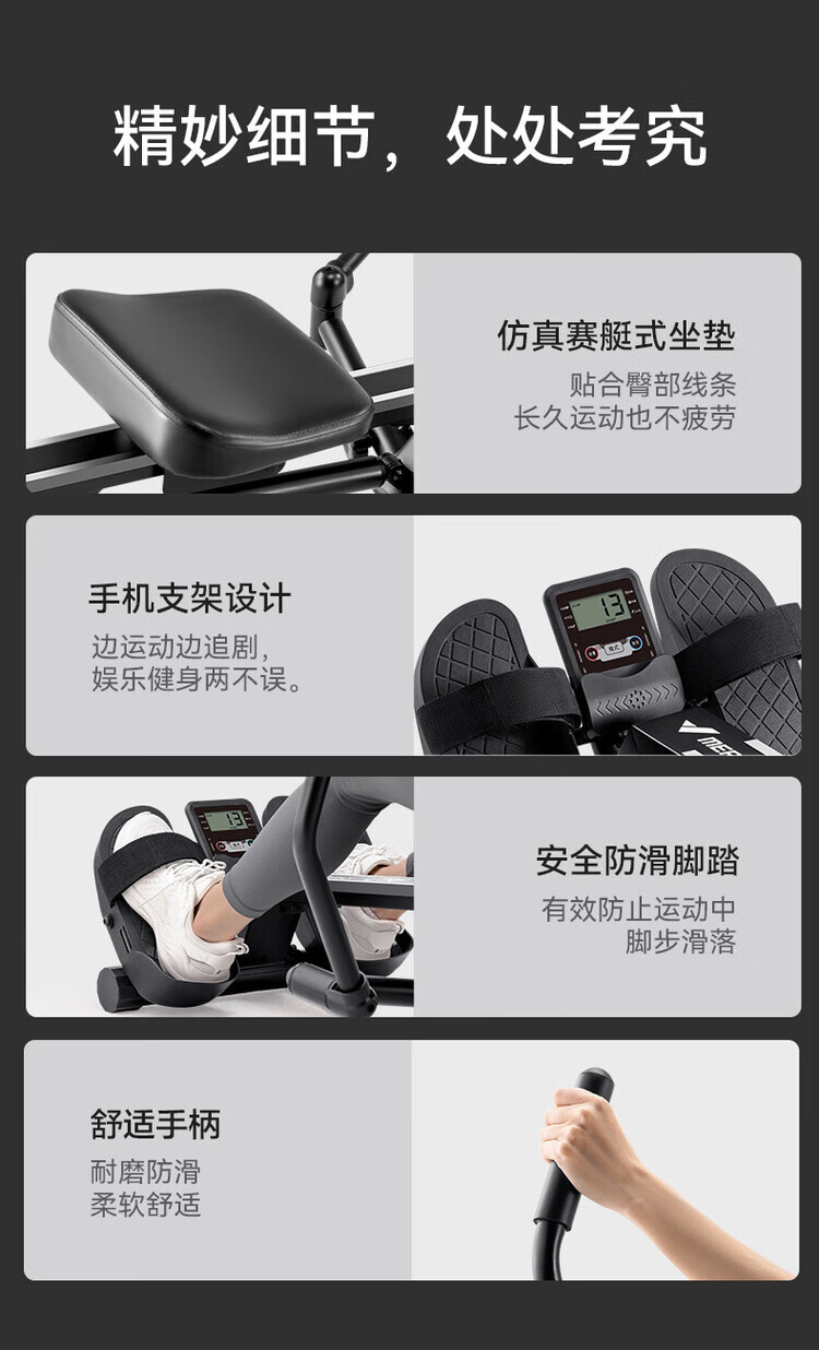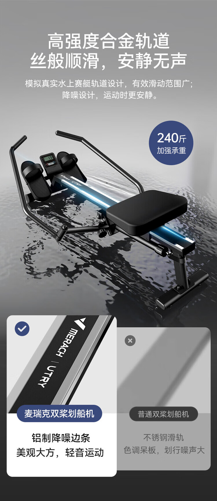 MERACH hydraulic rowing machine household sculls two-way 12-speed resistance exercise back exercise fitness household rowing machine equipment black