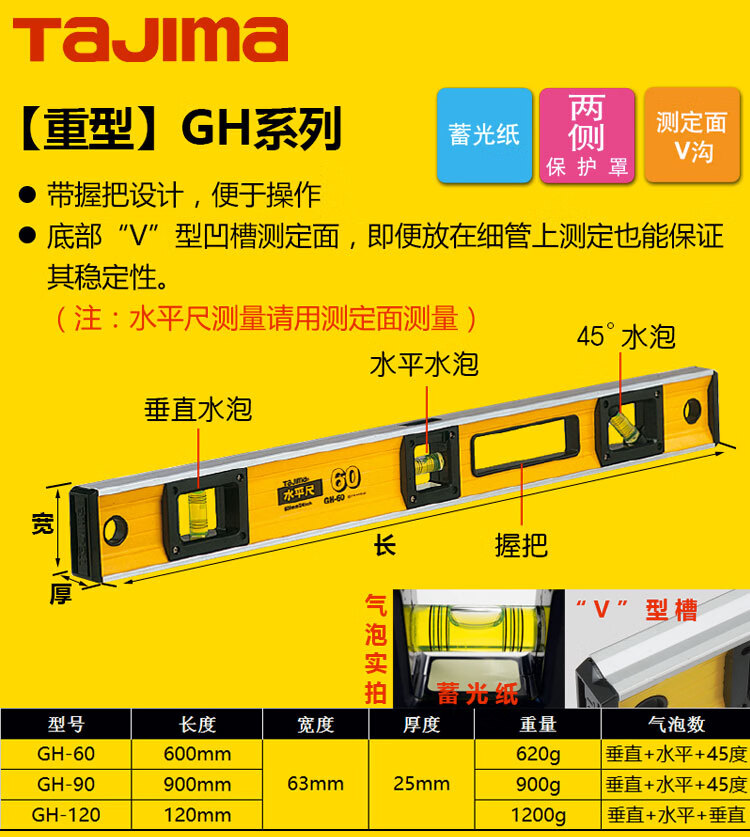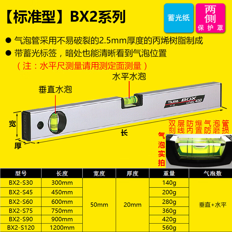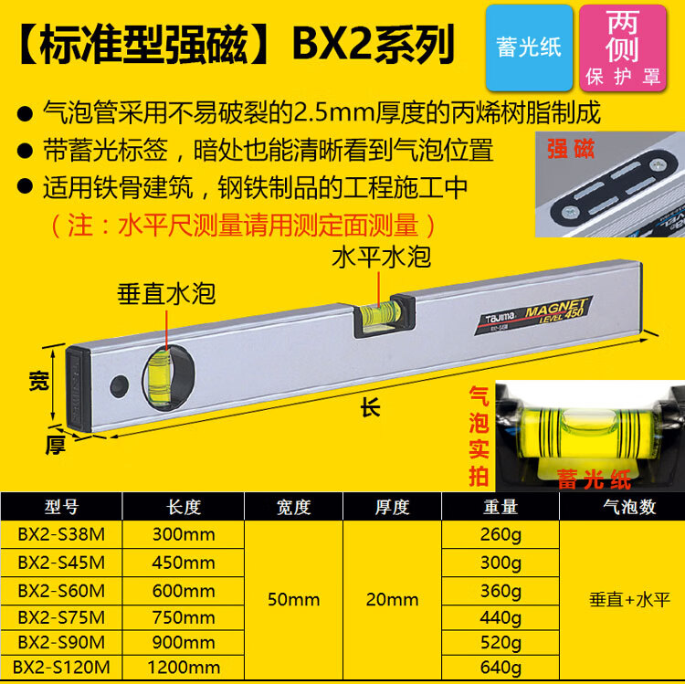 TAJIMA spirit level high-precision aluminum alloy level heavy-duty magnetic level measuring tool standard 30 cm (3 lines)