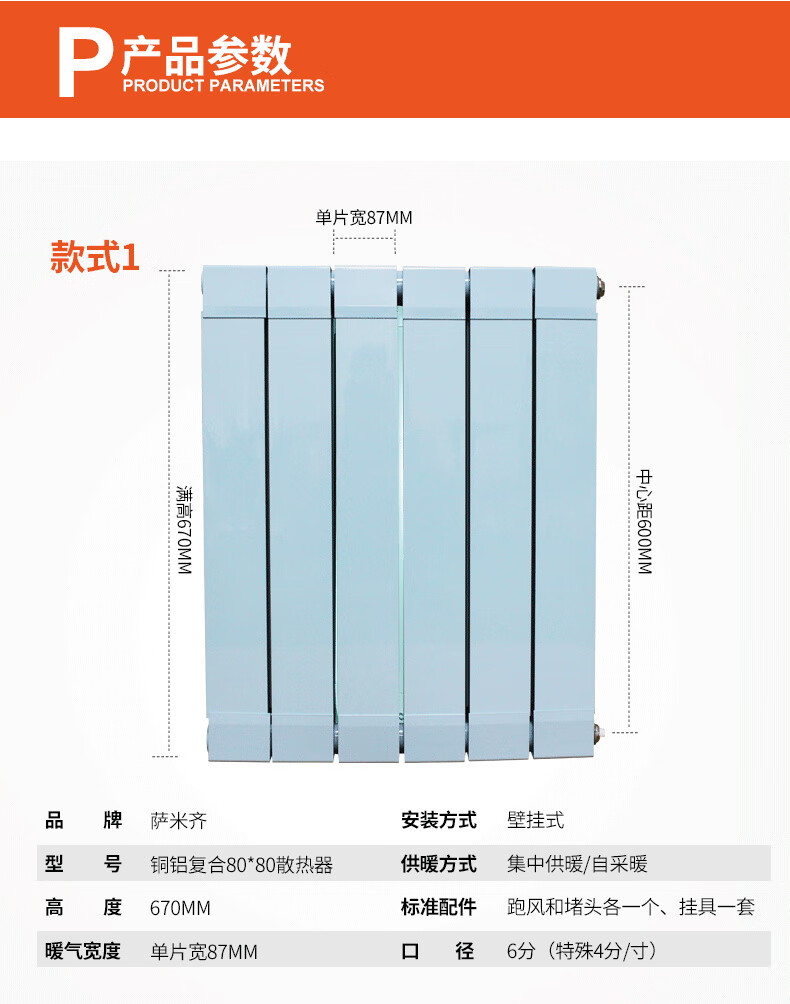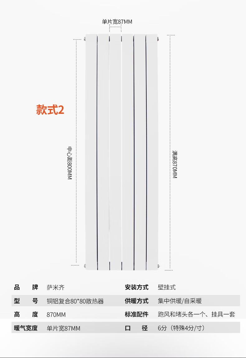 Samiqi copper-aluminum composite 8080 radiator anti-corrosion and durable household wall-mounted water heating radiator supports customization 600mm