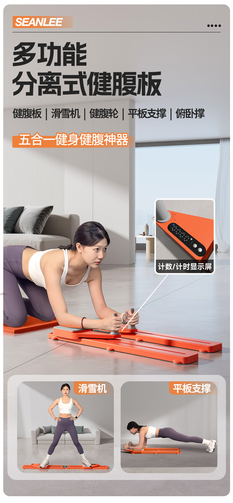 SEAN LEE multifunctional fitness board automatic rebound home fitness equipment foldable abdominal muscle training tool weight loss abdominal board flagship model with sports drawstring + grip
