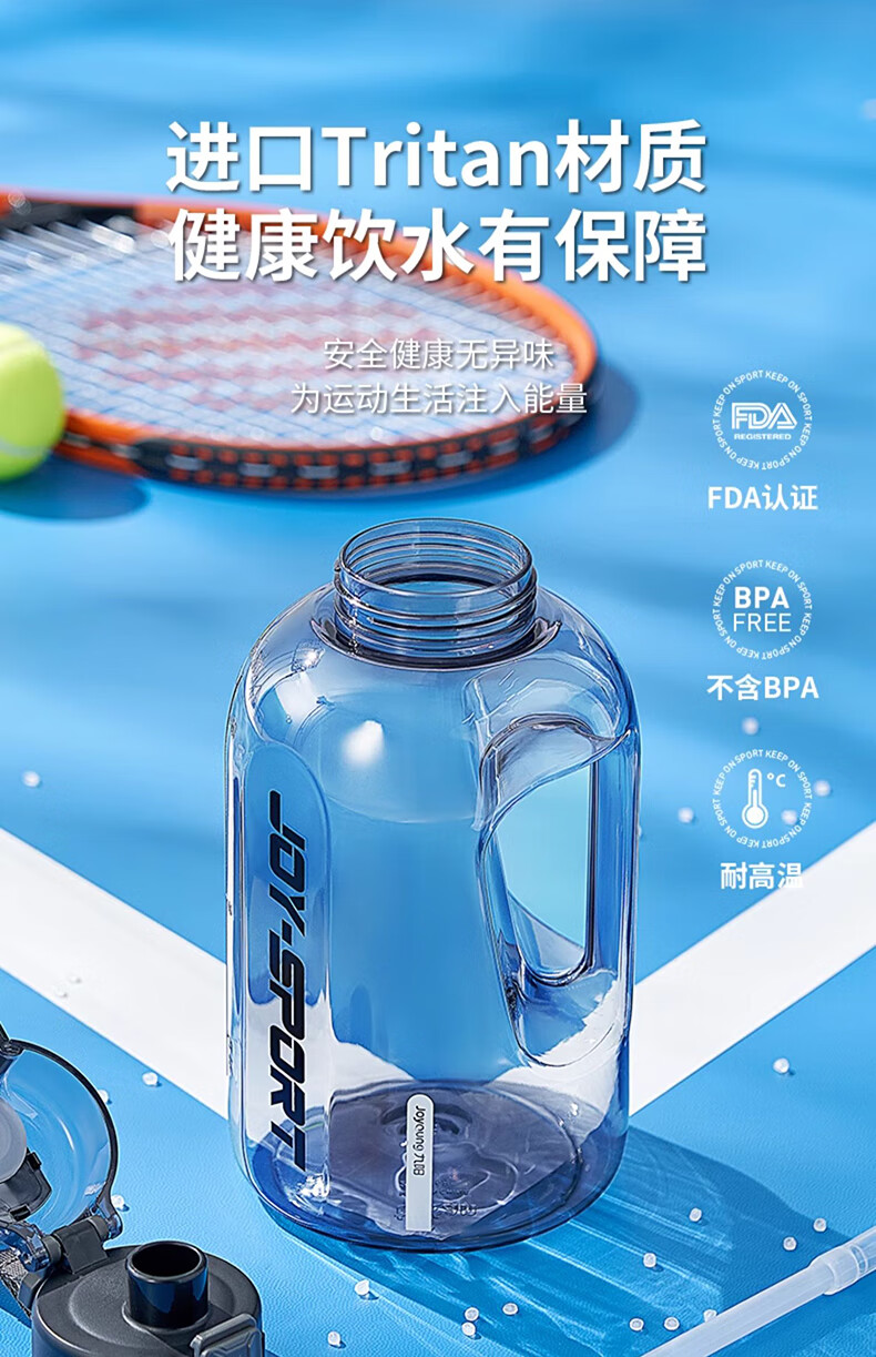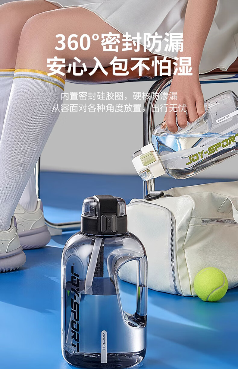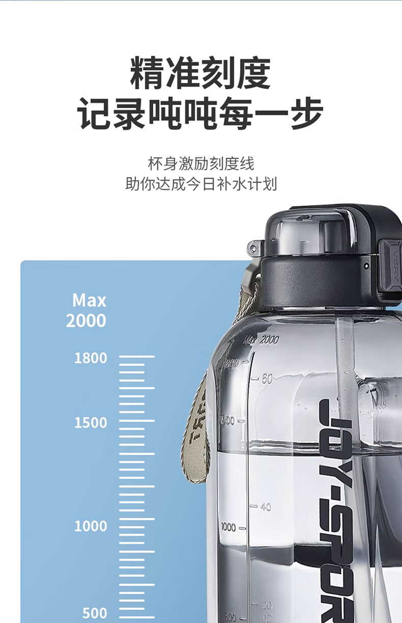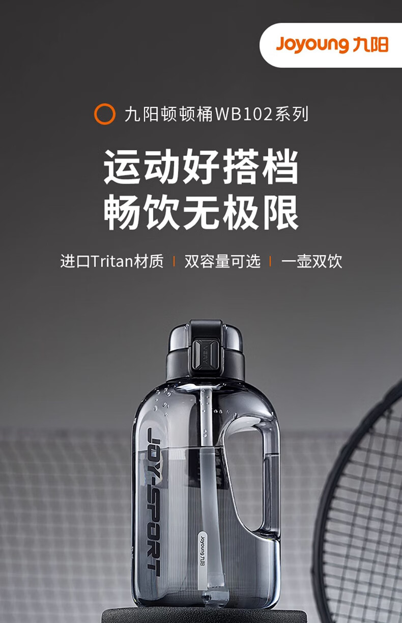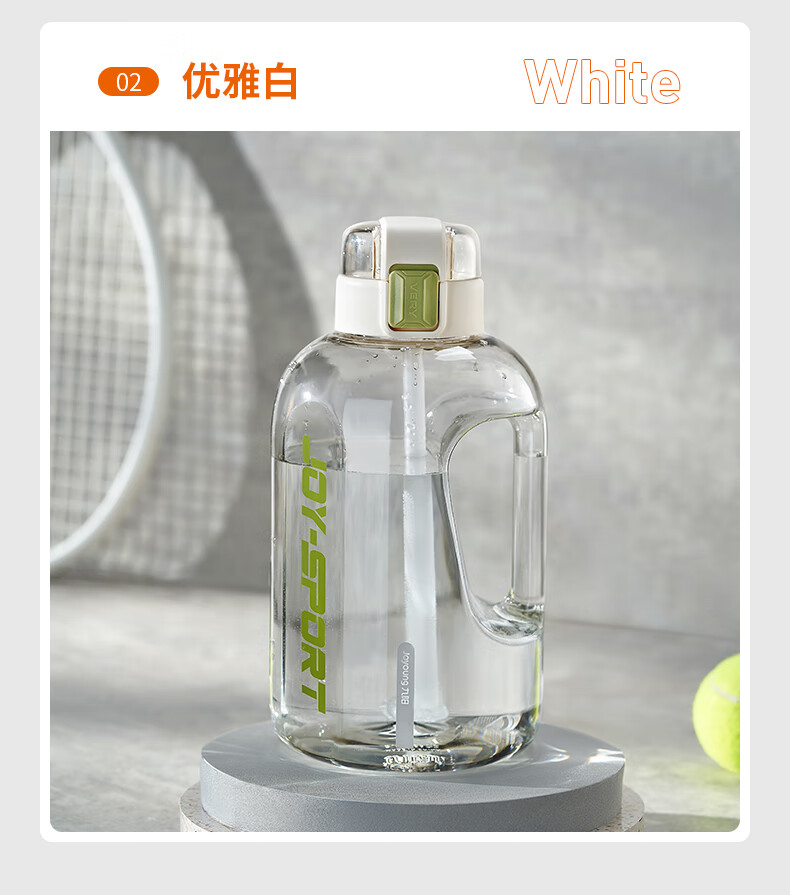 Joyoung Sports Bottle Water Cup Plastic Cup Large Capacity Ton Cup Bucket Fitness Outdoor Water Bottle Straw Cup Water Bottle Elegant White 2000ml WB102