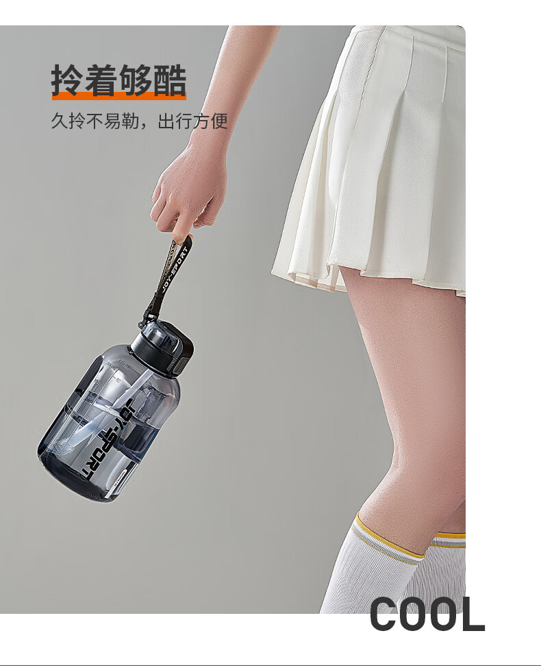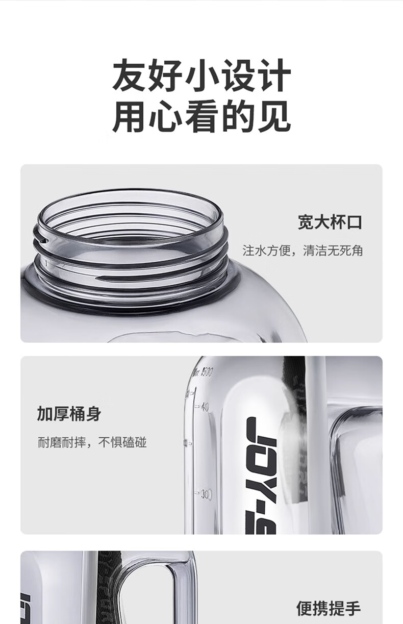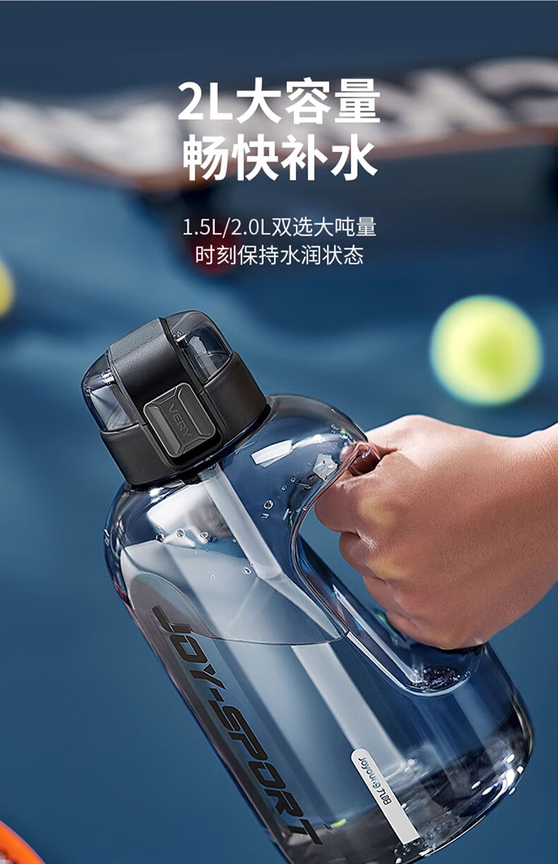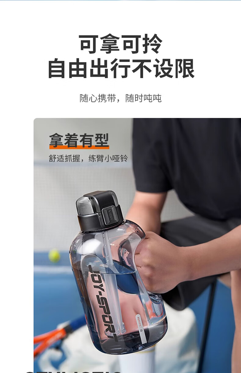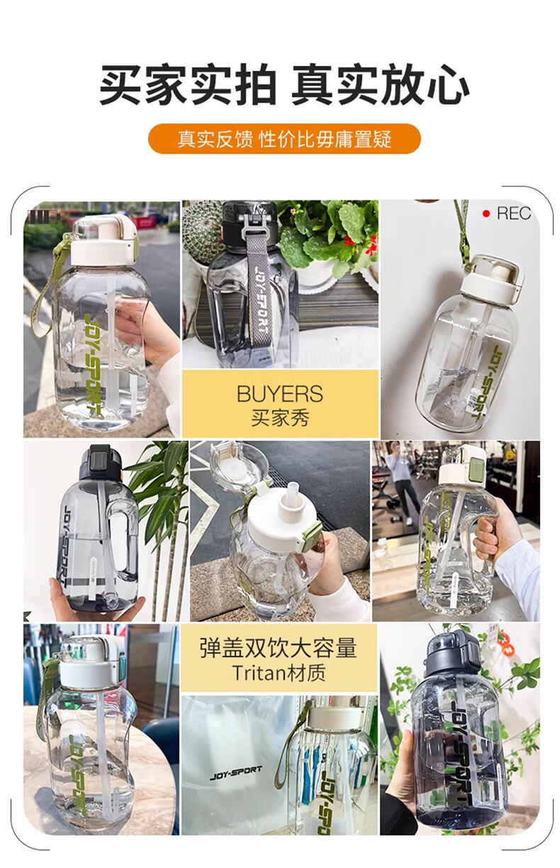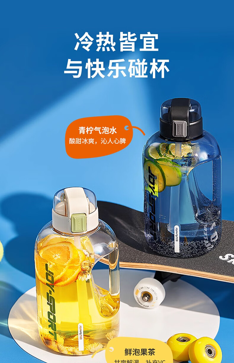 Joyoung Sports Bottle Water Cup Plastic Cup Large Capacity Ton Cup Bucket Fitness Outdoor Water Bottle Straw Cup Water Bottle Elegant White 2000ml WB102