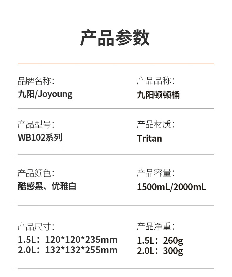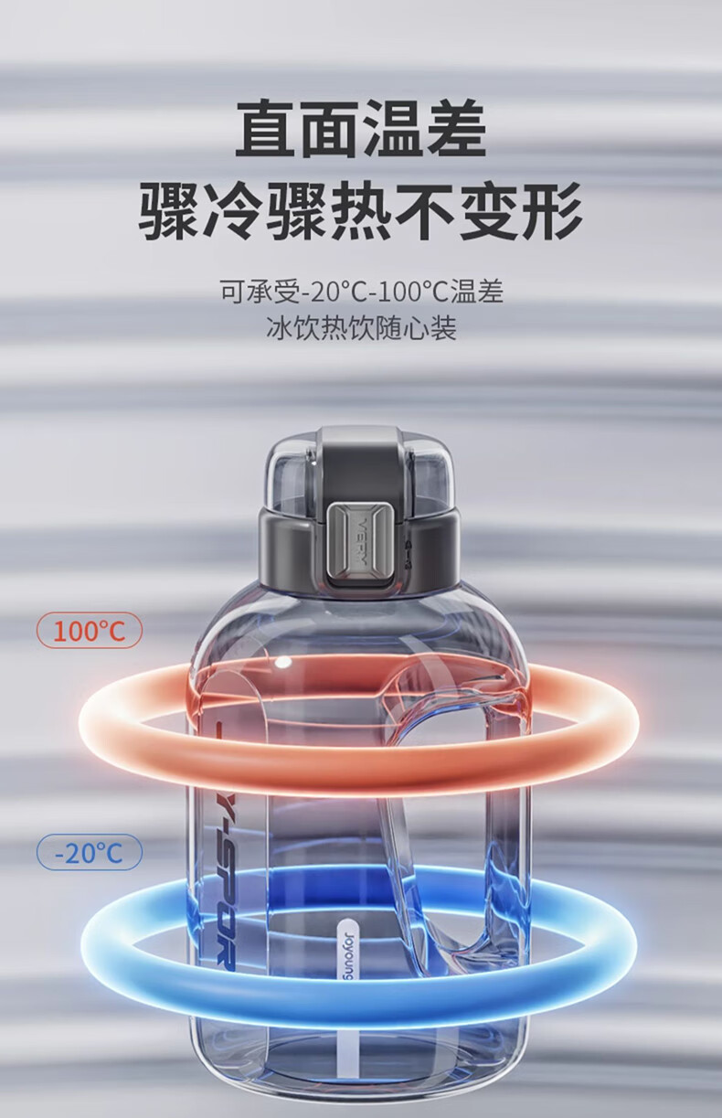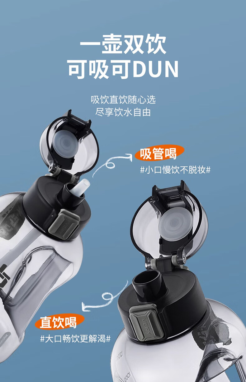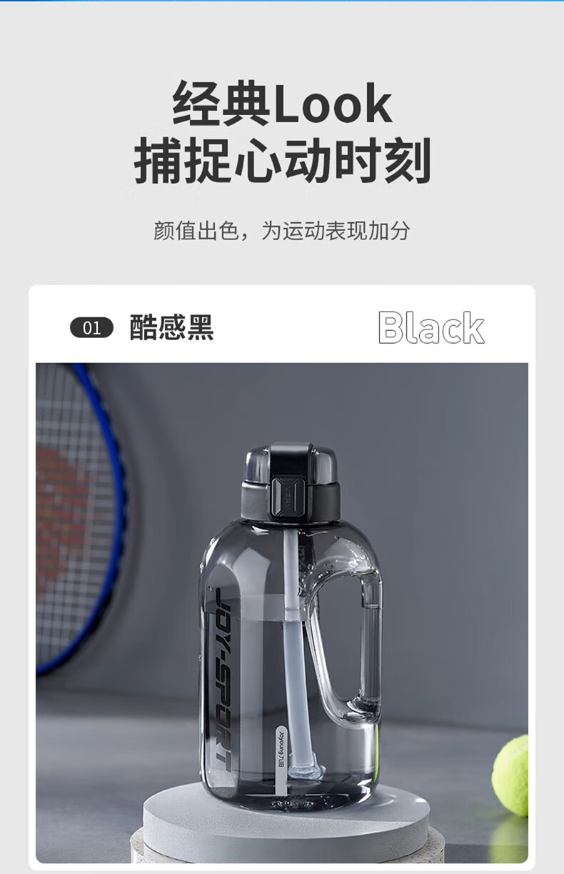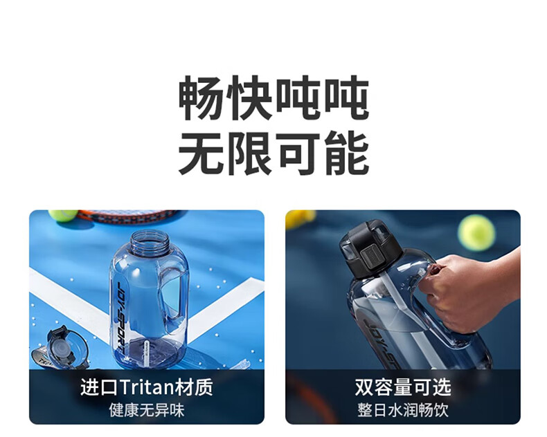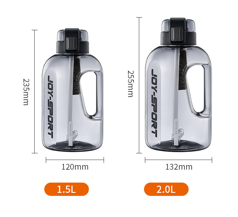 Joyoung Sports Bottle Water Cup Plastic Cup Large Capacity Ton Cup Bucket Fitness Outdoor Water Bottle Straw Cup Water Bottle Elegant White 2000ml WB102