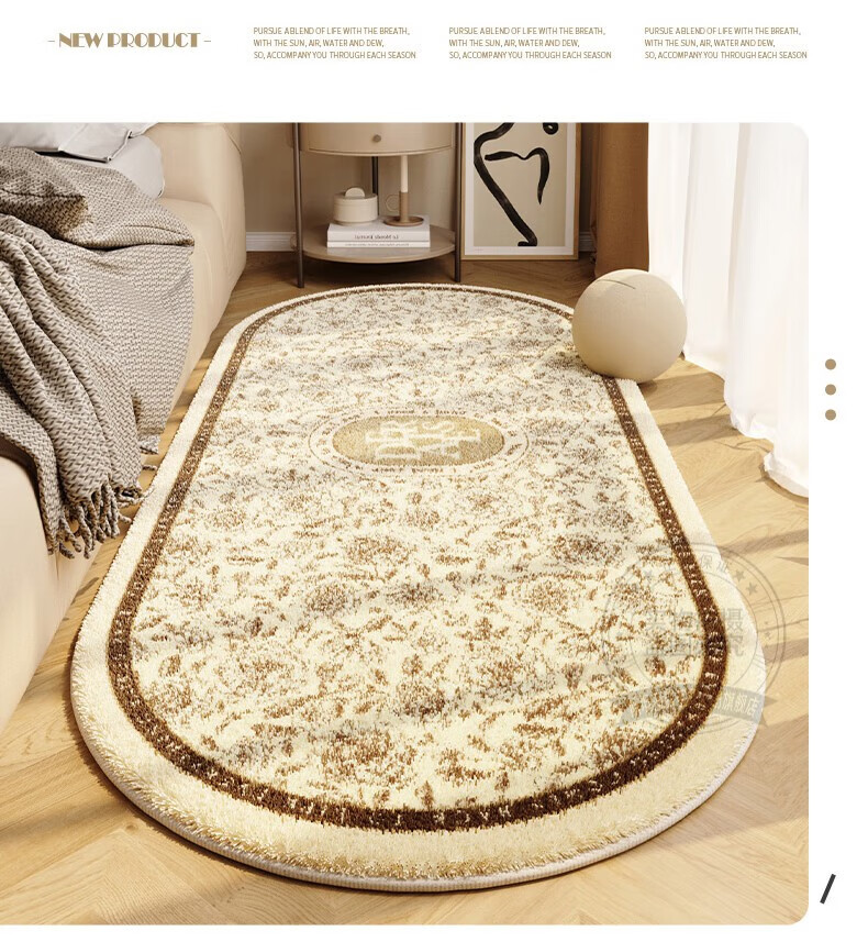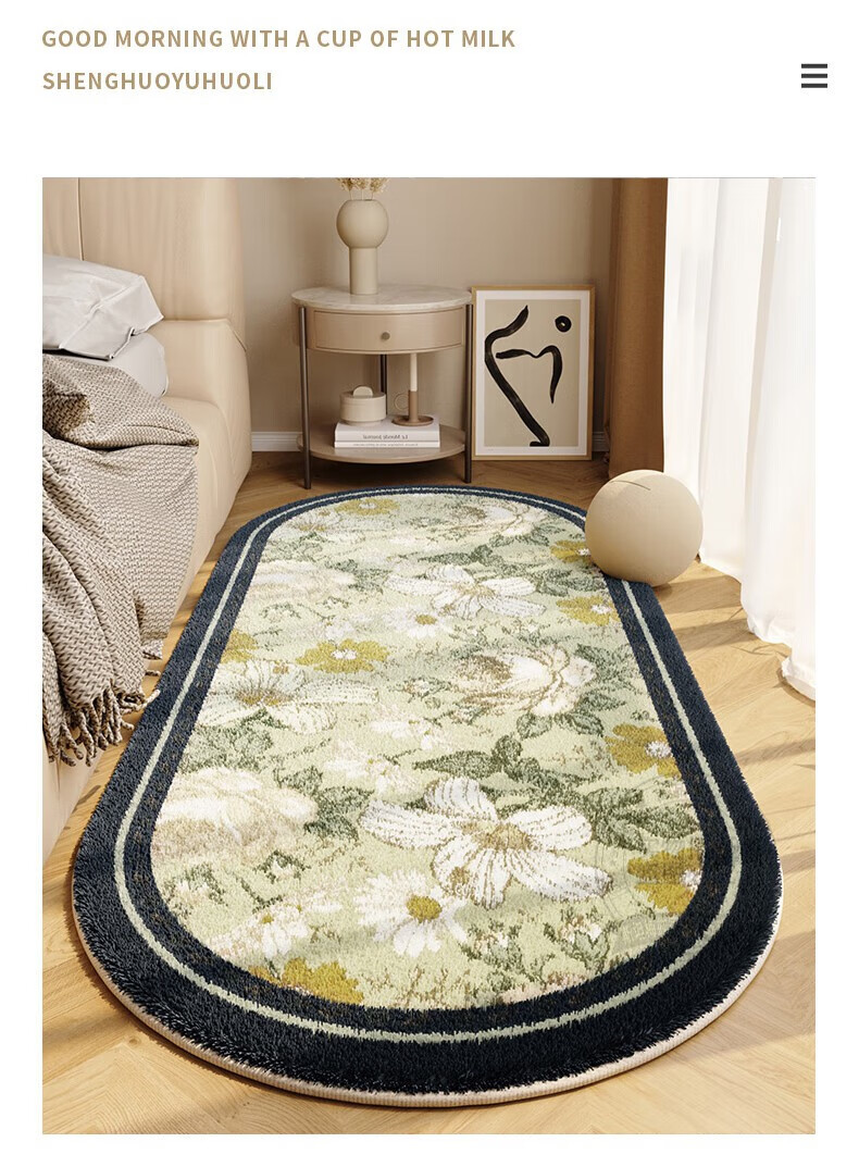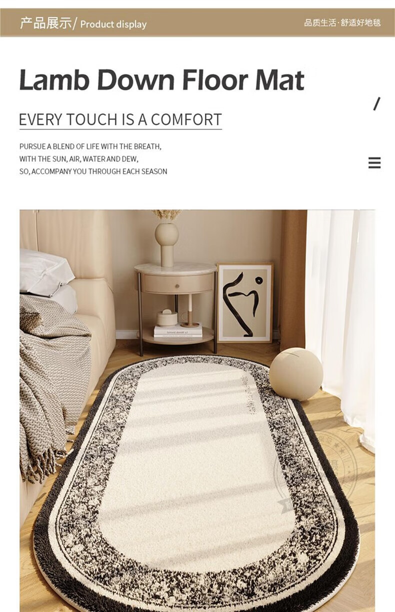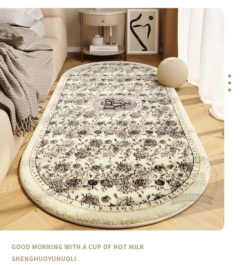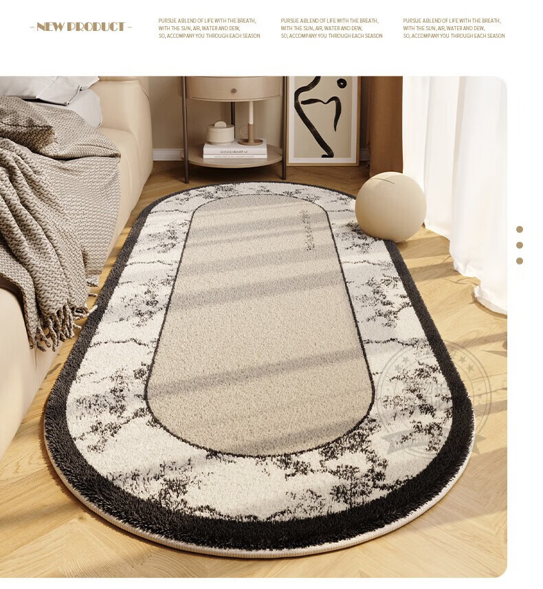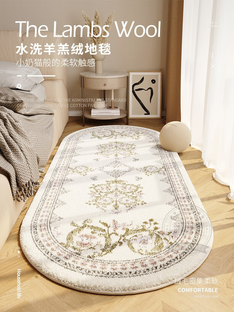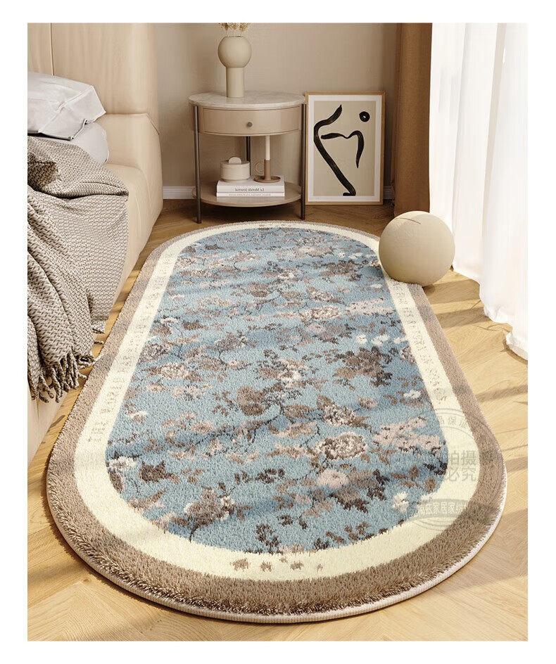 Steinmetz Bedside Carpet, Lamb's Velvet, High-end Bedroom Strip Carpet, Oval, Master Bedroom Thick Foot Rug in Front of Bed, Blue Night Quiet Point Plastic Bottom, Lamb's Velvet - Oval 80*160cm