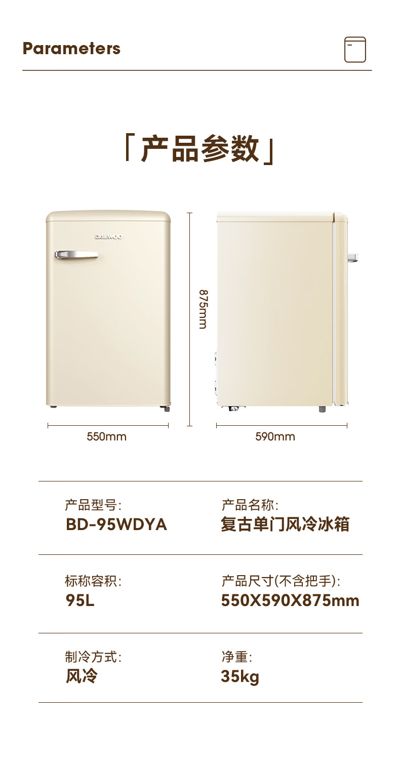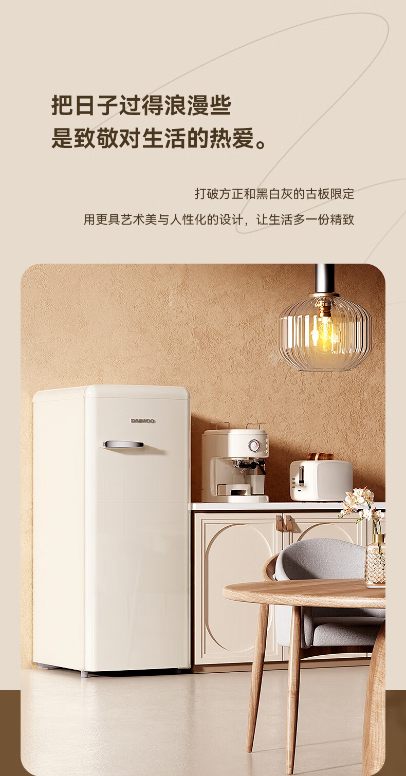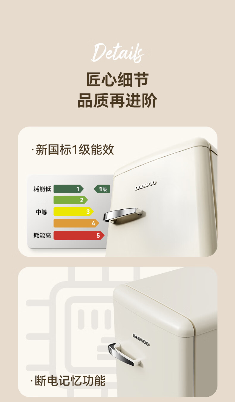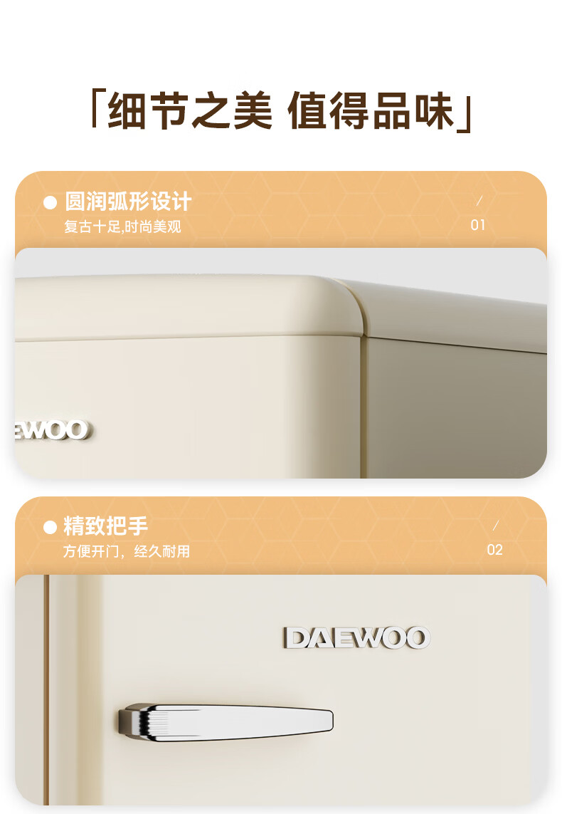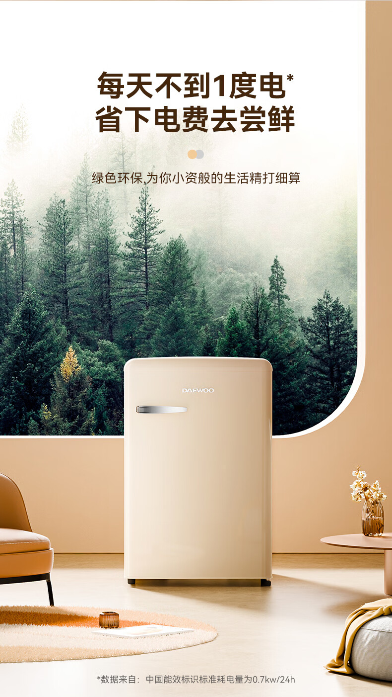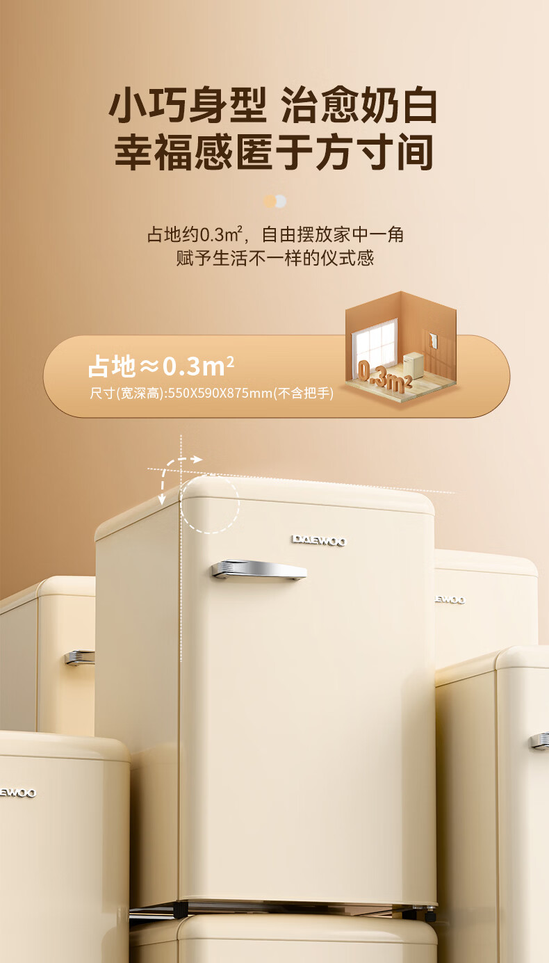 DAEWOO Home Office Tea Beverage Small Retro Refrigerator Freezer Fresh Cabinet Ice Bar Mini High-Looking Gaming Room Refrigerator Freezer Small Refrigerator 106L | First Class Energy Efficiency | Cream White