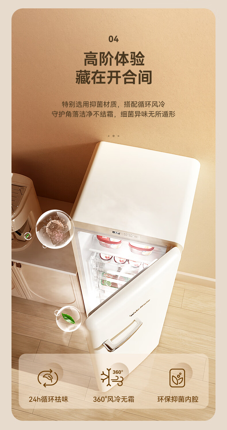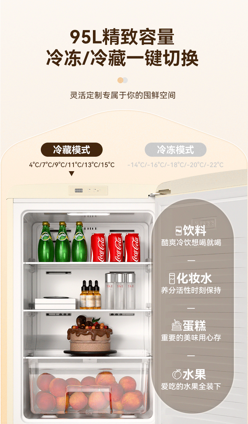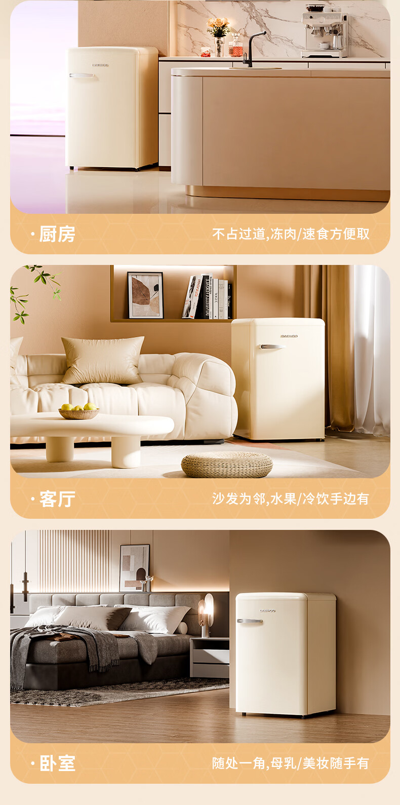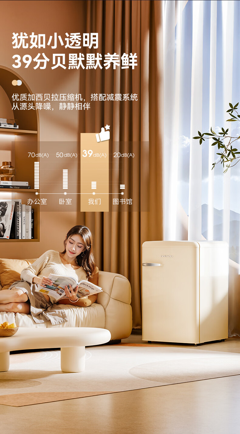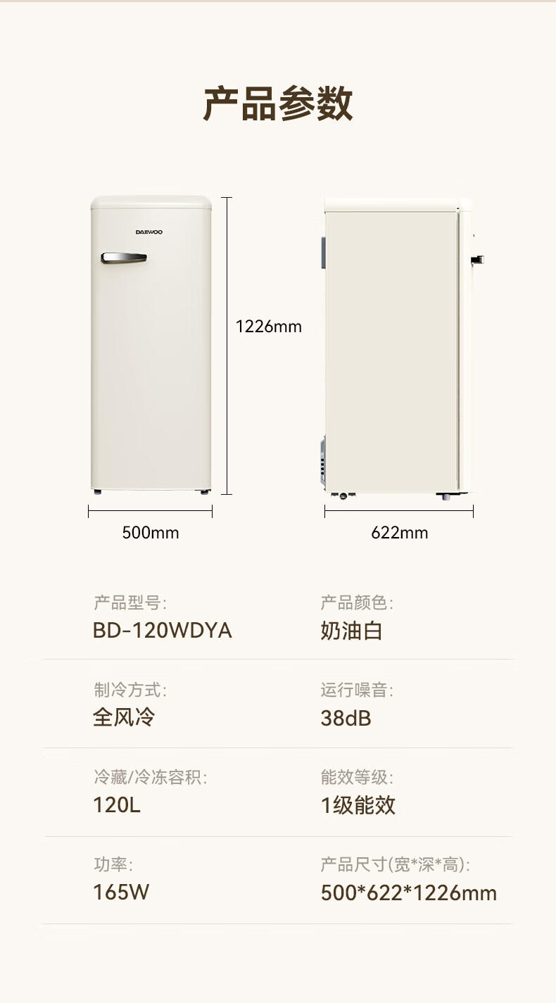DAEWOO Home Office Tea Beverage Small Retro Refrigerator Freezer Fresh Cabinet Ice Bar Mini High-Looking Gaming Room Refrigerator Freezer Small Refrigerator 106L | First Class Energy Efficiency | Cream White