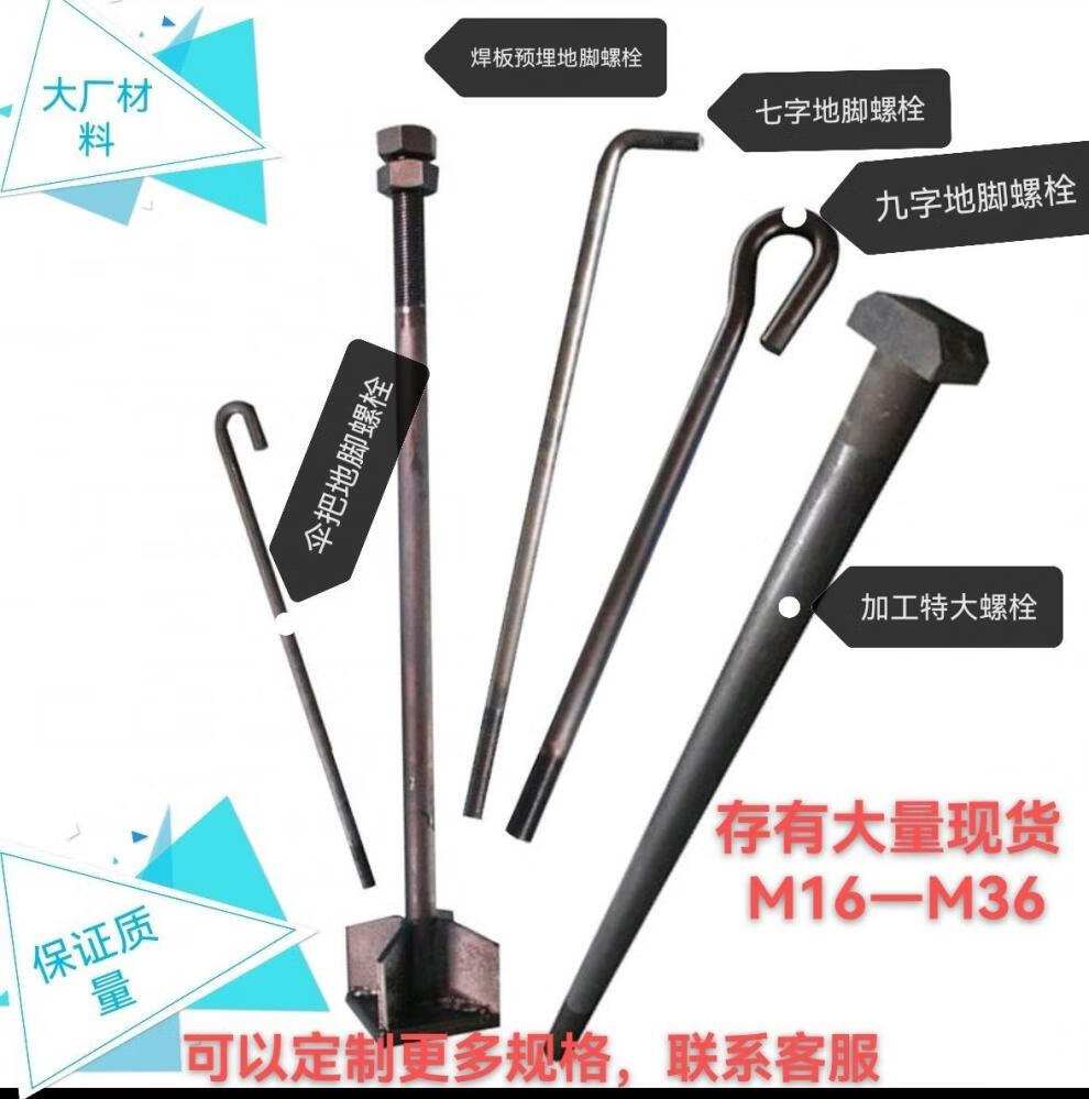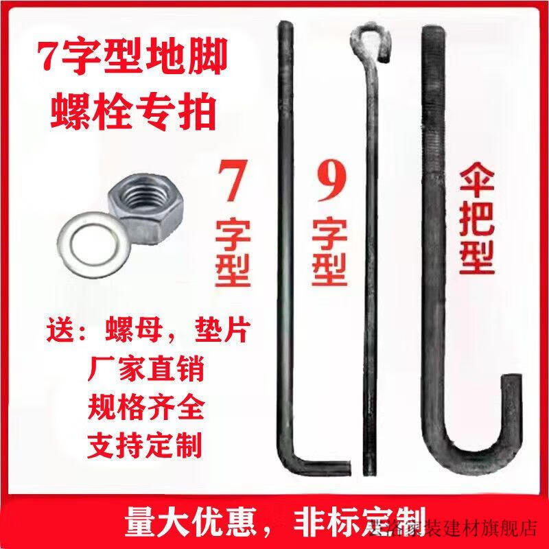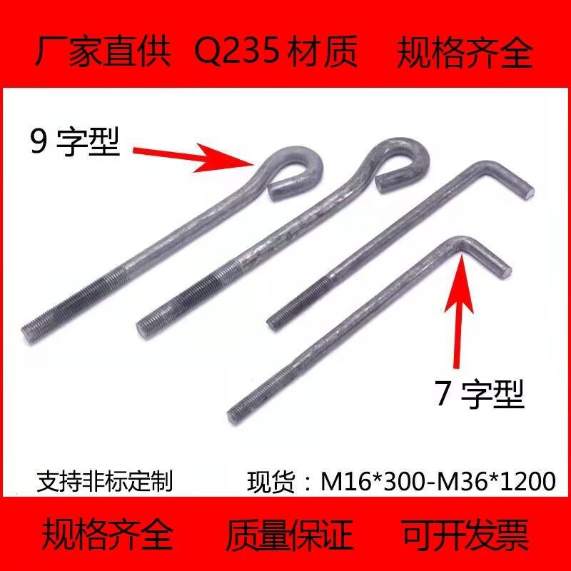 Vinoa 7-character anchor bolt L-shaped ground angle screw embedded bolt M12M14M16M18M20M24M27M30u type M24*700 high (with 2 nuts) 7-character bolt one control nut two + gasket