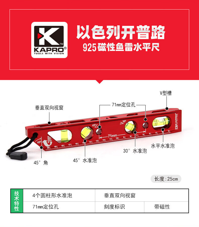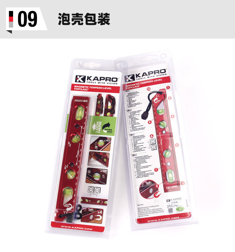 KAPRO Cape Road level high-precision solid die-cast strong magnetic pipe socket leveling meter with scale leveling level 925M 925M magnetic torpedo level (solid)
