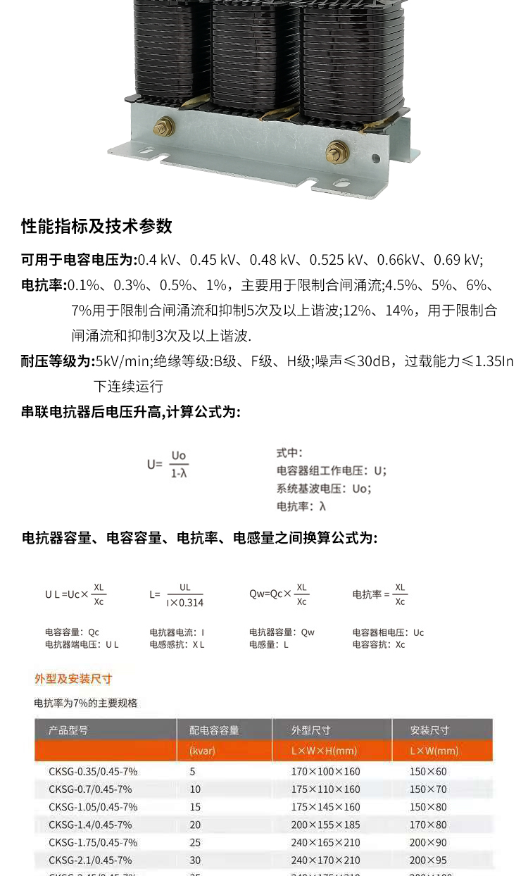 CKSG reactive power compensation reactor capacitor three-phase series reactor 30kvar filter AC reactor CKSG-1.05/0.45-7% matching capacitor 15k