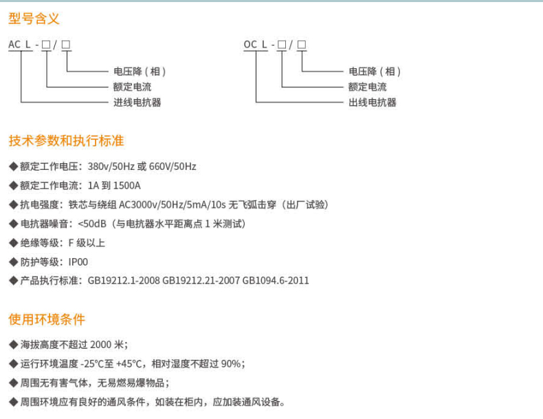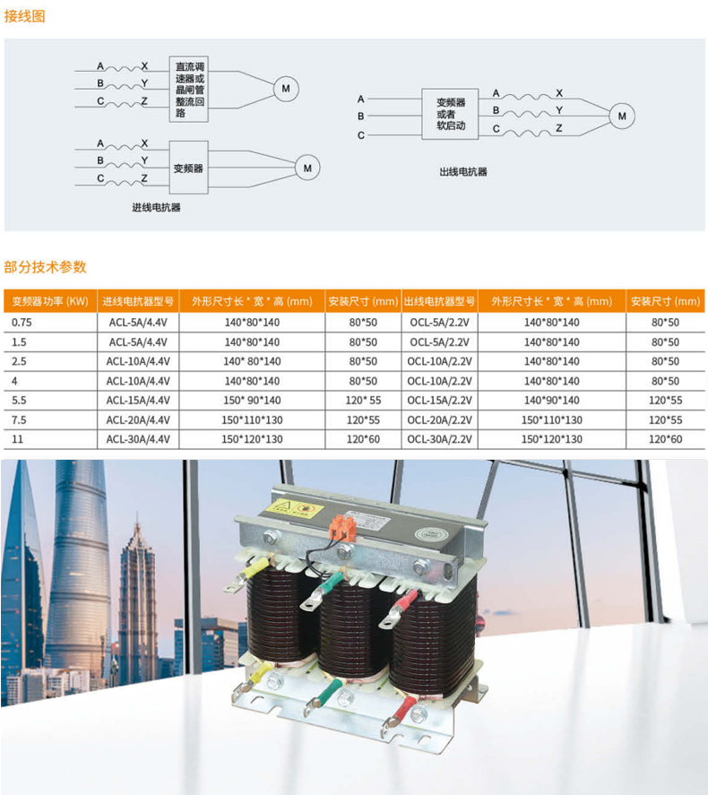 Reactor three-phase inverter reactor input reactor three-phase output reactor inverter ACL-10A 0.75-4kw