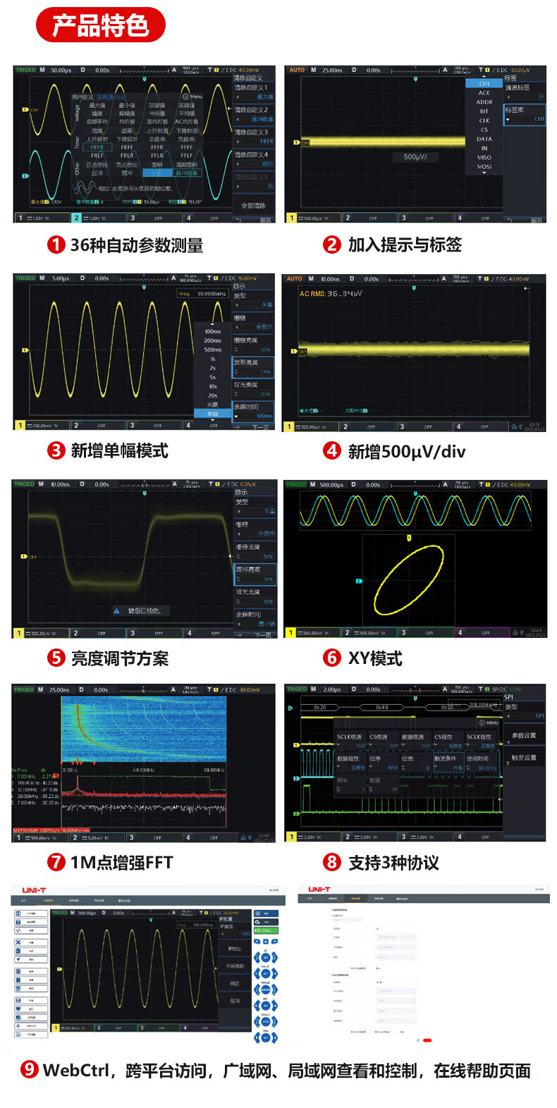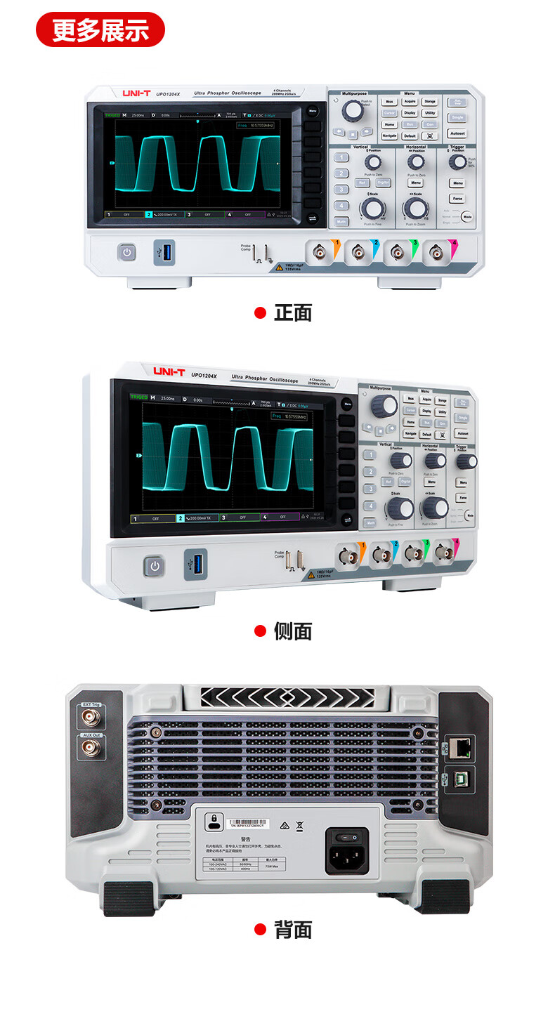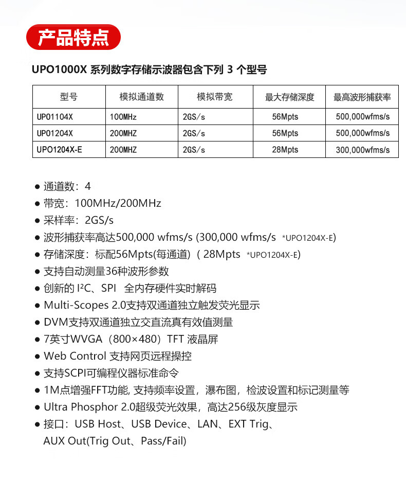 Unilever UPO1204X high-precision digital fluorescence oscilloscope, four-channel 200M bandwidth, 2G sampling rate, deep memory UPO1204X-E (Chinese oscilloscope)