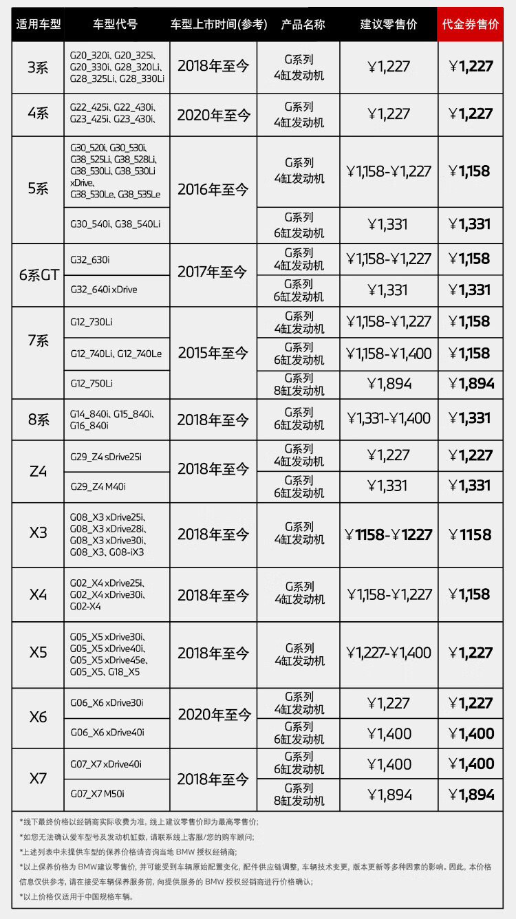 BMW official original single-use oil filter is suitable for 3 Series/5 Series/7 Series/X3/X5/X7 maintenance 4s in-store voucher Z4 G series 4-cylinder engine