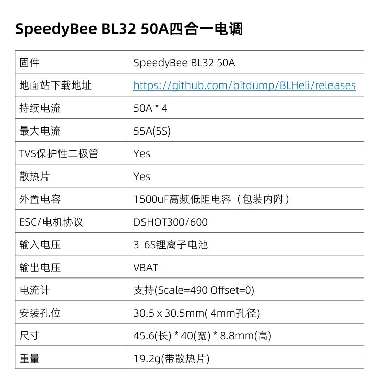 Control BL32 50A 30x30 flying tower 8-way ESC FPV flying model aircraft F7 V3 single flight control SpeedyBee