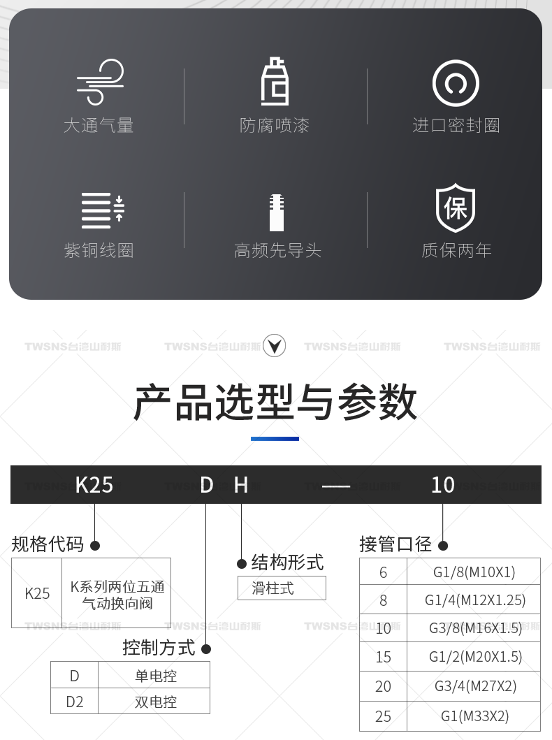 Two-position five-way single solenoid valve K25DH-6 8 10 15 20 25 reversing valve stop valve old valve K25DH-20/DC24V