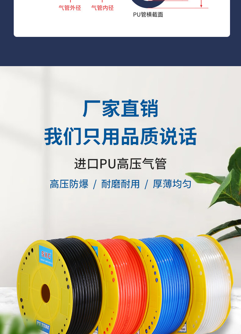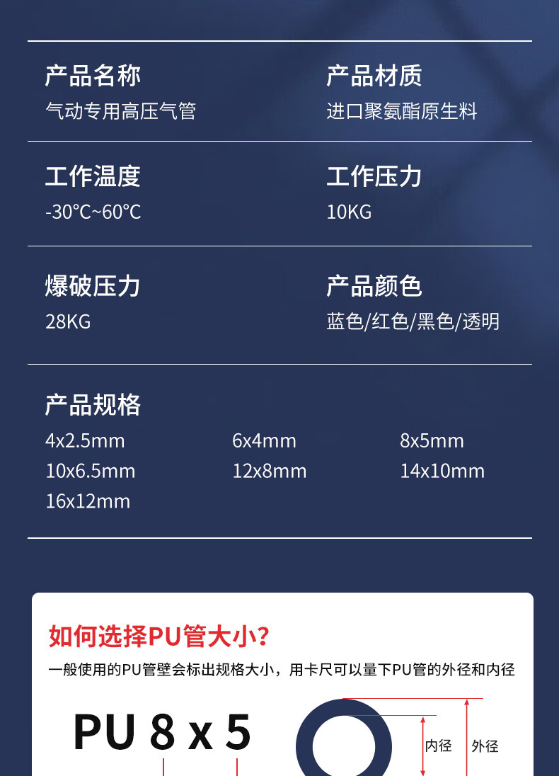 Trachea pu tube quick connector trachea 8mm10mm intubation air compressor high pressure air pump trachea hose air line 90m 12*8 transparent