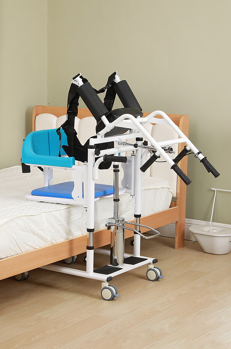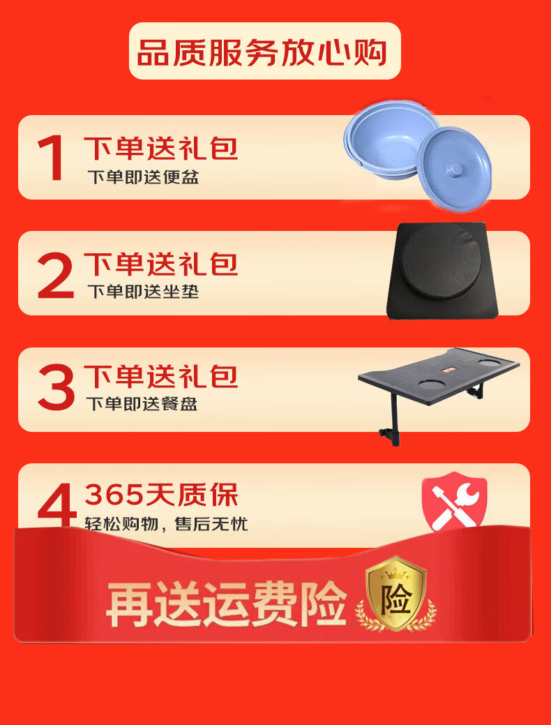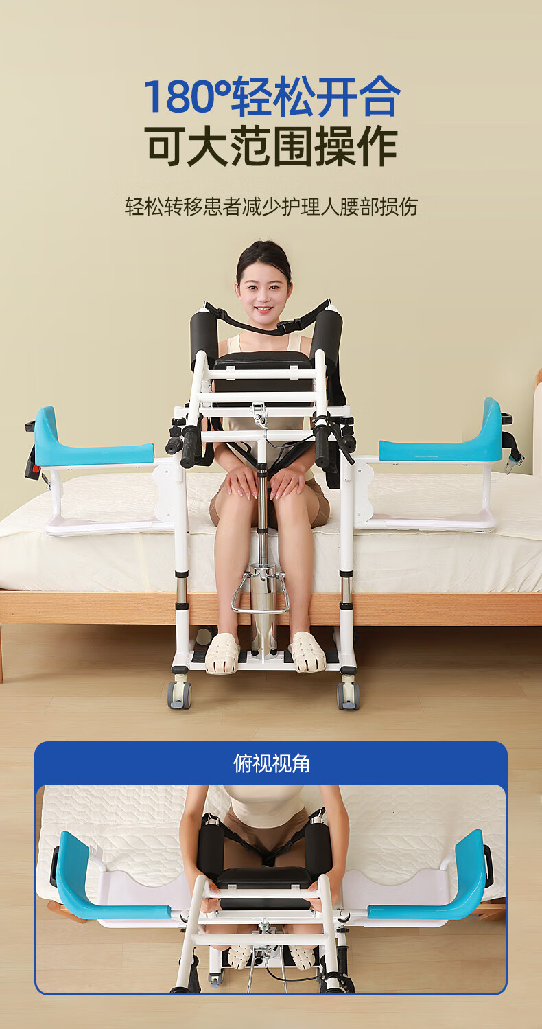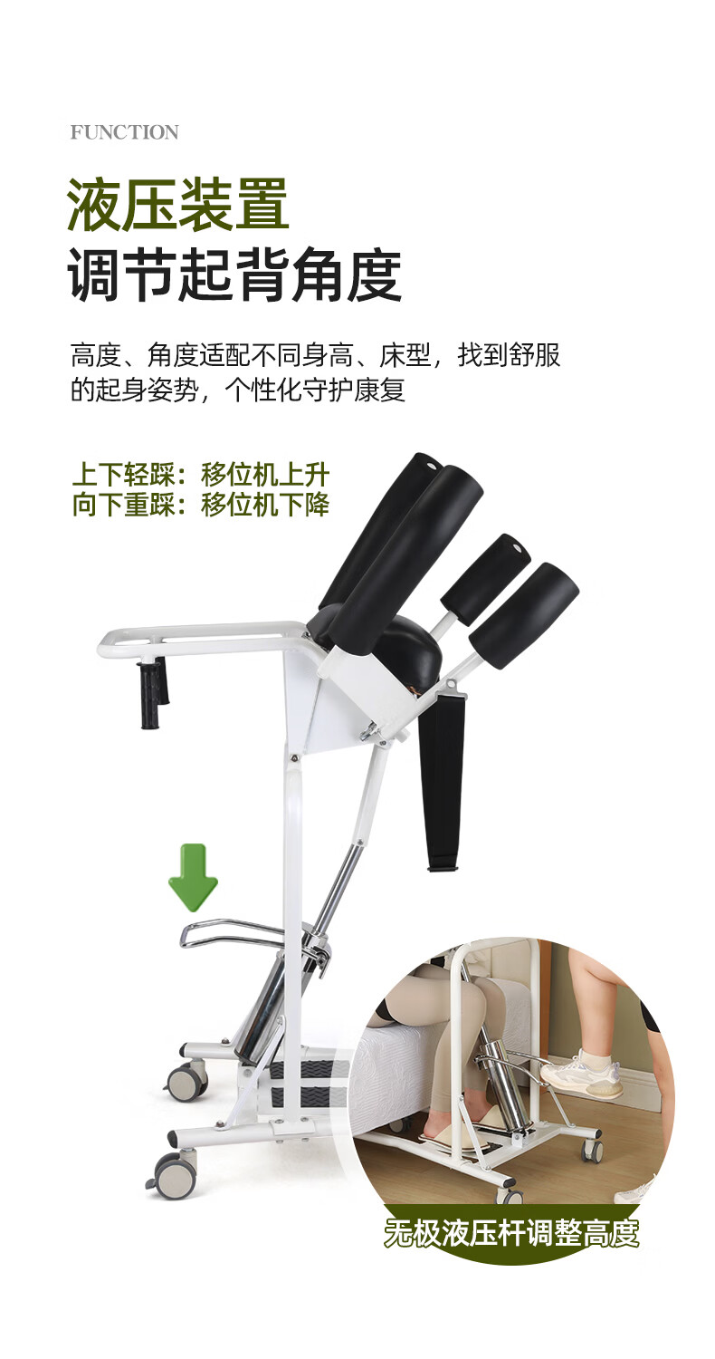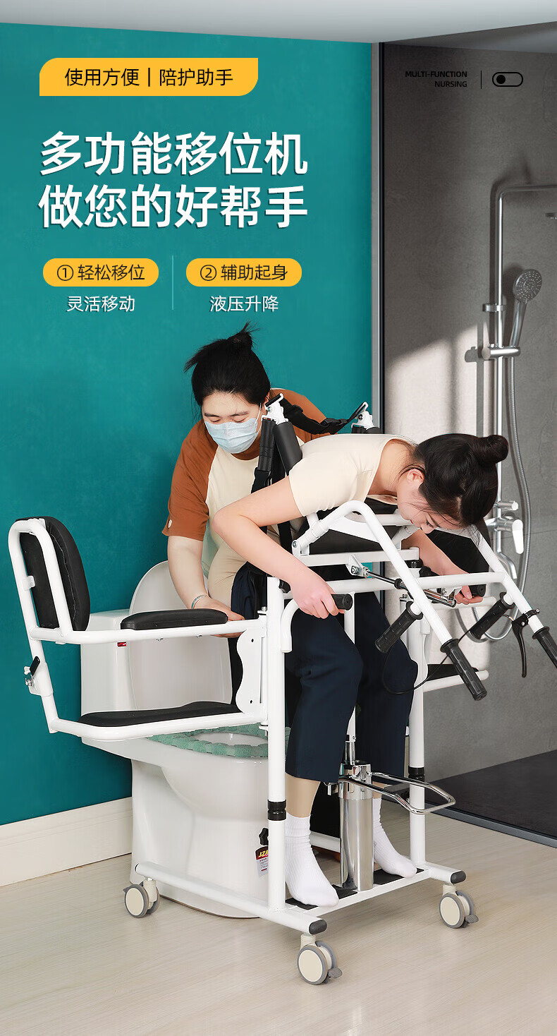 Renkanghui lift for the paralyzed elderly, lift for the disabled, lift-free hydraulic lift mobile chair, bed care artifact, flagship black armrest hydraulic arm lift + dining table board + commode + cushion