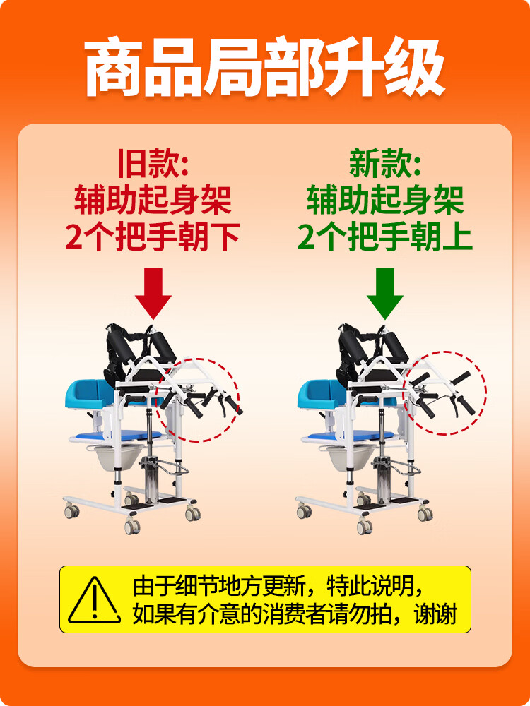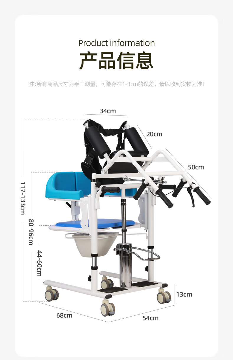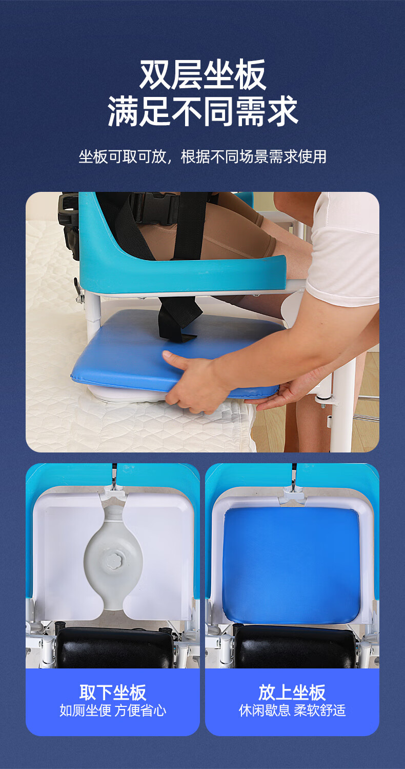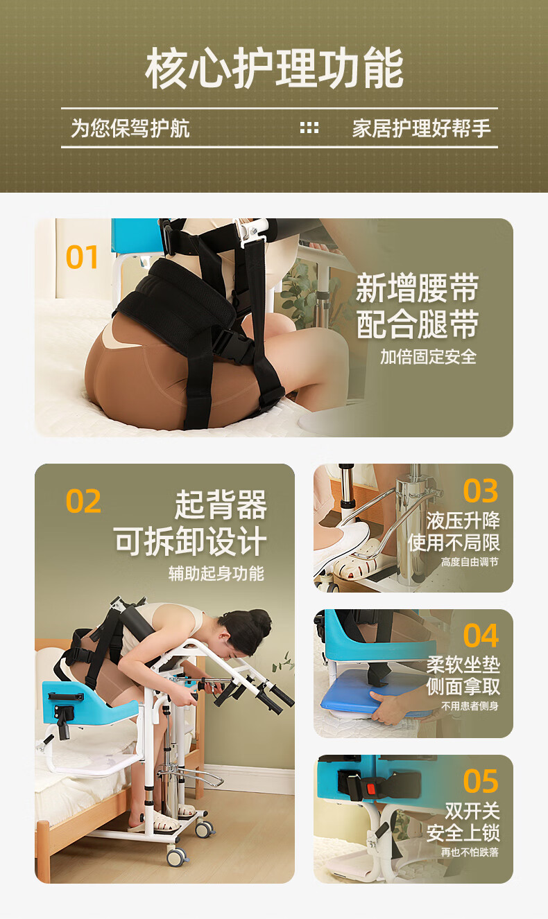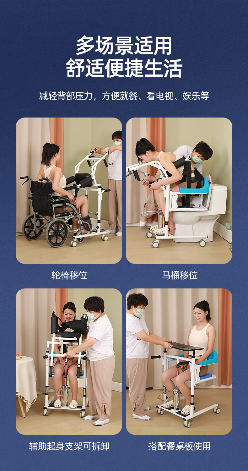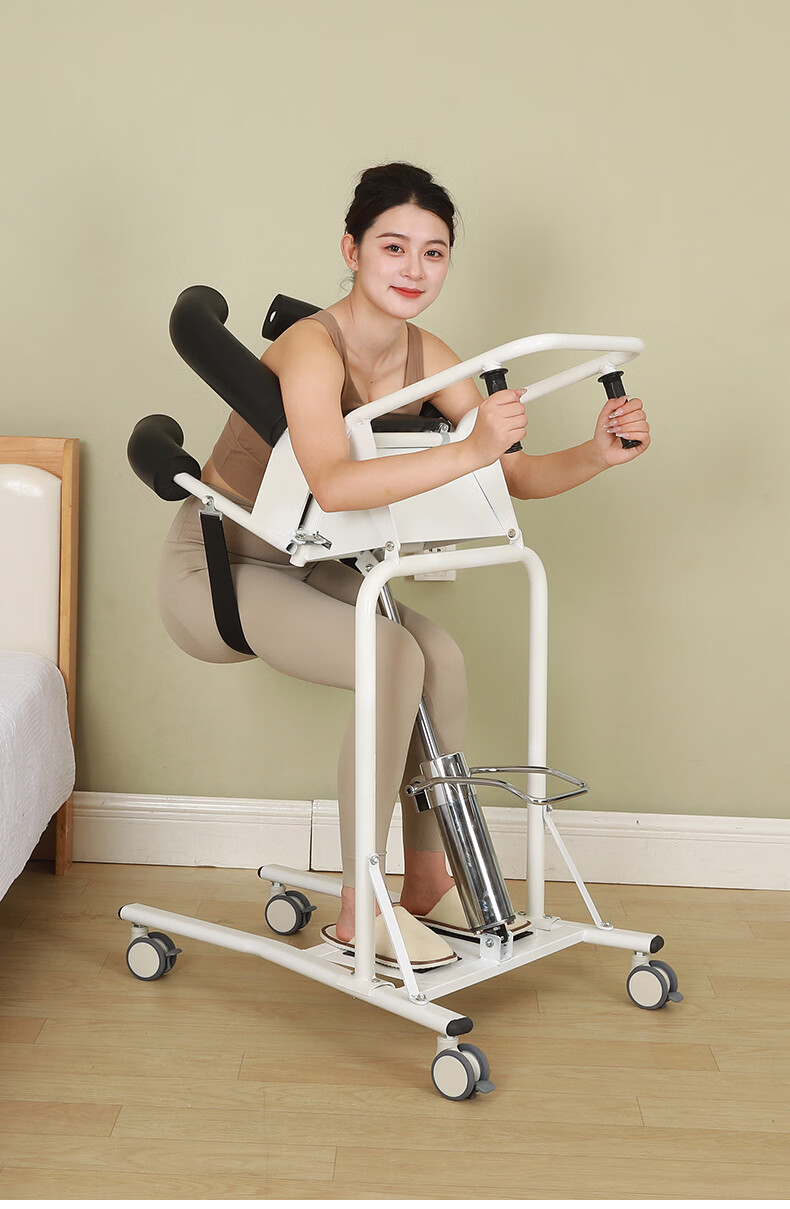 Renkanghui lift for the paralyzed elderly, lift for the disabled, lift-free hydraulic lift mobile chair, bed care artifact, flagship black armrest hydraulic arm lift + dining table board + commode + cushion