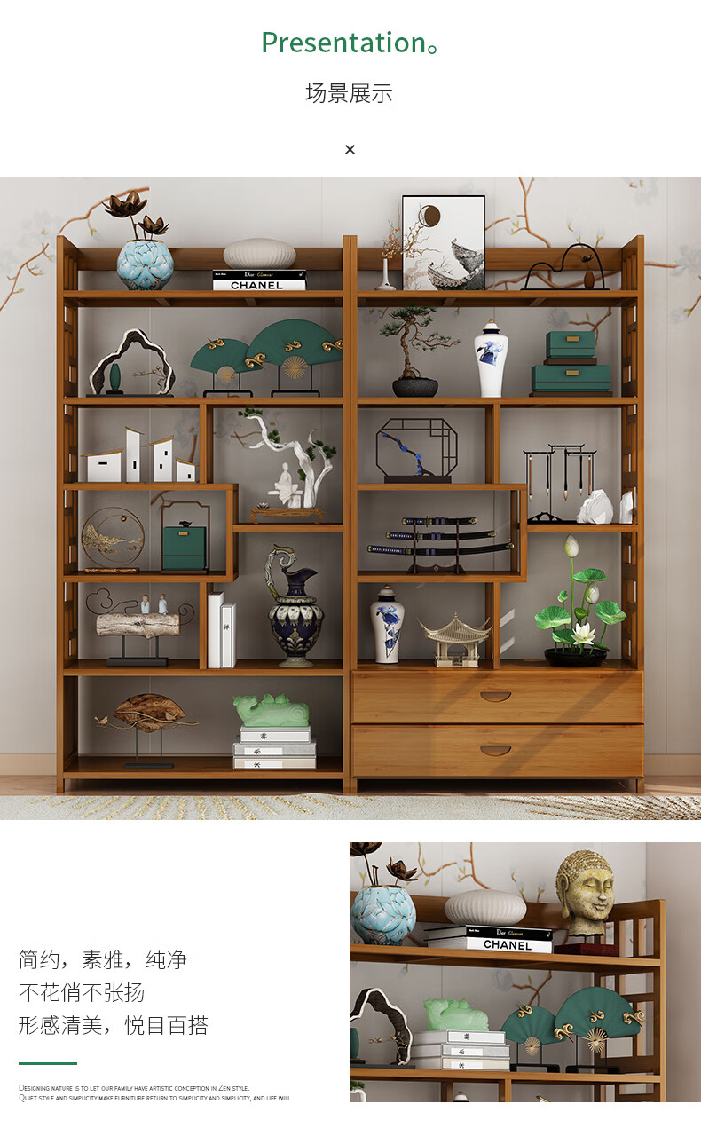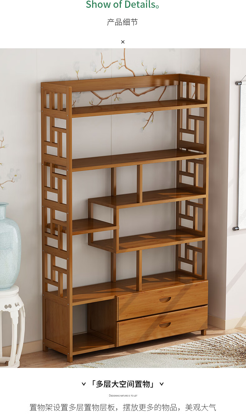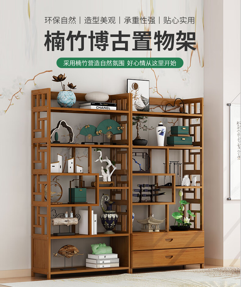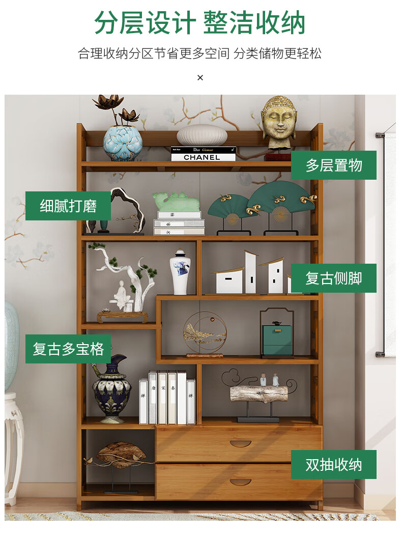 Badiqi New Chinese Style Duobao Pavilion Bogu Rack Tea Display Display Cabinet Living Room Antique Ornaments Storage Rack Partition Shelf Single - Six-Layer 80 Fence Model No Drawer Style