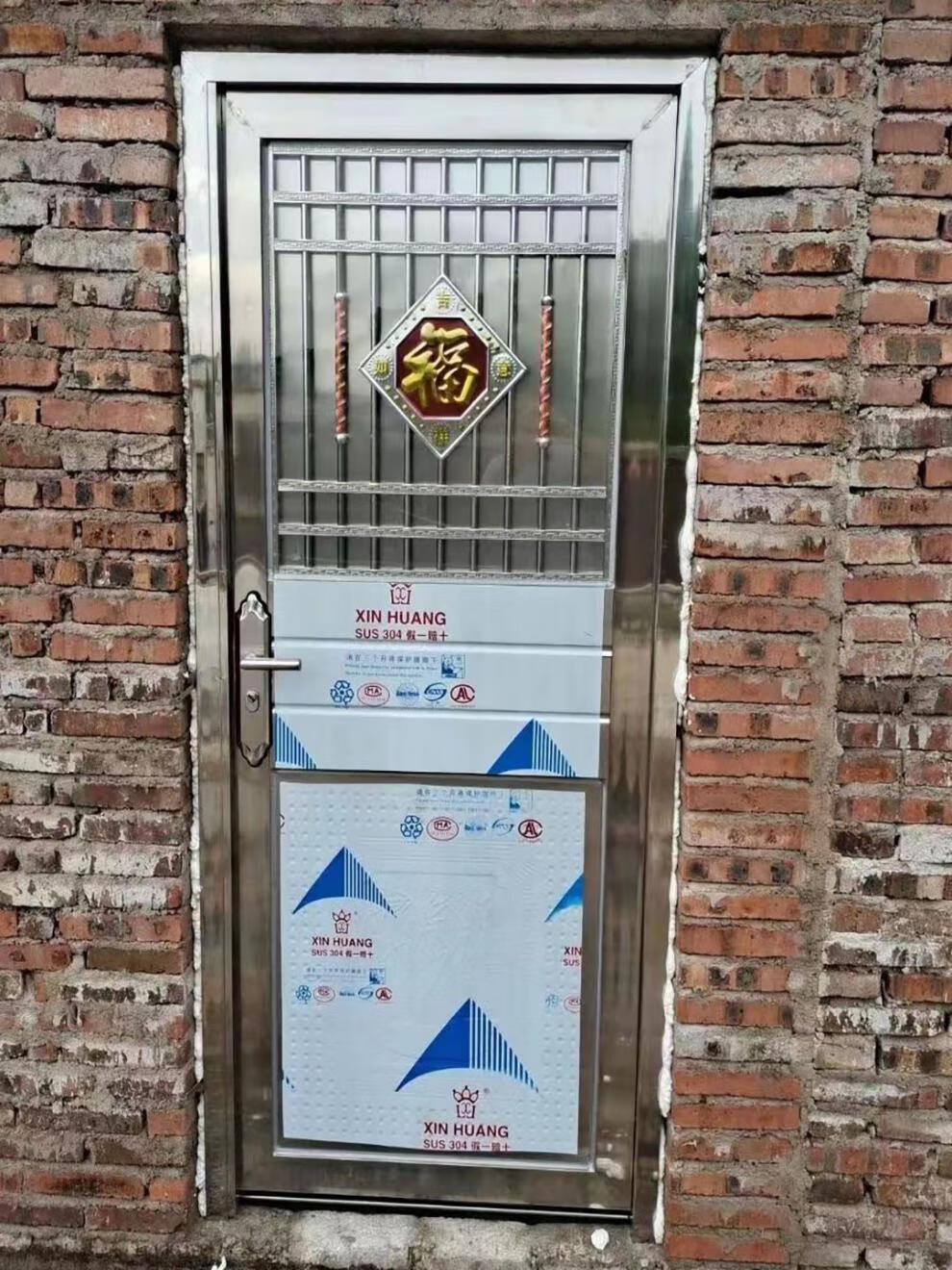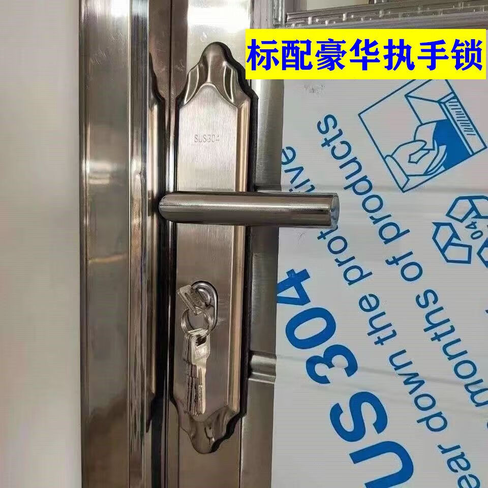 Meikejie stainless steel door 304 single door rural double door school dormitory door balcony entry security door square tube simple door 201 material 890*2050 left lock inside right opening (not)