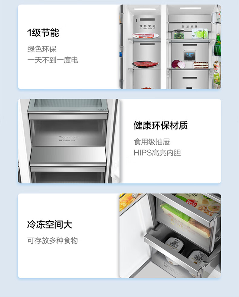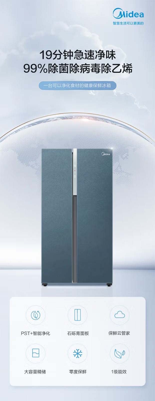 Midea Midea double-door household refrigerator large capacity first-level frequency conversion intelligent air-cooled frost-free BCD-605WKGPZM tail stock BCD-603WKGPZM(E) deep space blue-starry