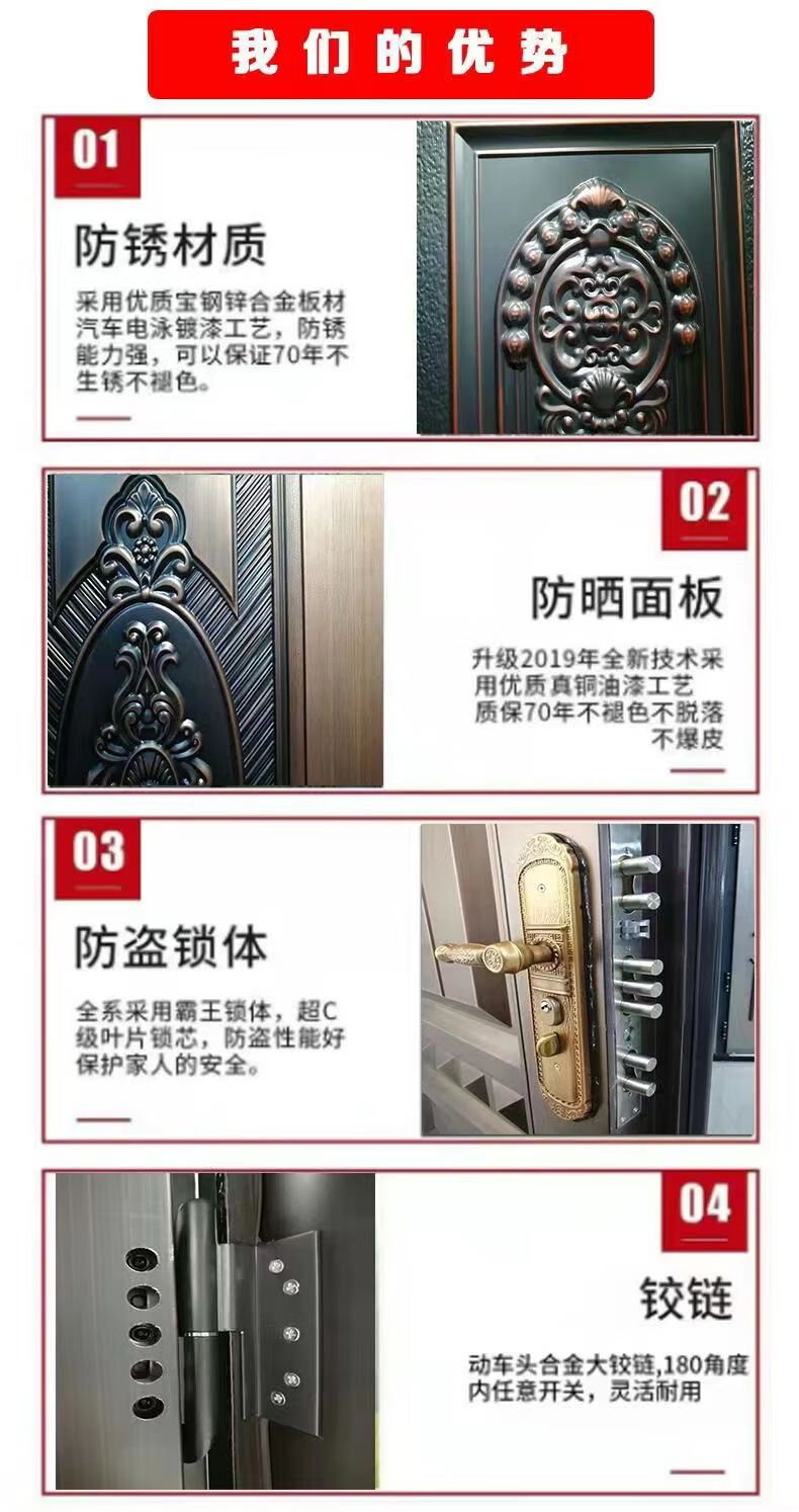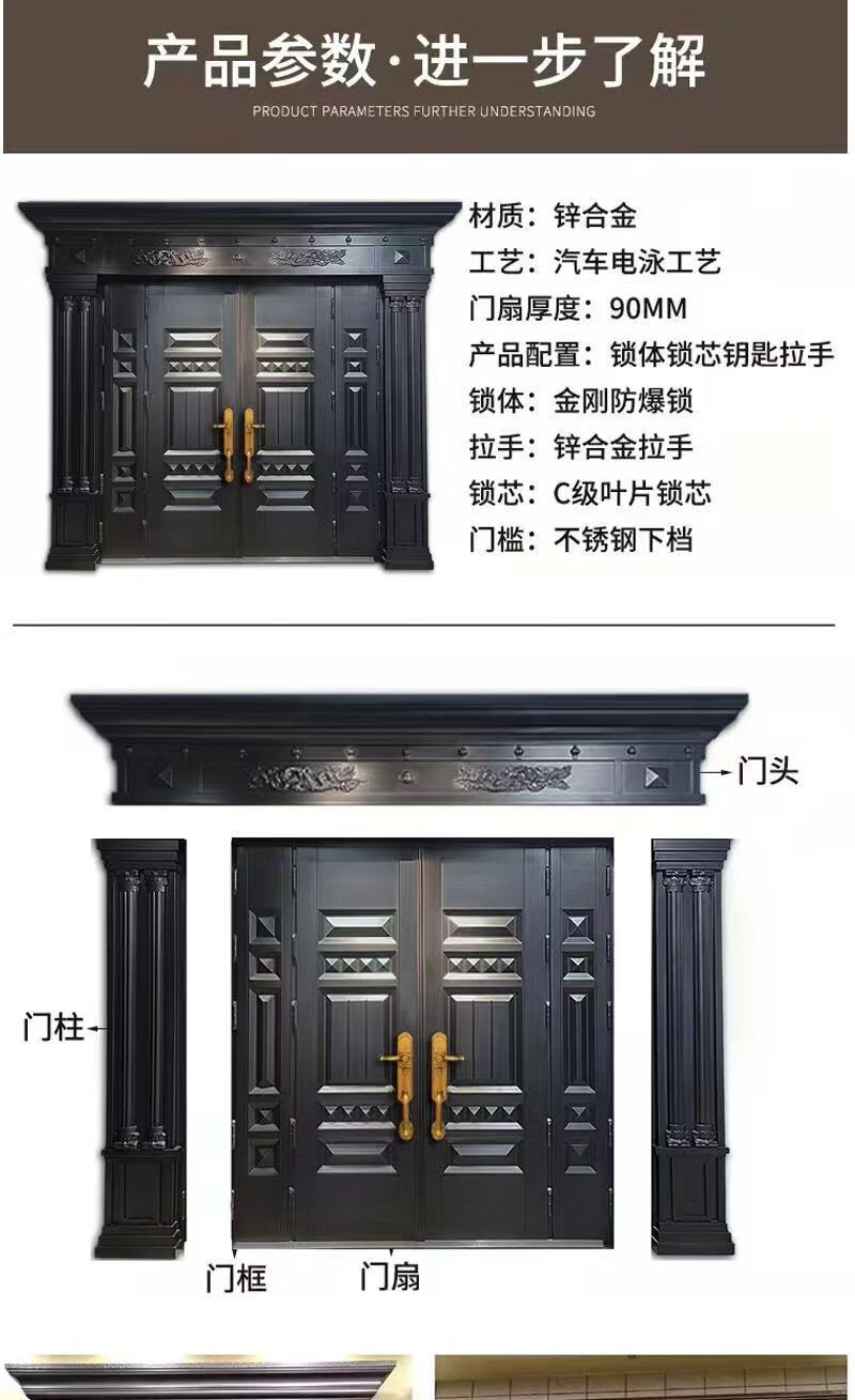 Meikejie zinc alloy door rural double door new style villa self-built house opposite four-door home entry door style fifteen
