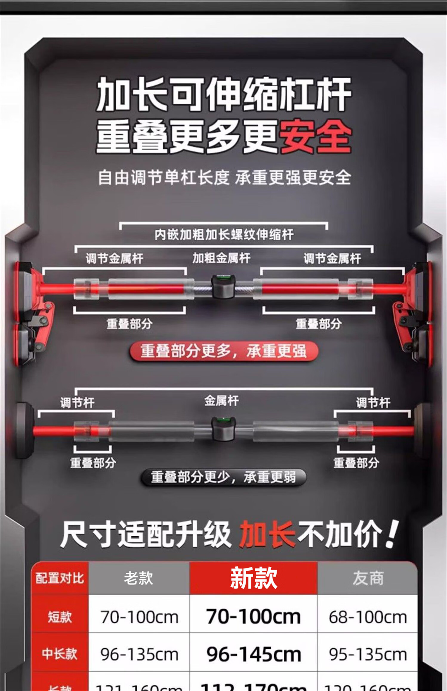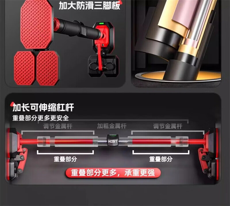 Self-swimming horizontal bar indoor pull-up device without punching horizontal bar home indoor fitness equipment door horizontal bar for adults and children double level - installation distance 70-96cm