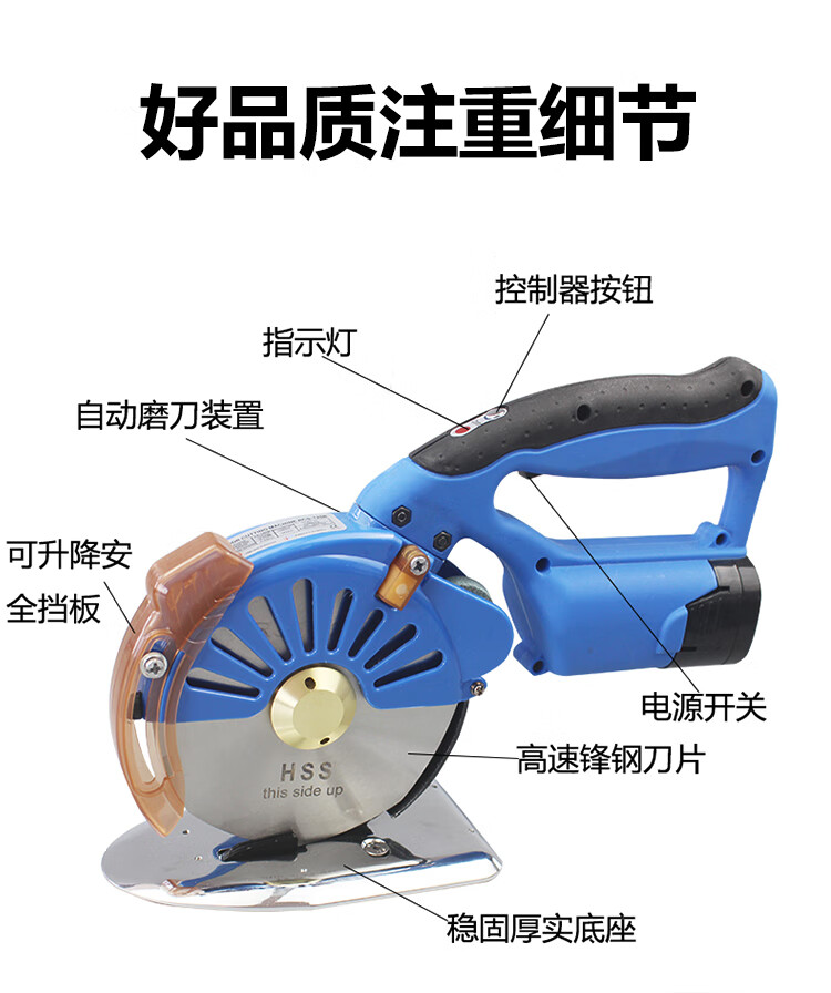 Huili is suitable for servo lithium battery electric round knife cutting electromechanical scissors cloth cutting machine brushless adjustable speed hand push servo 110 type lithium battery cutting knife