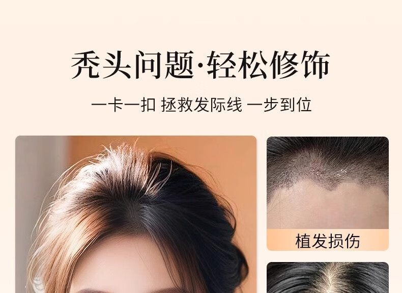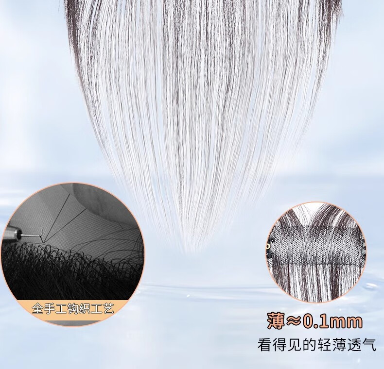 Sky Tree Lanugo Hair Bangs Wig Women's Top Natural Forehead Replacement Full Real Hair Thin Invisible Hairline Wig Lazy French Bangs Natural Color 25cm