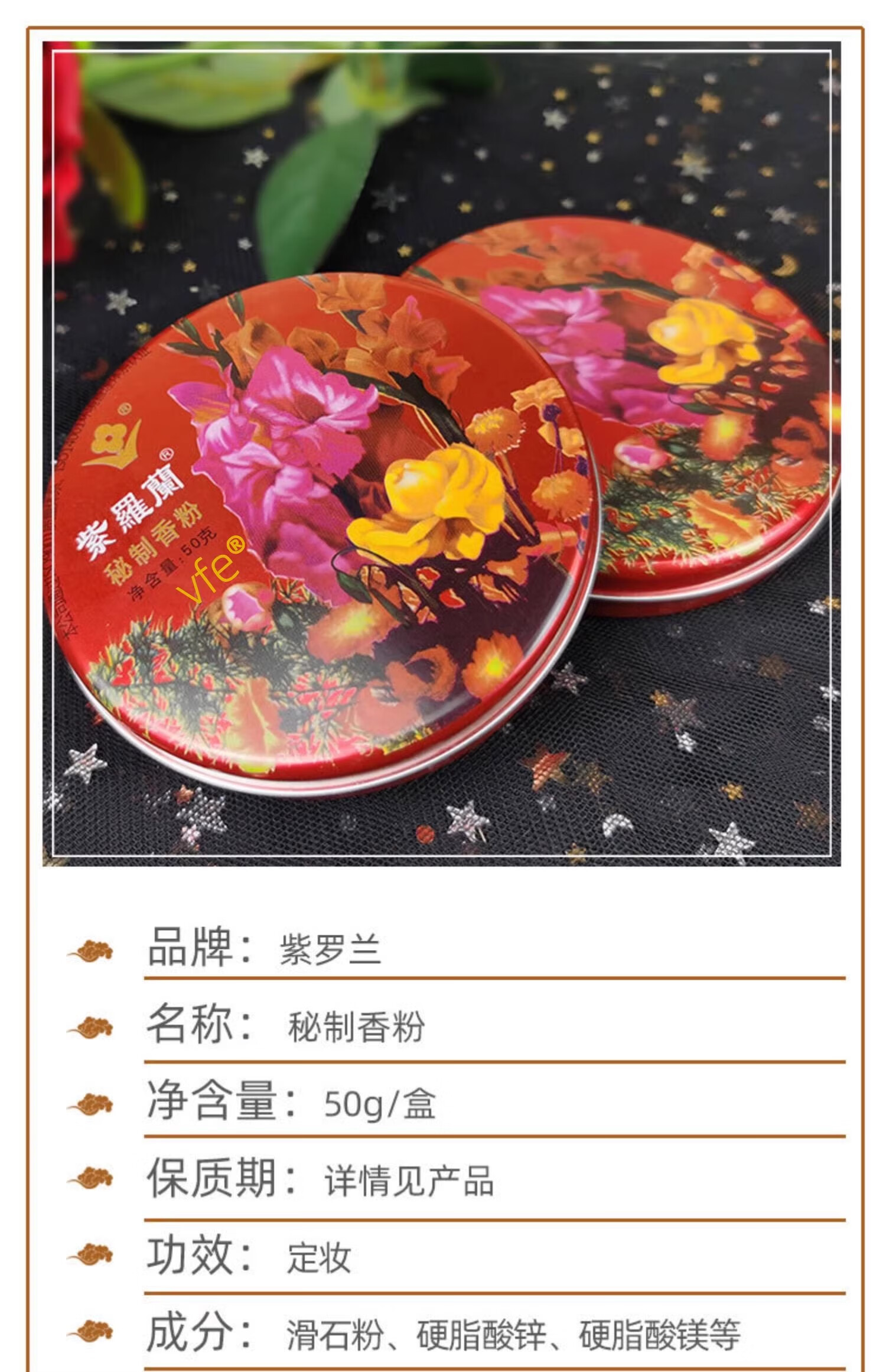 Violet official flag authorized agarwood powder old Beijing domestic loose powder concealer powder bag oil control makeup light and clear Violet secret fragrance tin box 1 box