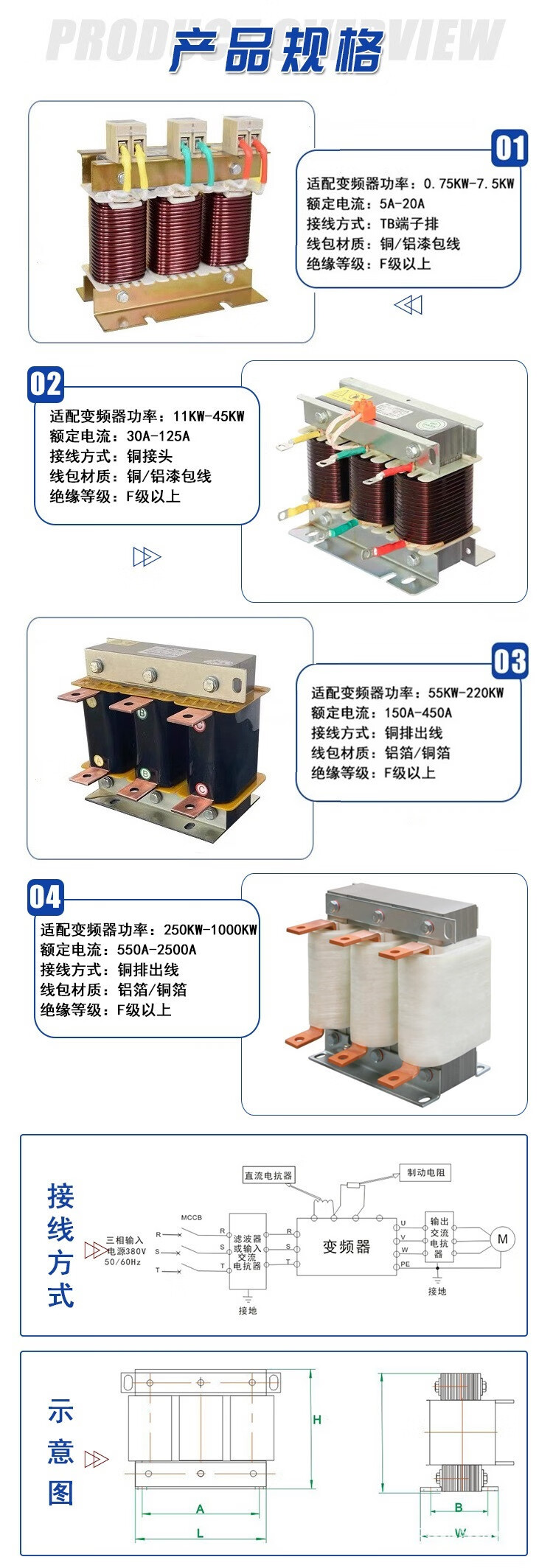 ACL three-phase input reactor dedicated AC and DC filter output reactor for inverter in series 30KW80A input terminal