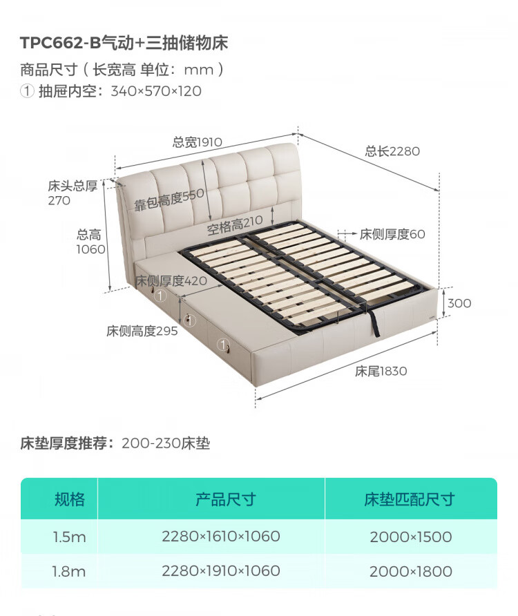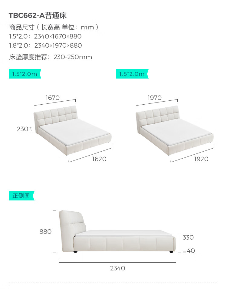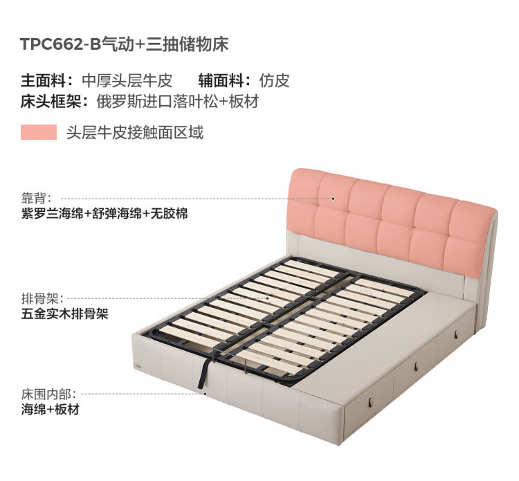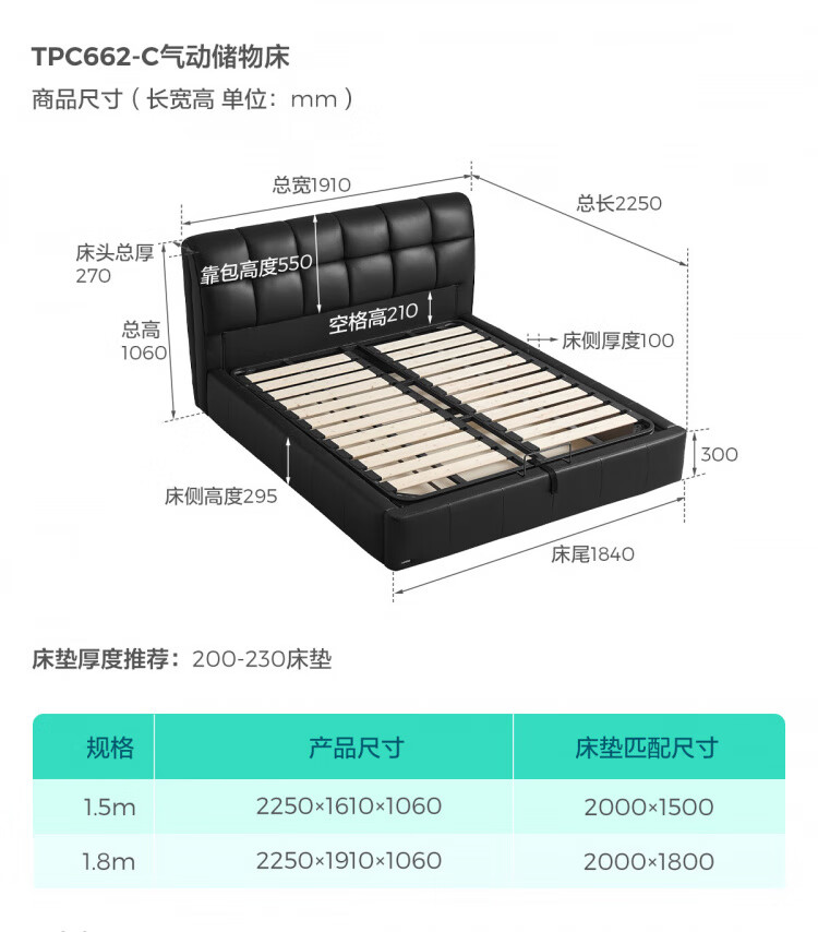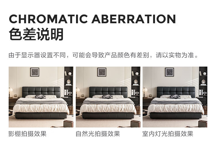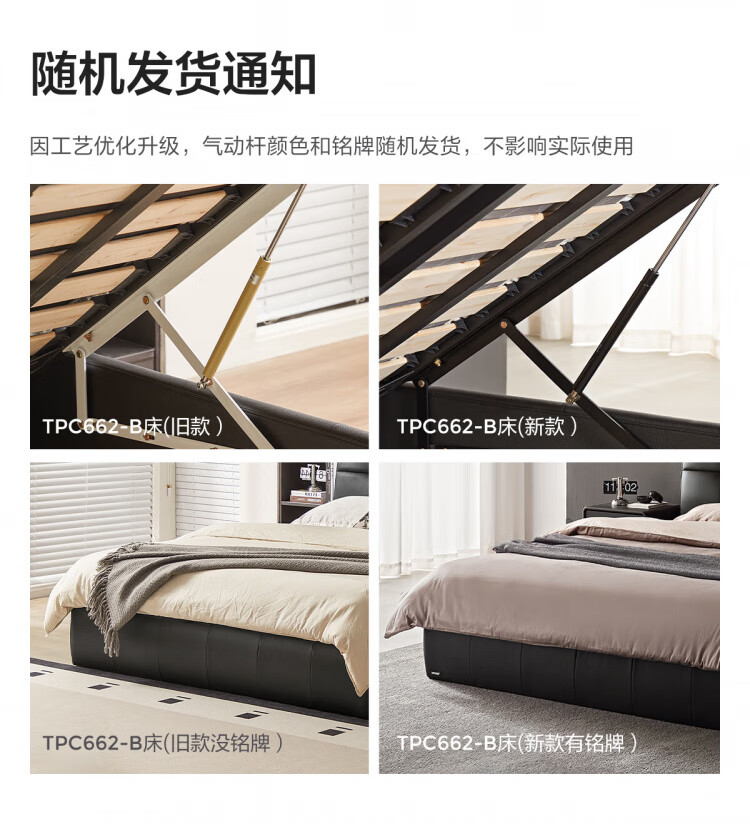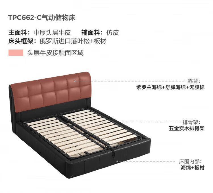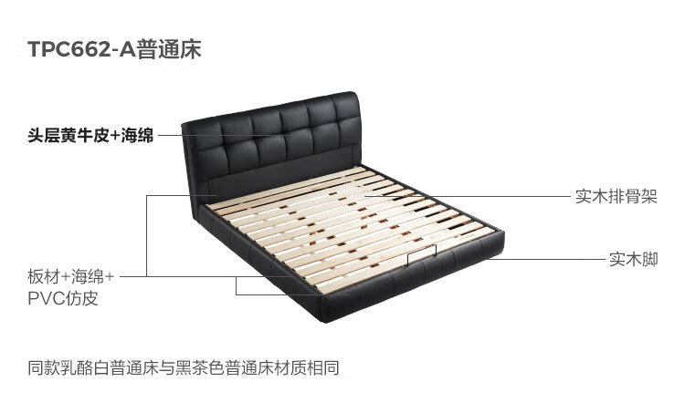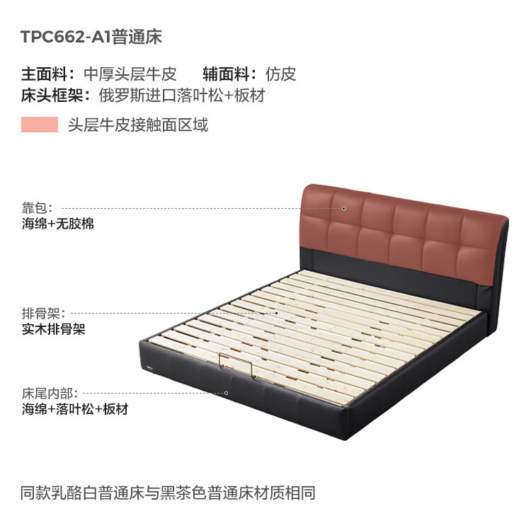 Lin's home leather art bed double bed 1.8m 1.5m master bedroom large bed head layer cowhide bed bedroom furniture TPC662 black brown floor bed 1.8mx2m bed + 0 glue spine pad (20cm)
