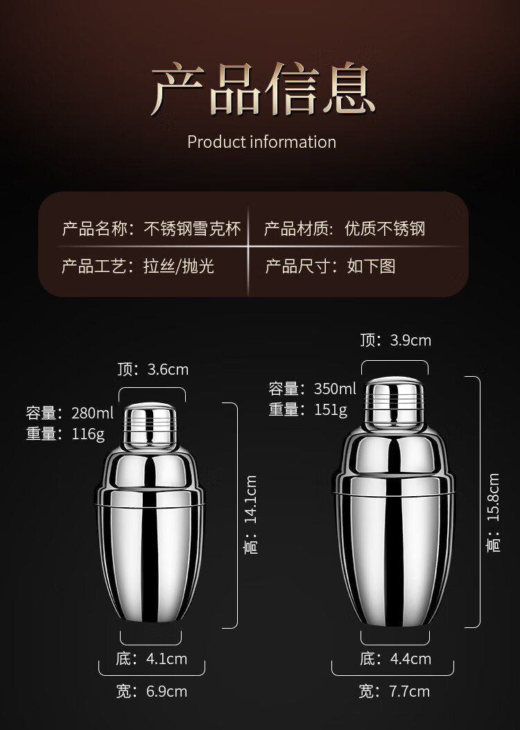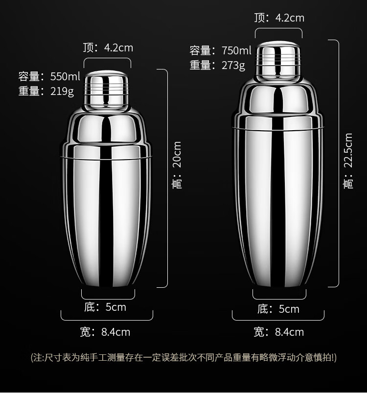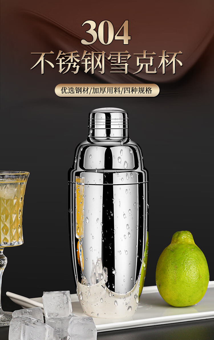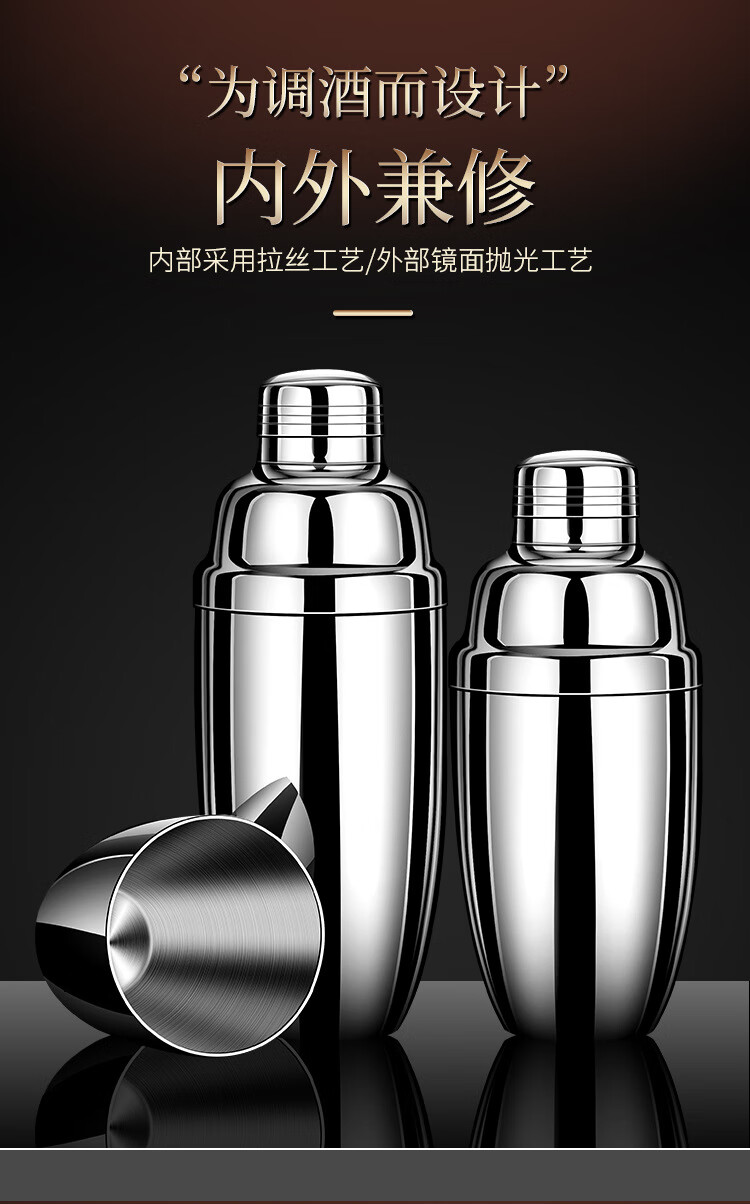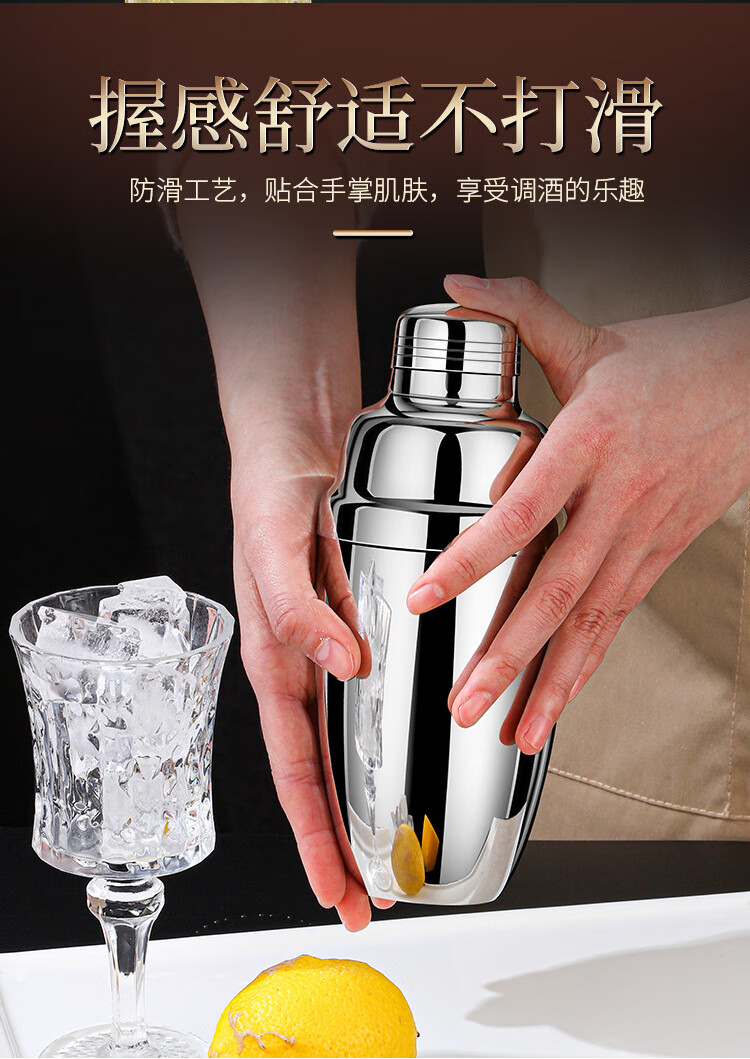 Bo Yiou 304 stainless steel shaker shaker set cocktail shaker ice shaker cup hand shaker bartending tools 350ml + tamper + bar spoon + measuring cup