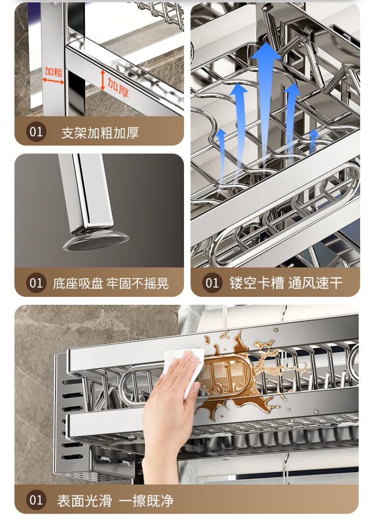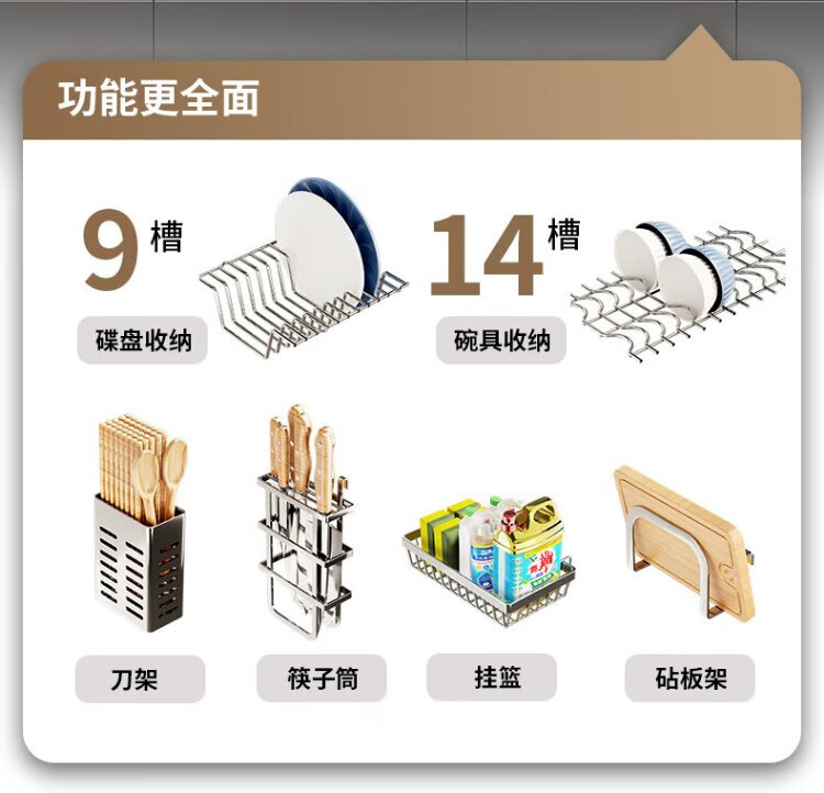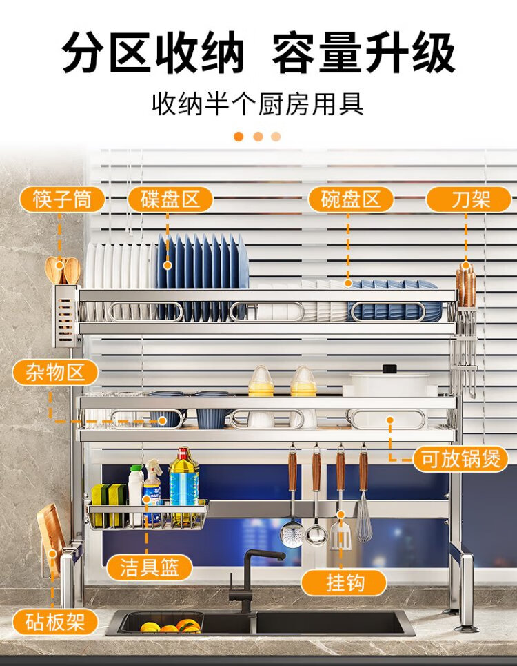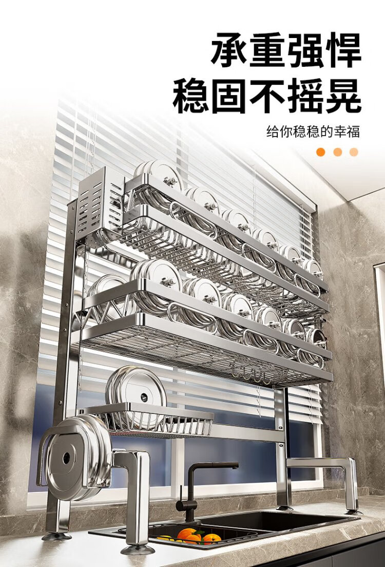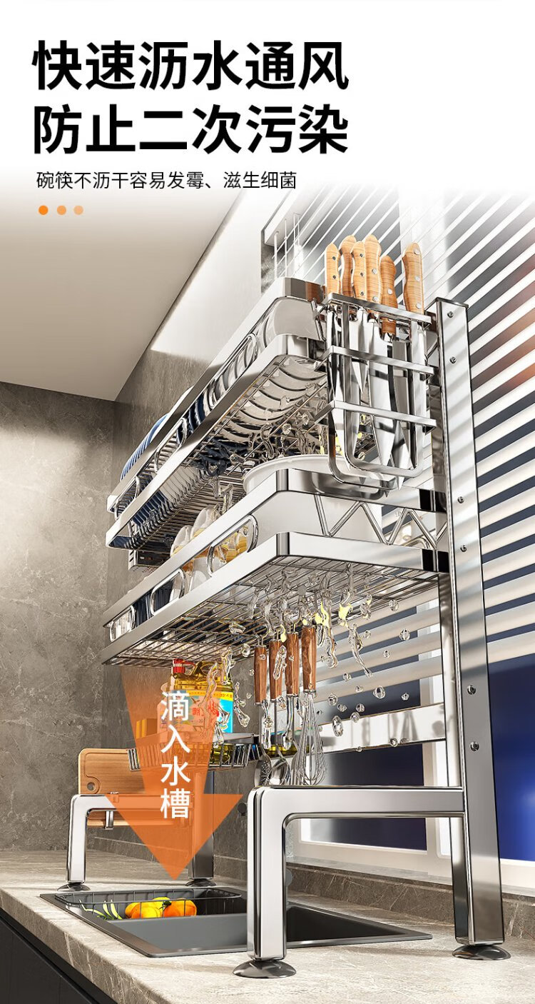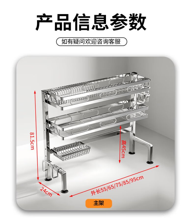 Mrs. Kitchen Sink Storage Rack 304 Stainless Steel Drain Rack Dishes Utensils Dish Rack Basket Pool Storage Rack Complete Collection *Free Storage Set Double Layer 85cm