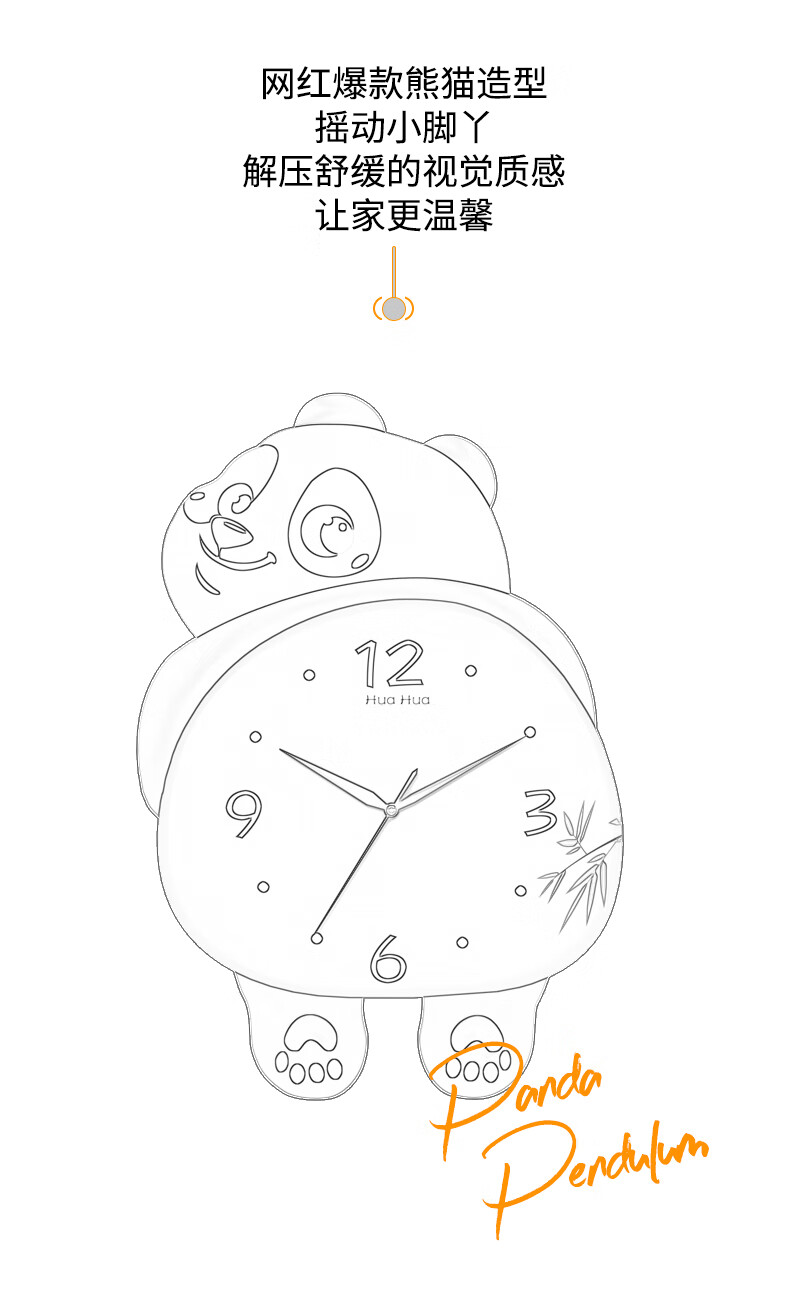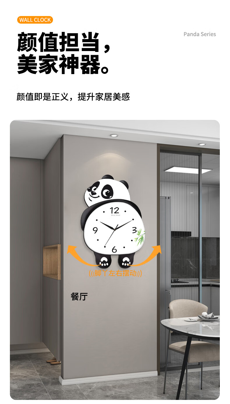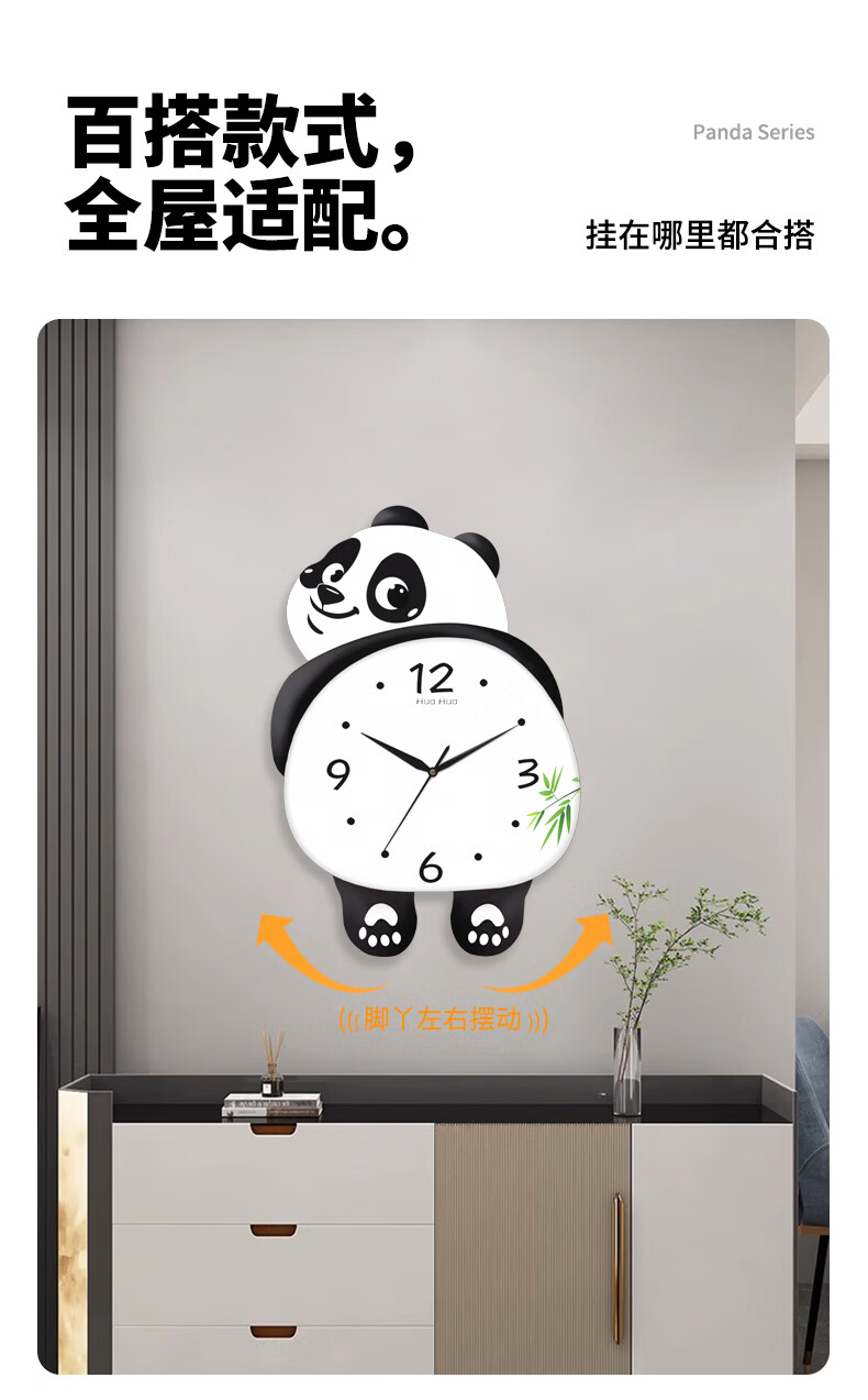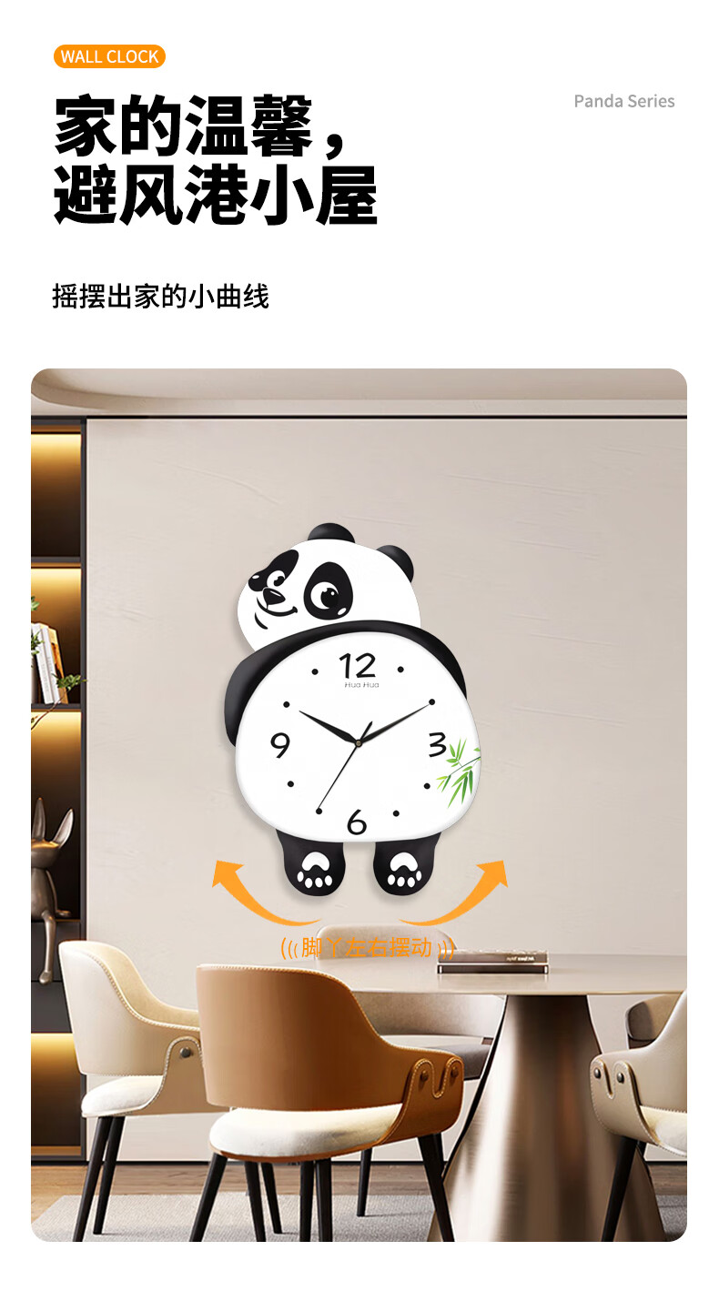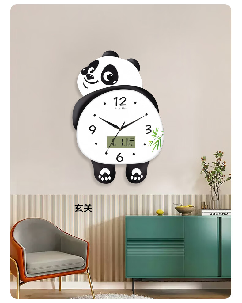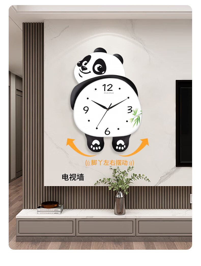 Dilan's new living room silent panda wall clock home creative wall electronic clock bedroom modern decorative clock wall clock HH large 46*36cm feet swing