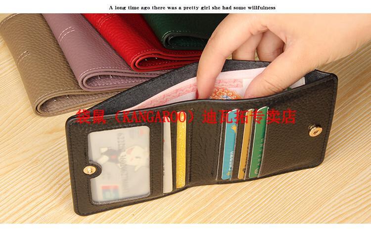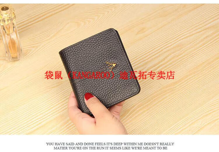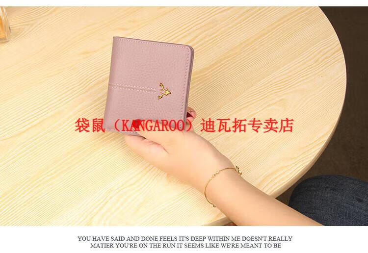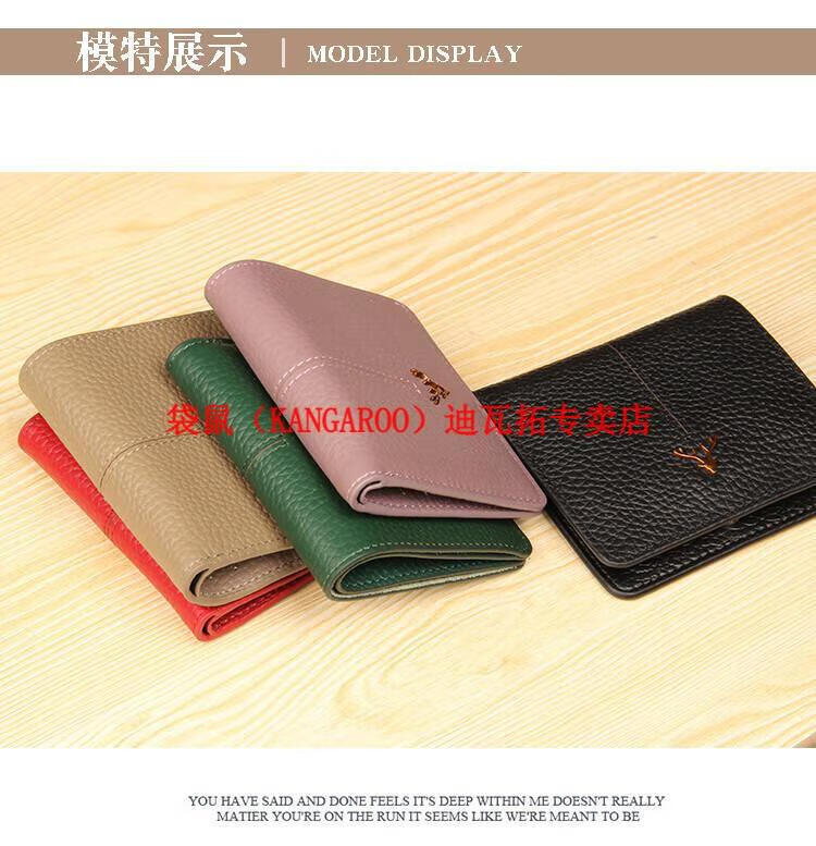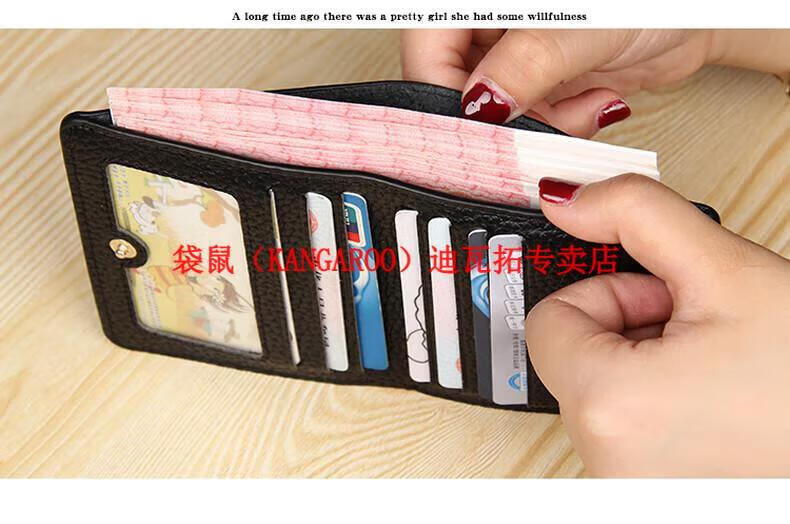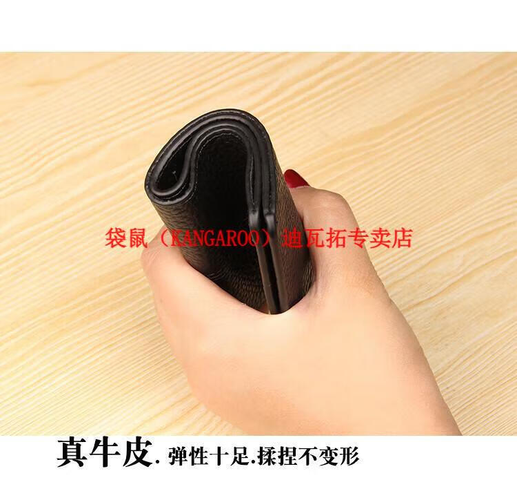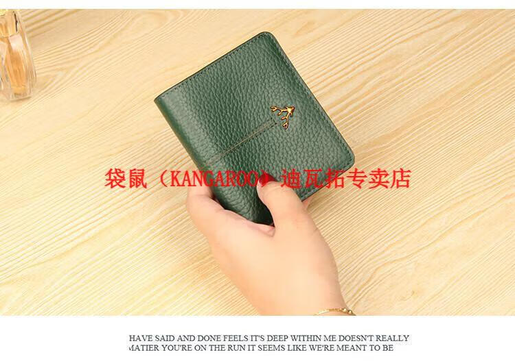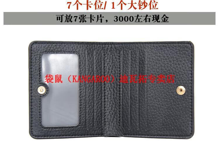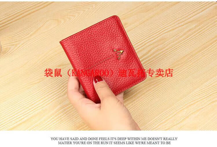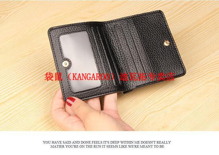 Kangaroo (KANGAROO) genuine leather wallet women's short ultra-thin compact bag cute two-fold student simple 2025 new cowhide wallet black